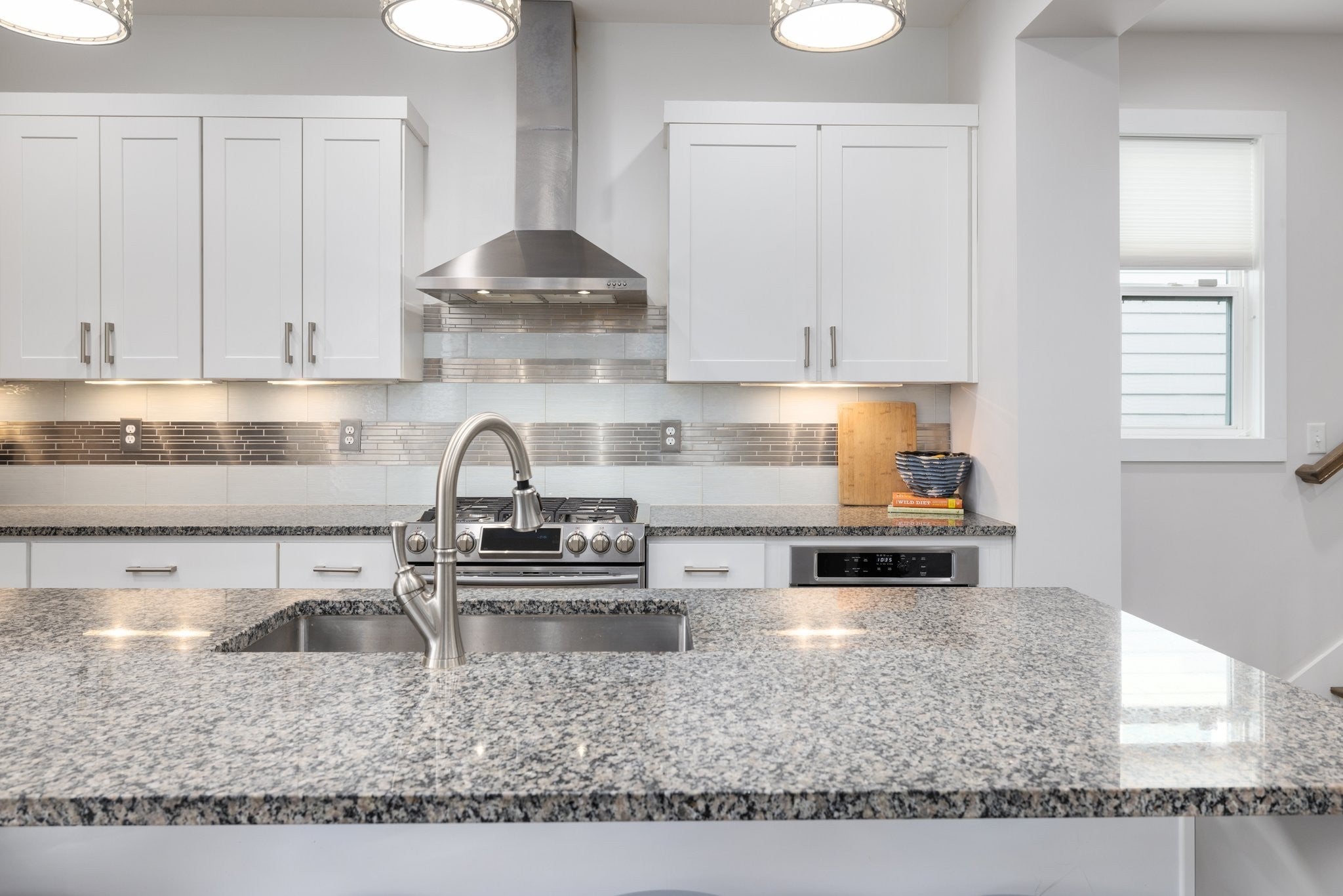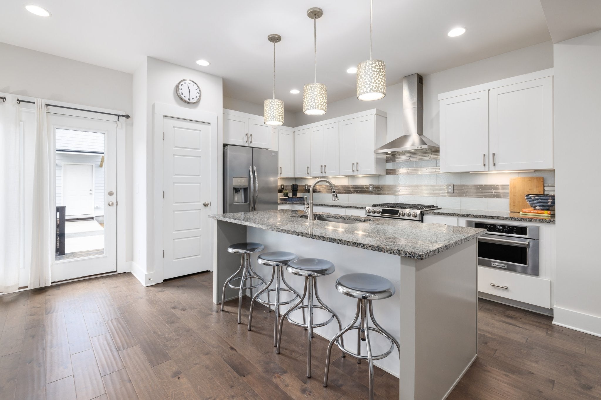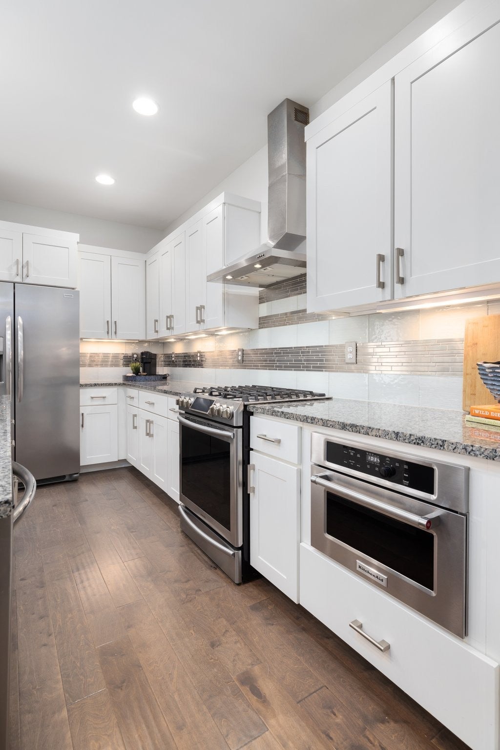 - Built-In Electric Oven, Gas Range, Dishwasher, Disposal, Dryer, Ice Maker, Microwave, Refrigerator, Stainless Steel Appliance(s), Washer