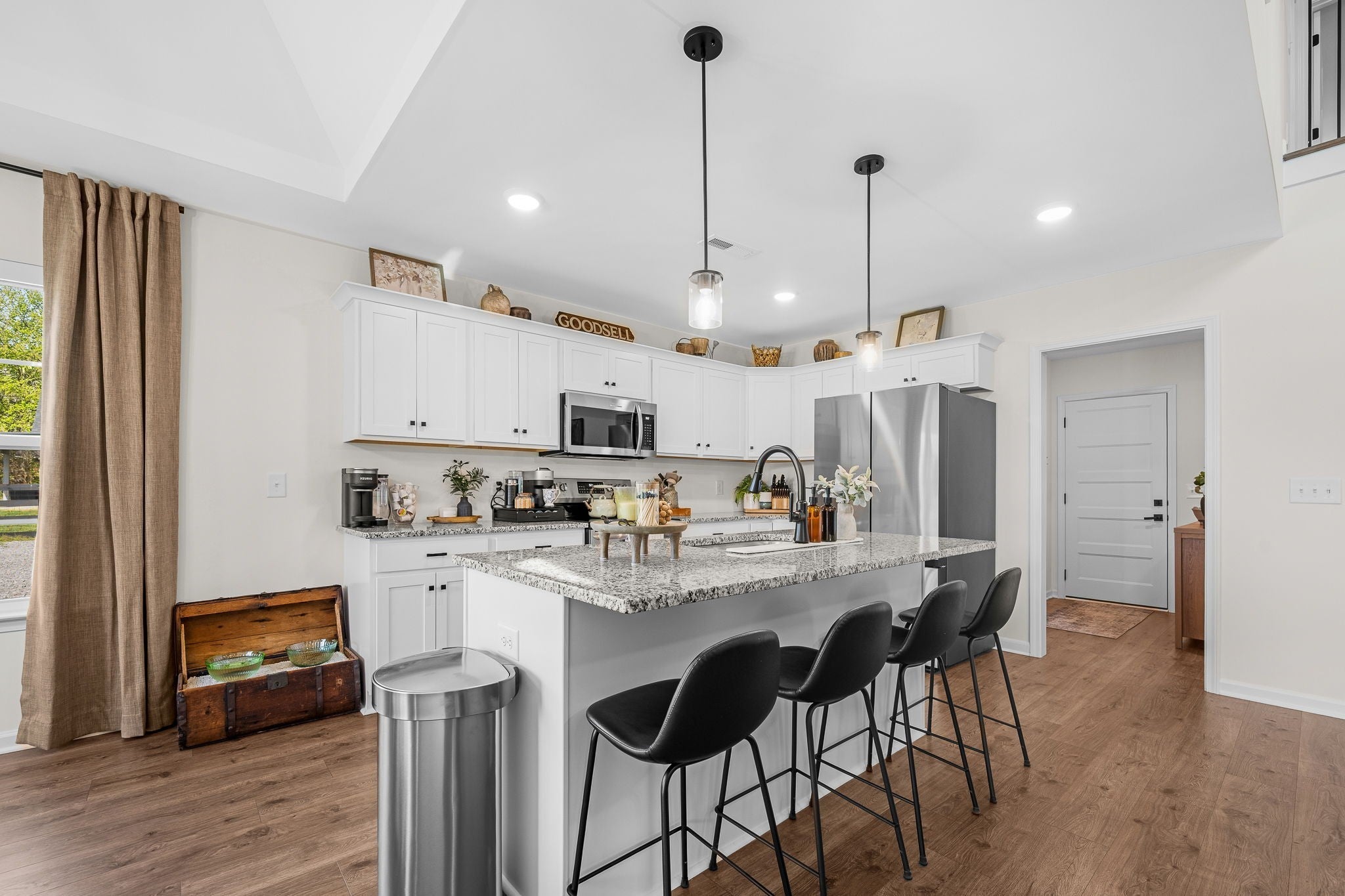 - Ceiling Fan(s), High Ceilings, Open Floorplan, Pantry, Kitchen Island