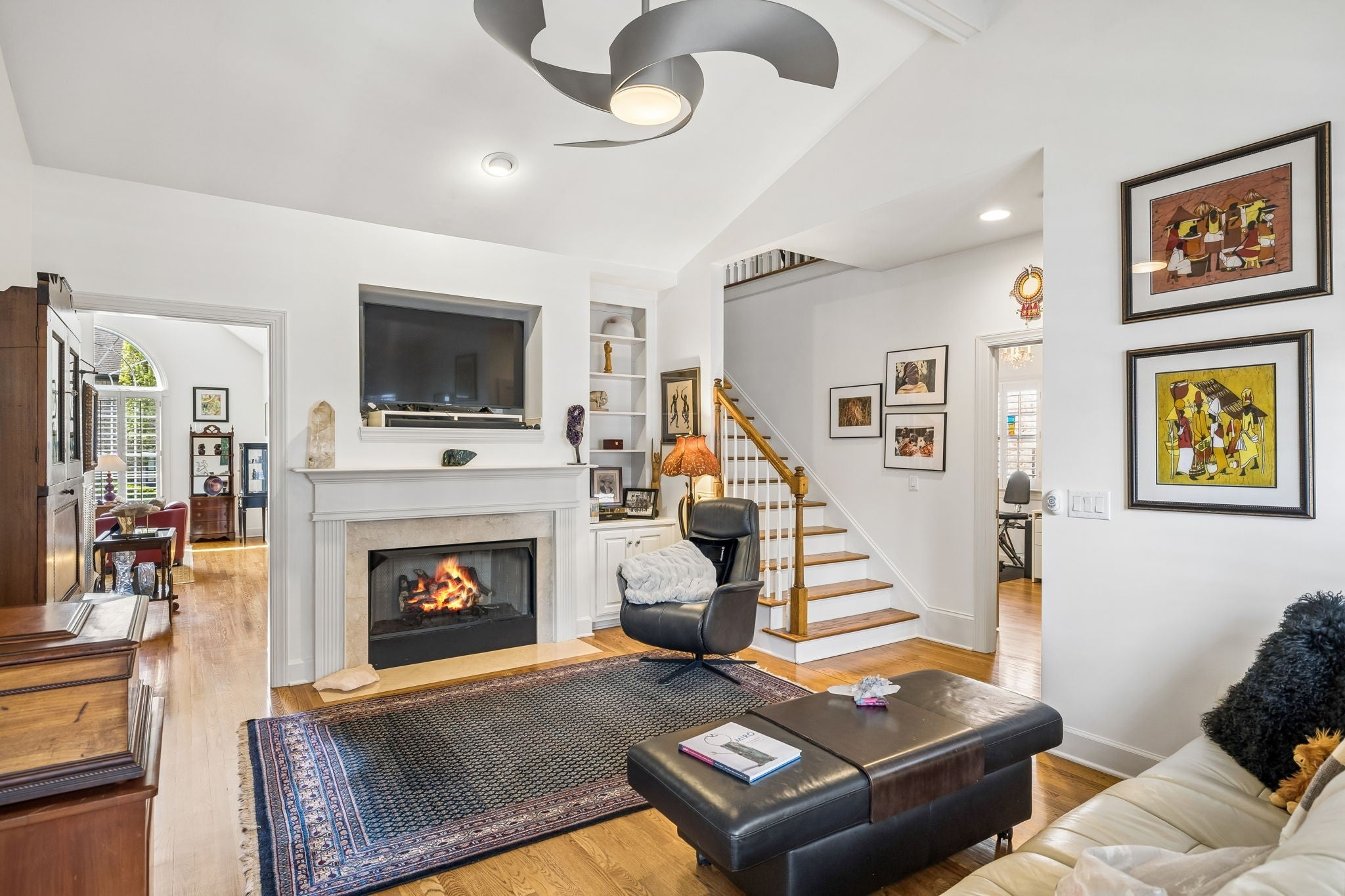 - Bookcases, Built-in Features, Ceiling Fan(s), High Ceilings, Walk-In Closet(s)