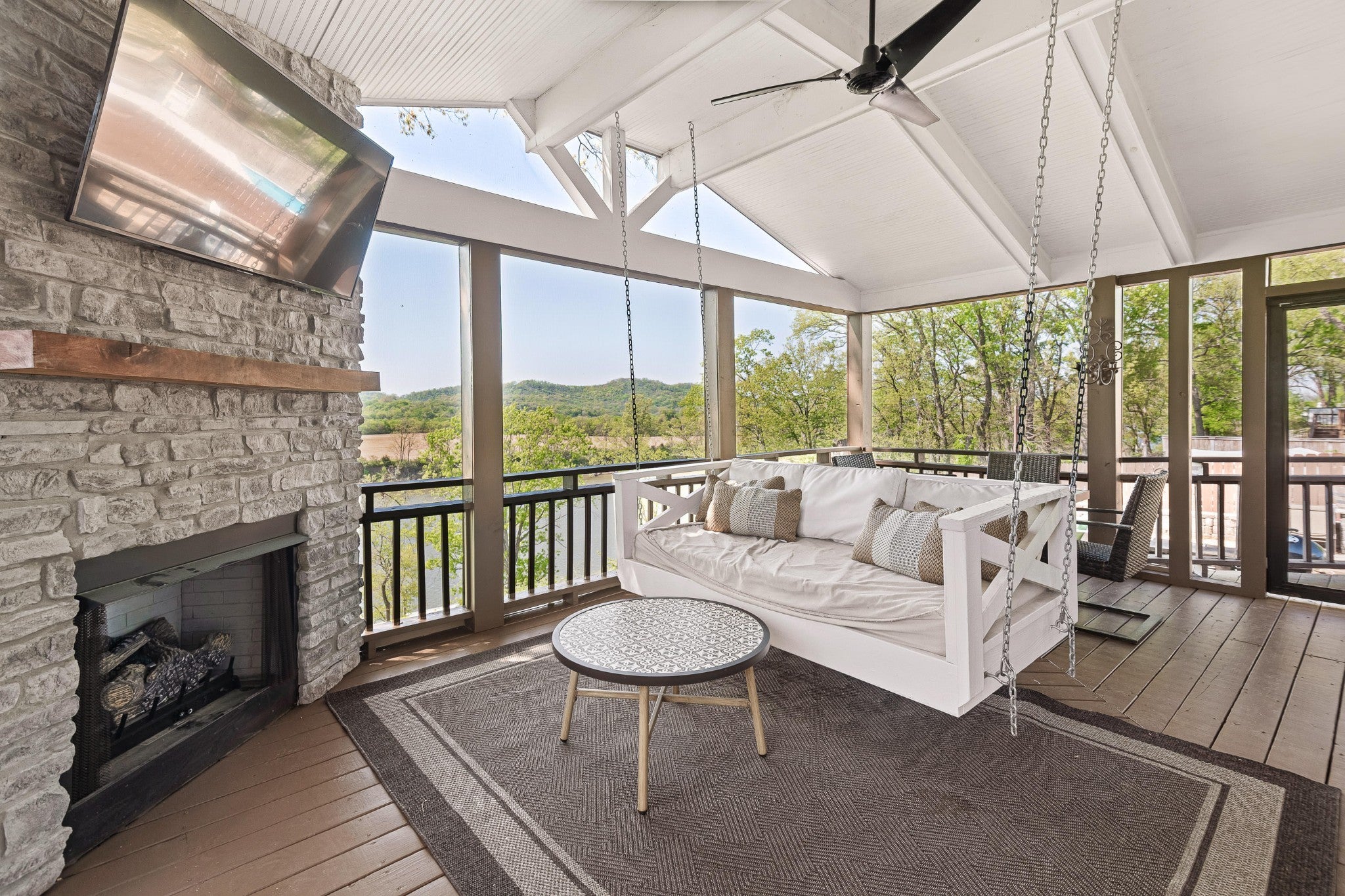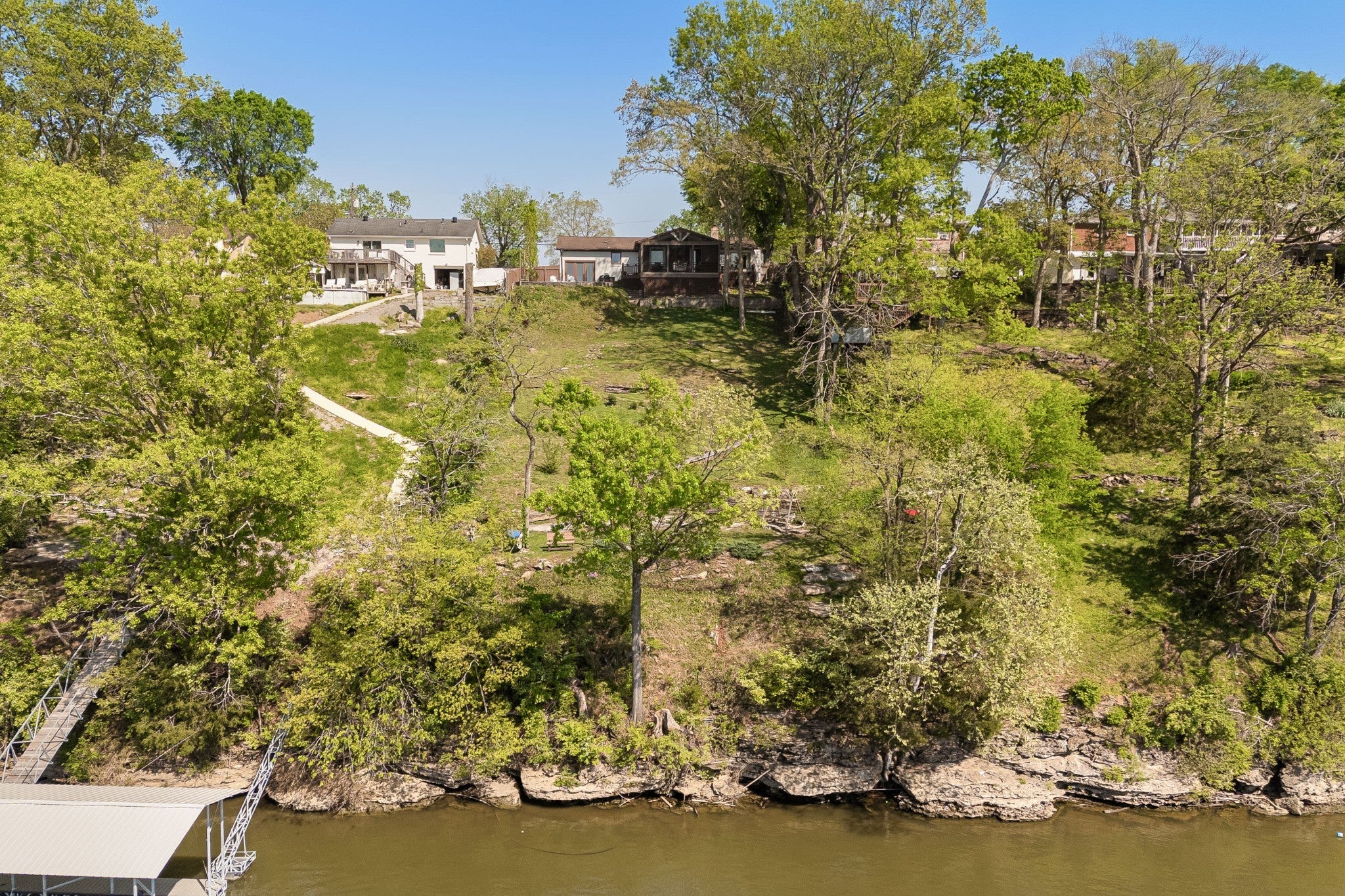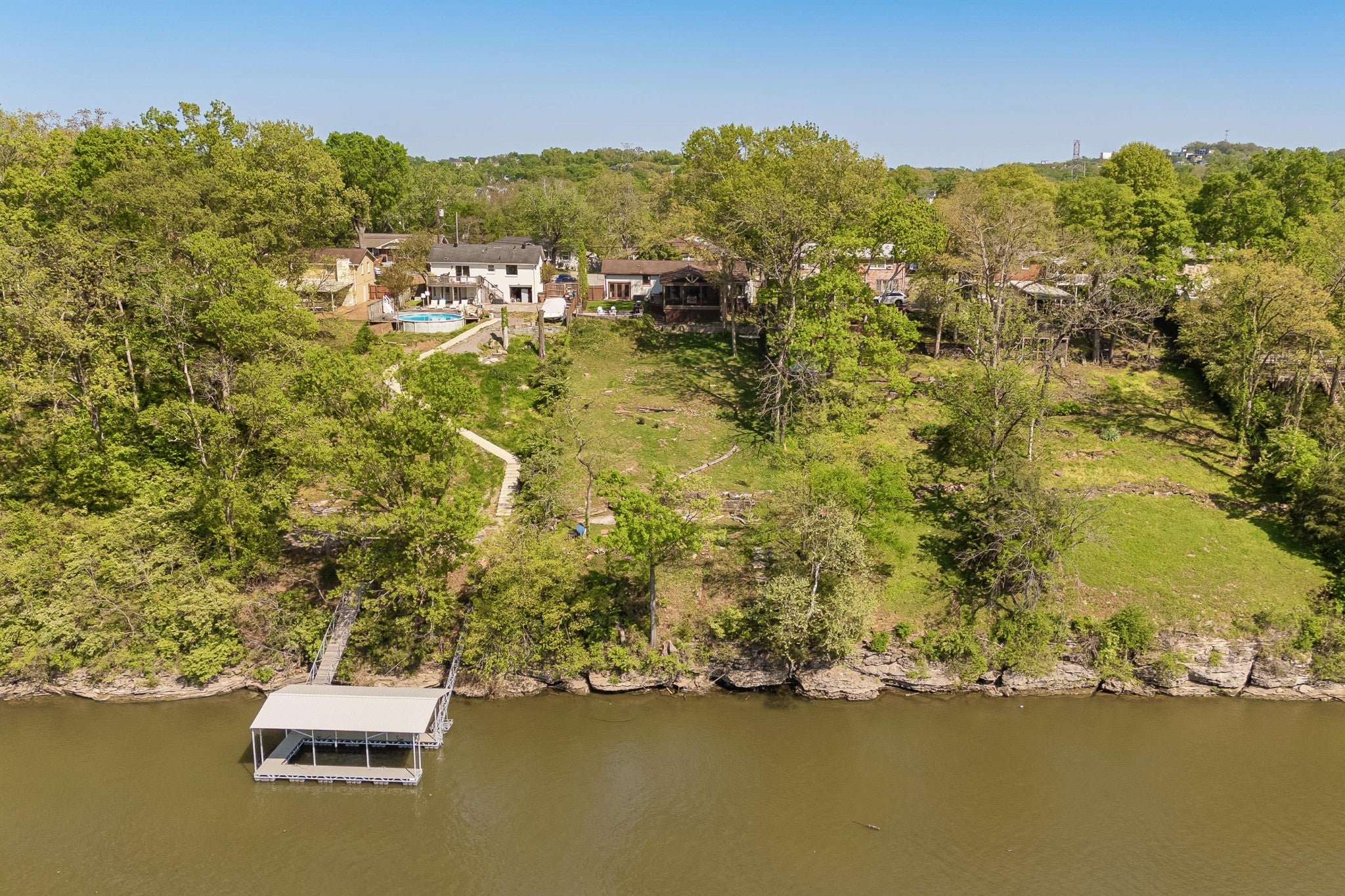 Live where the river meets the city in a once-in-a-generation opportunity to own a peaceful waterfront escape just minutes from the energy of downtown Nashville. This home offers a stunning kitchen that has been beautifully renovated, complemented by refinished hardwood floors and fresh paint across the entire home. The primary suite offers a double vanity with new flooring and updated light fixtures, creating a clean, modern feel. Enjoy cozy evenings with two gas fireplaces—one in the main living area and another on the spacious screened-in deck, perfect for year-round relaxation. Step outside to a beautifully designed outdoor living space featuring a gas fire pit and impressive hardscaping, ideal for entertaining. The backyard offers a flat, lush green space perfect for kids and pets, while a natural stone pathway leads you down to the riverfront. At the water’s edge, you’ll find not only breathtaking views but also ample space for bonfires, gatherings, and enjoying peaceful evenings by the water. This property is eligible for a boat dock/slip—please see attached documents for additional details. Does not require flood insurance.