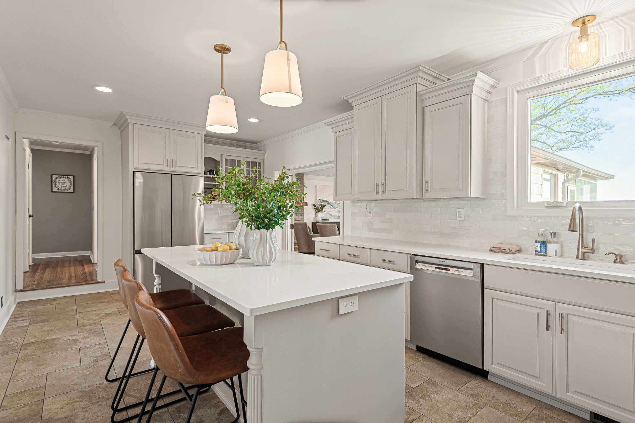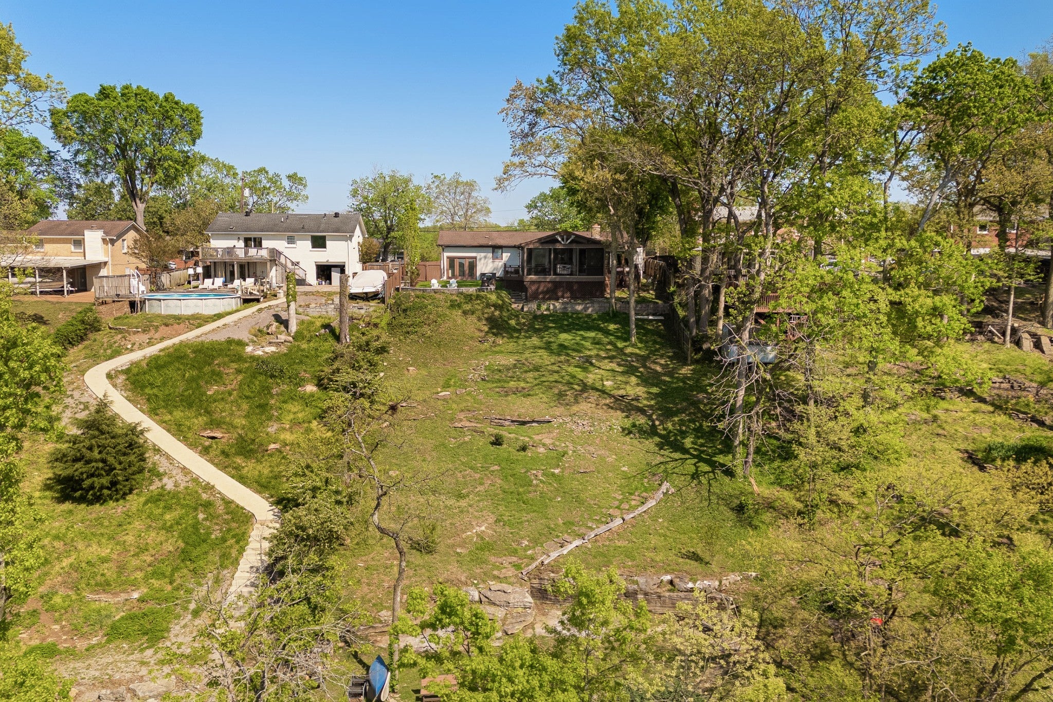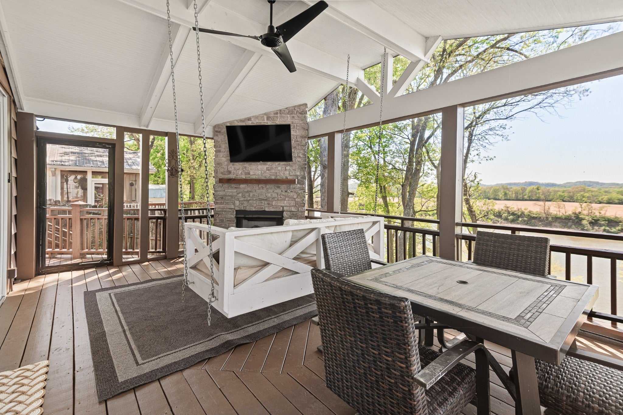 Live where the river meets the city in a once-in-a-generation opportunity to own a peaceful waterfront escape just minutes from the energy of downtown Nashville. This home offers a stunning kitchen that has been beautifully renovated, complemented by refinished hardwood floors and fresh paint across the entire home. The primary suite offers a double vanity with new flooring and updated light fixtures, creating a clean, modern feel. Enjoy cozy evenings with two gas fireplaces—one in the main living area and another on the spacious screened-in deck, perfect for year-round relaxation. Step outside to a beautifully designed outdoor living space featuring a gas fire pit and impressive hardscaping, ideal for entertaining. The backyard offers a flat, lush green space perfect for kids and pets, while a natural stone pathway leads you down to the riverfront. At the water’s edge, you’ll find not only breathtaking views but also ample space for bonfires, gatherings, and enjoying peaceful evenings by the water. This property is eligible for a boat dock/slip—please see attached documents for additional details. Does not require flood insurance.
