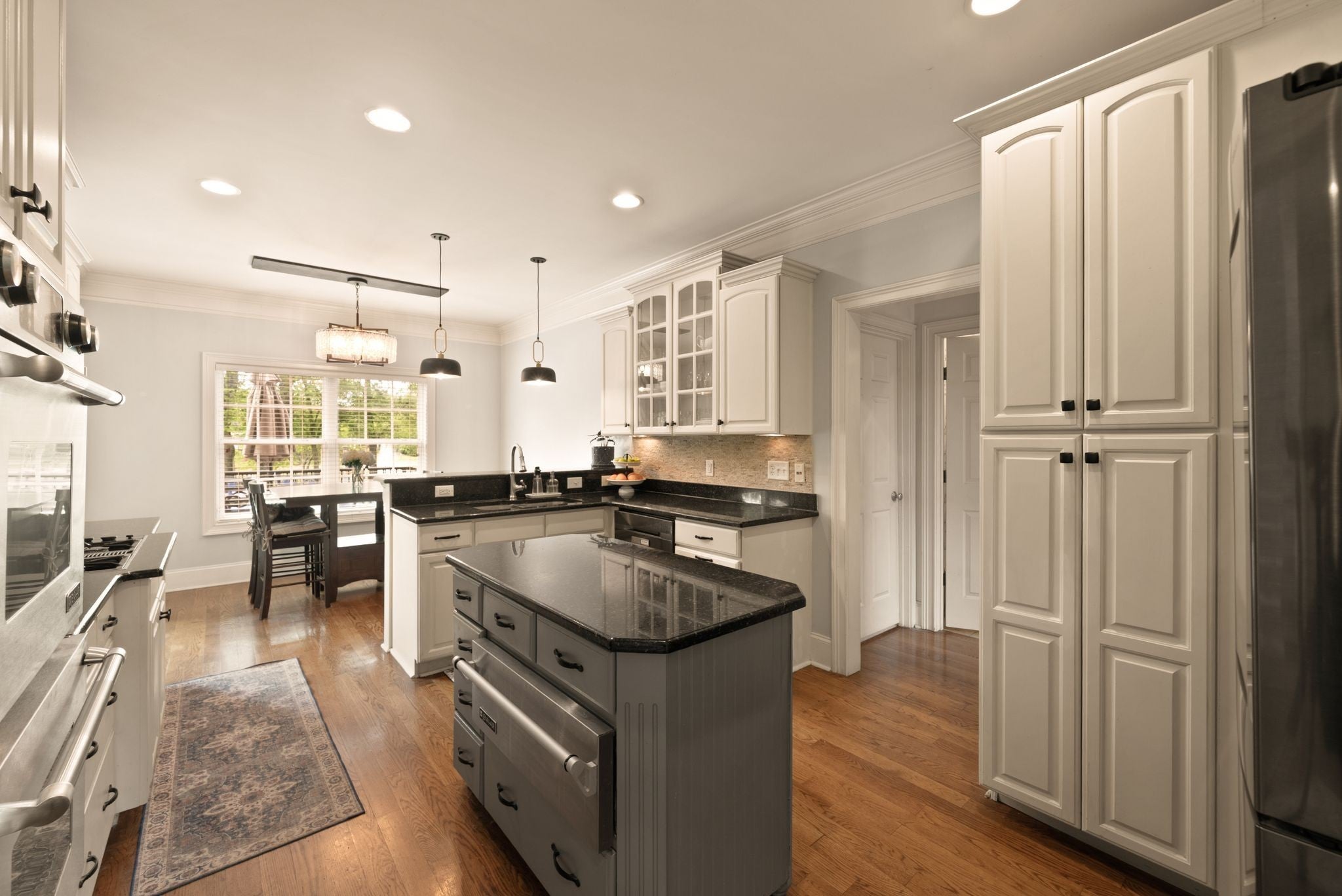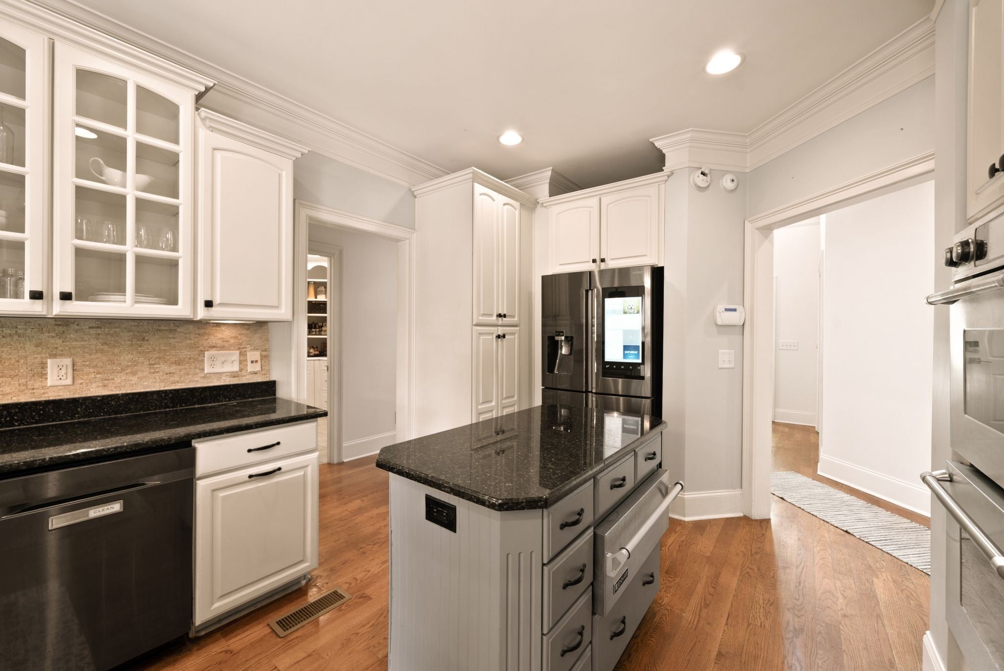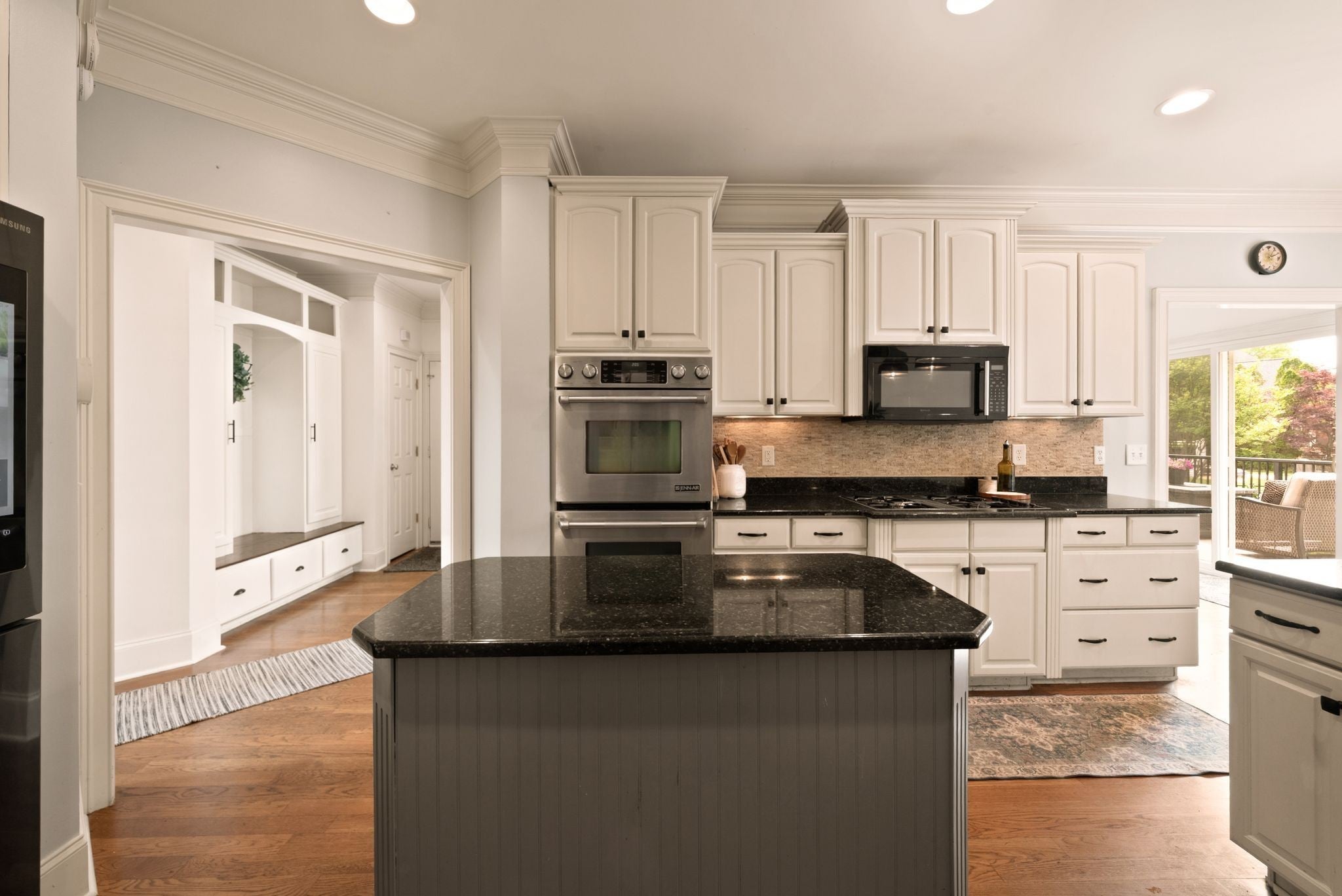 - Built-In Electric Oven, Double Oven, Cooktop, Dishwasher, Microwave, Stainless Steel Appliance(s)