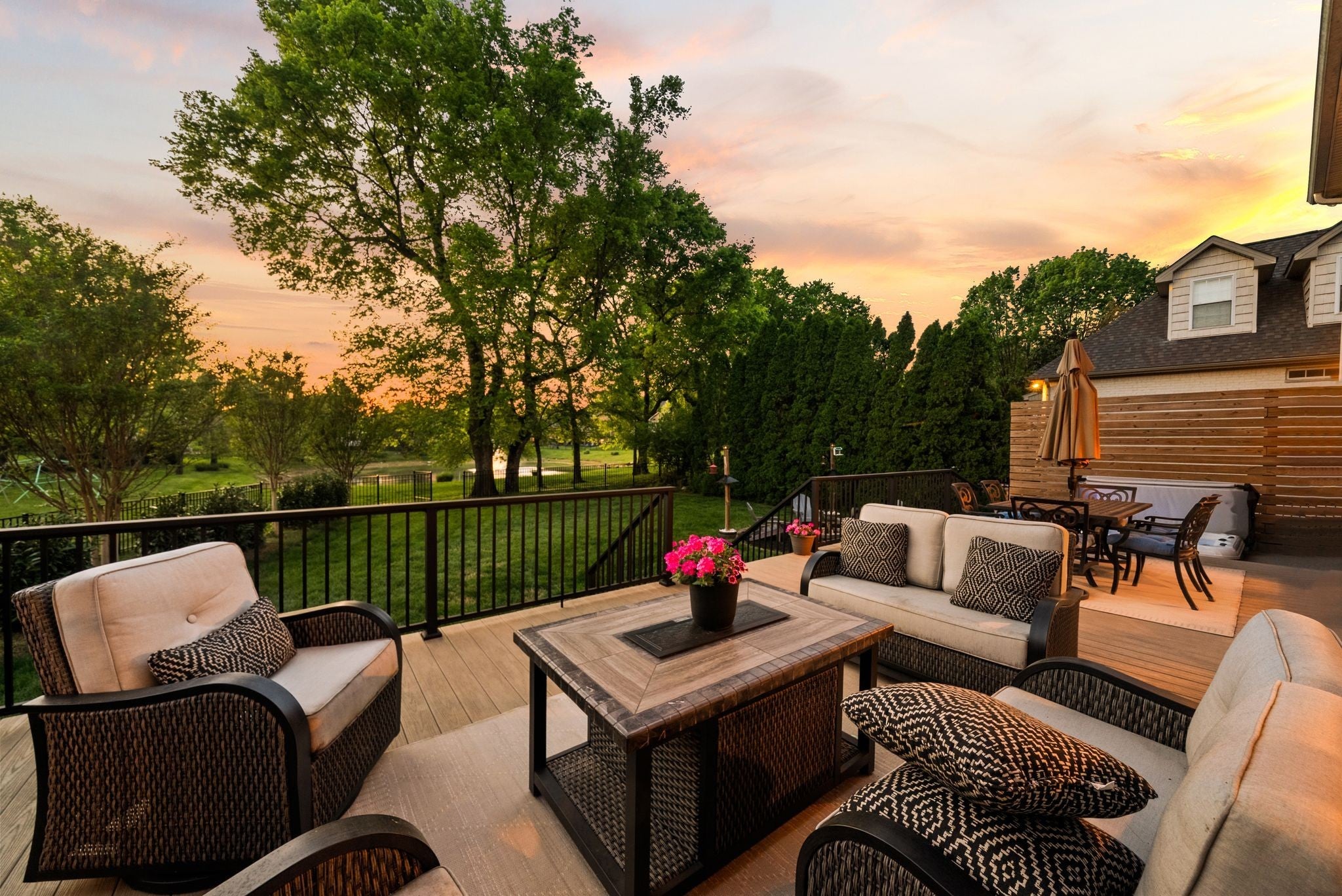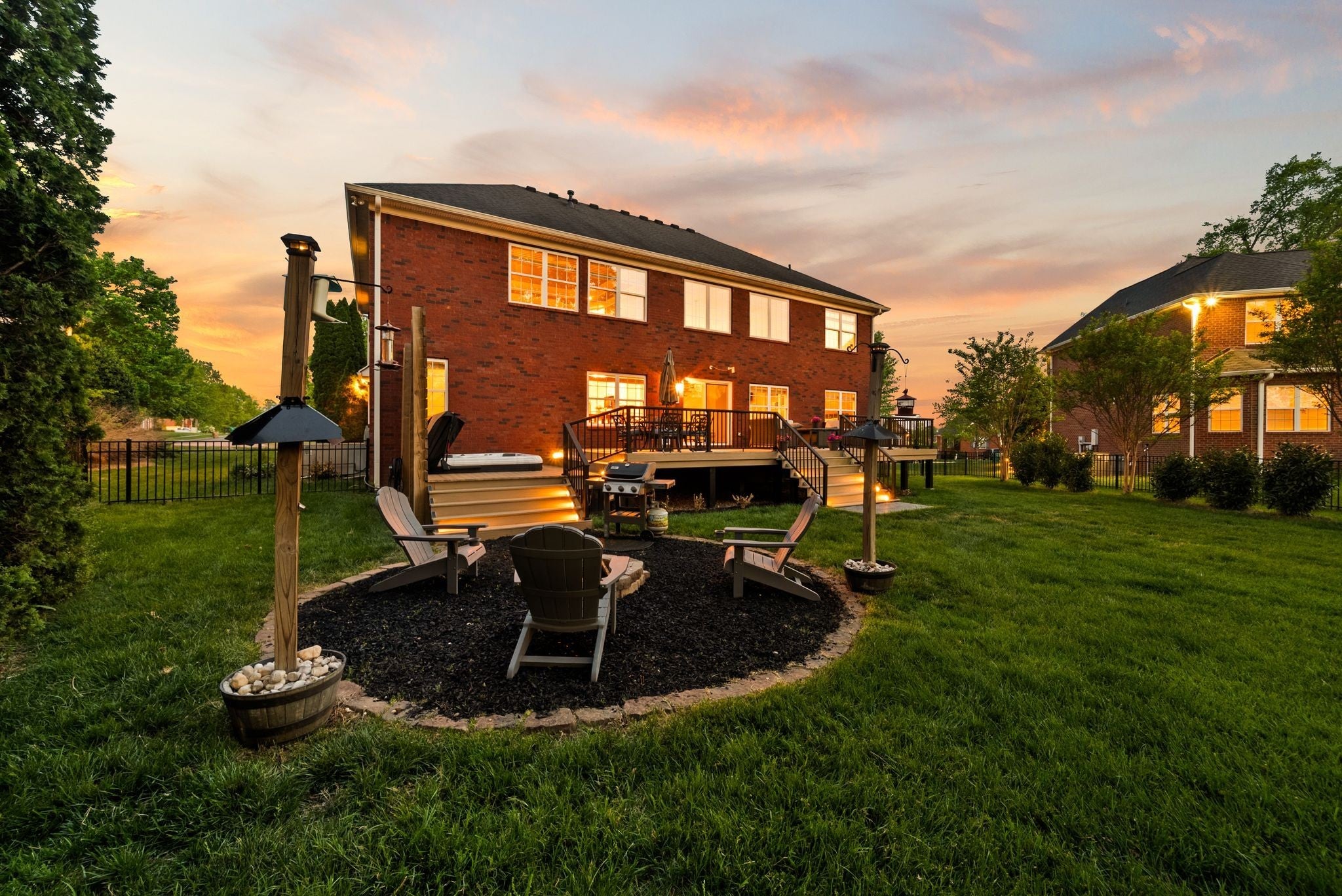 A Stunning Home, with many updates- situated in desirable Spring Hill Place! One of the few lots with Pond Views! Experience nature with the convenience of living in one of the fastest growing cities in Williamson County! This layout is open and perfect offering 5 Bedrooms, a dining room, dedicated office and main floor recreation room. The living area offers soaring ceilings and a wall of windows. Newer fireplace insert, freshly painted, built-ins and top of the line touches. The kitchen features Jenn Air appliances, wall ovens, granite counters and gas range. Just off the kitchen is a 'hard to find' working pantry- equipped with a sink and dishwasher! Main floor bedroom and full bath is convenient for guests. Primary suite is incredibly spacious and over looks the scenic backyard. Newly renovated spa-like bathroom with free-standing tub, tiled shower, and 2 closets! The park-like backyard offers a New composite deck, top of the line hot tub, firepit area and new fence! The side entry garage lends to the curb appeal and has an in-ground storm shelter! 5th BR is currently used as a spacious laundry- original main floor laundry area and hookups are still in place so laundry can easily be moved, should you choose. New carpet installed in a few rooms. Hardwood floors throughout! Beautiful Neighborhood pool and pickleball/tennis courts! Easy access to I-65!