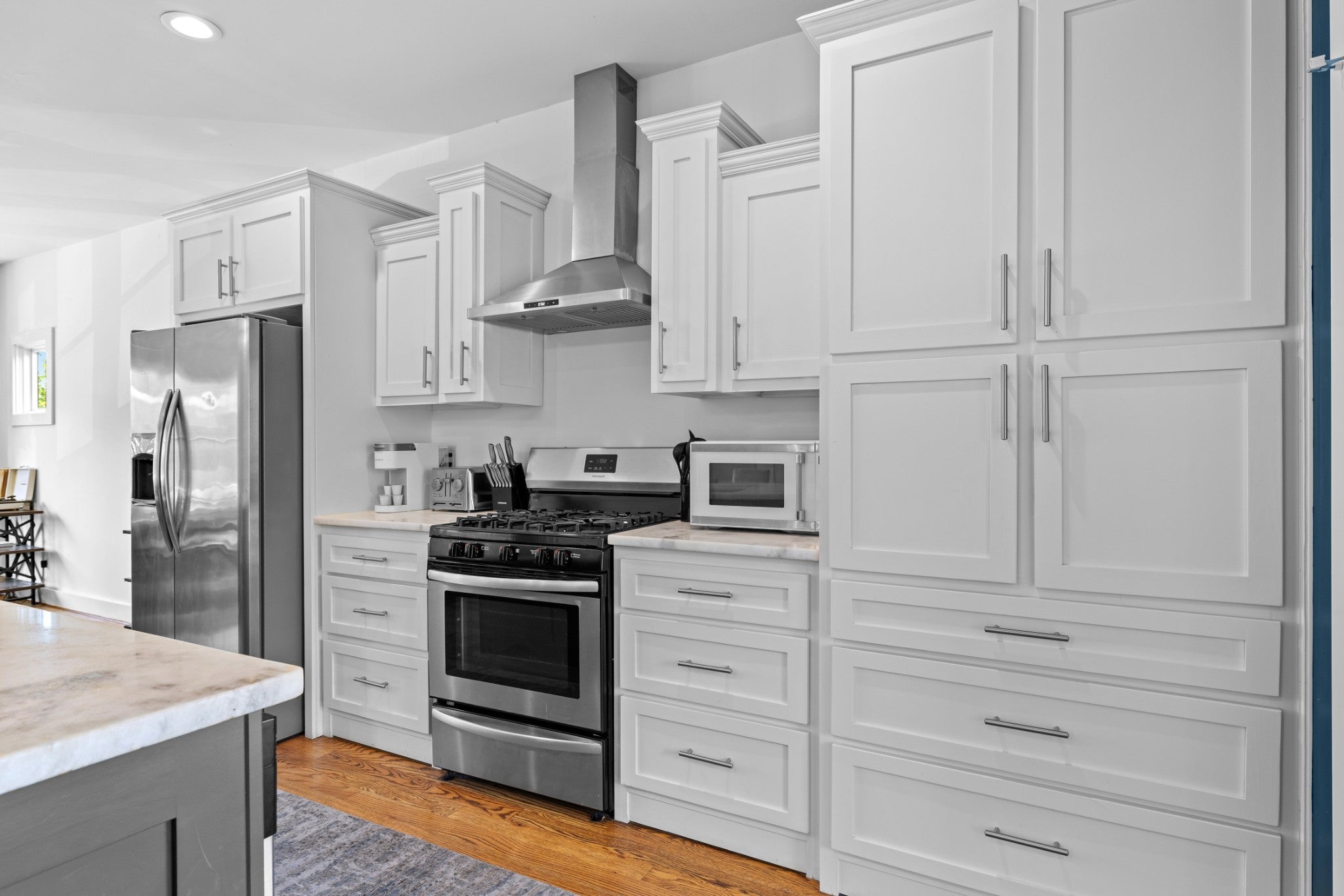 - Built-In Gas Range, Dishwasher, Disposal, Dryer, Microwave, Stainless Steel Appliance(s), Washer