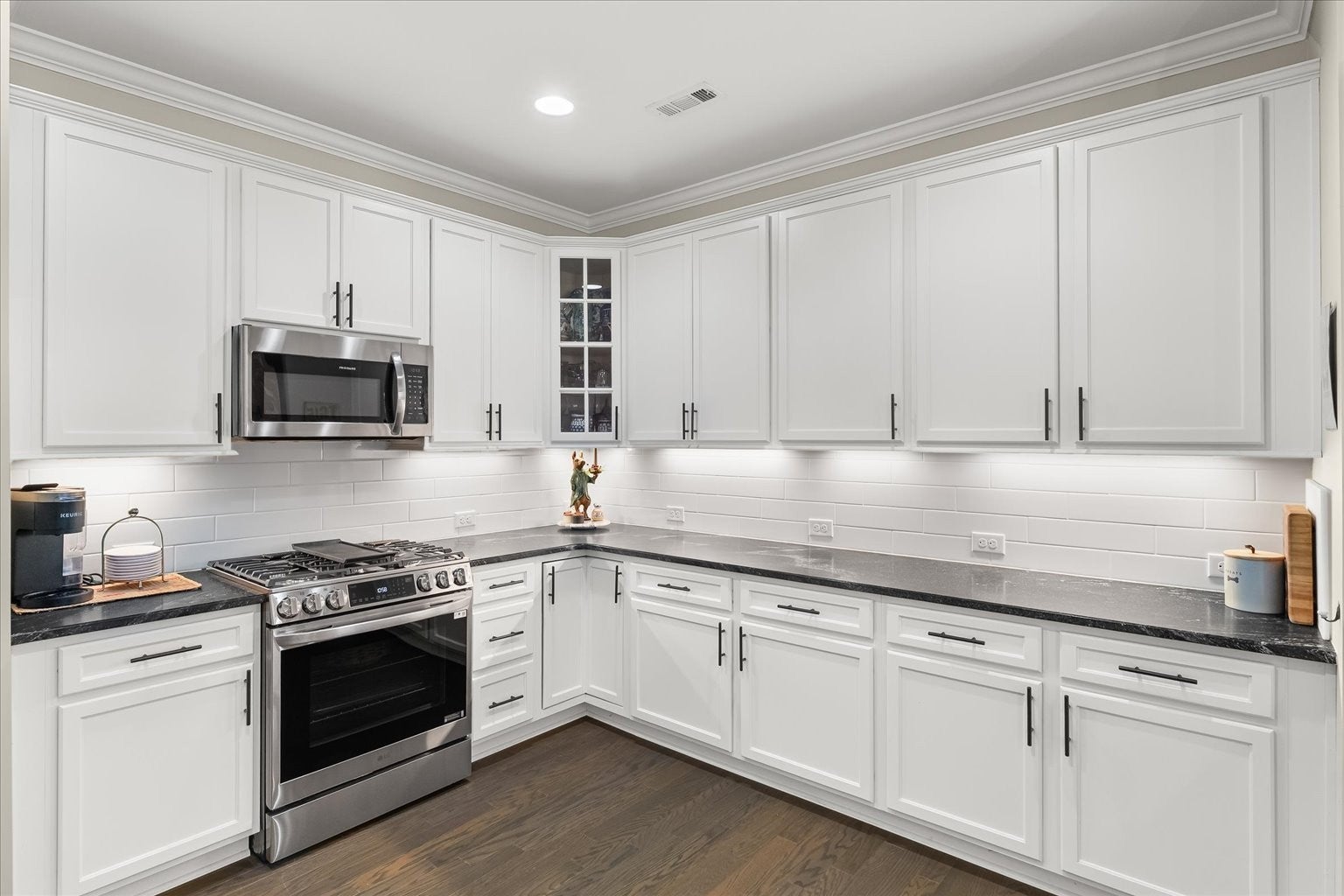 - Gas Oven, Dishwasher, Disposal, Dryer, Microwave, Refrigerator, Stainless Steel Appliance(s), Washer