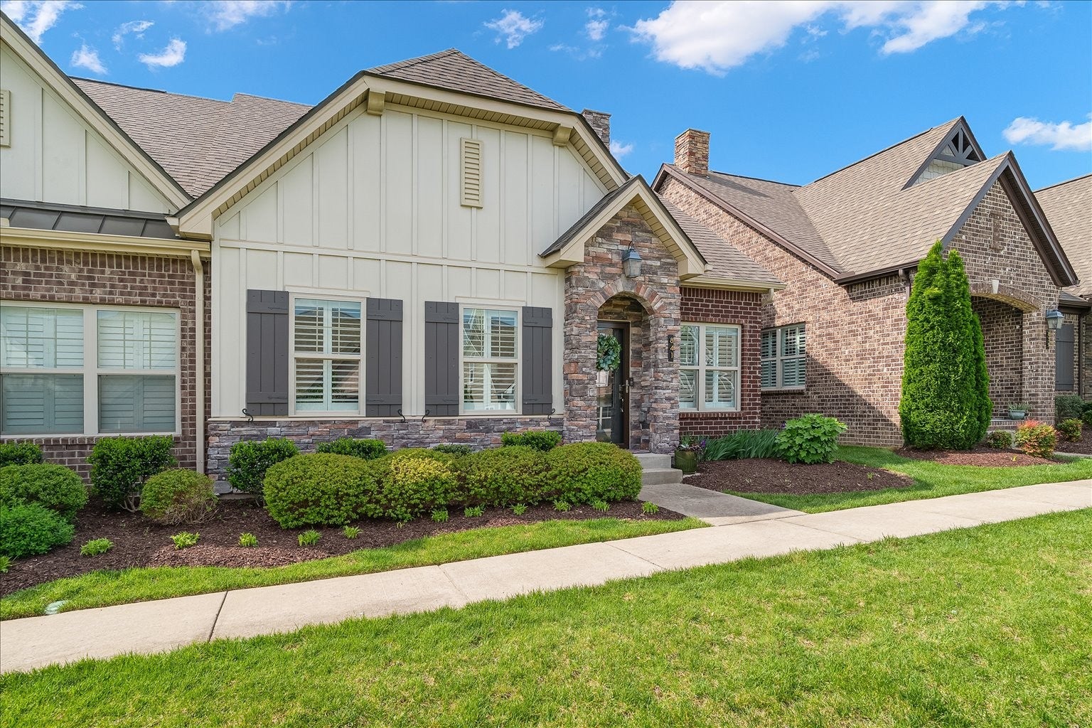 Welcome to easy, elegant living in the highly sought-after 55+ community of Nolen Mill! This beautifully maintained cottage offers the perfect blend of comfort, convenience, and low-maintenance living. Designed for effortless one-level living, this end-unit home features an open-concept floor plan filled with natural light, creating a warm and inviting atmosphere. The well-appointed kitchen flows seamlessly into the living and dining areas—perfect for both everyday living and entertaining. Thoughtful upgrades like hardwood floors, porcelain tile bath floors, Restoration Hardware light fixtures, upgraded kitchen soft-close cabinets with roll-out shelves, an apron sink, and much more add style and functionality. Enjoy the convenience of an attached two-car garage and step outside to your private outdoor space—ideal for peaceful mornings or relaxing evenings. Lawn care and exterior maintenance are handled for you, allowing you to truly enjoy a lock-and-leave lifestyle. This cottage offers a gated courtyard setting with interconnecting neighborhood sidewalks, walking trail just steps away and a dog park. Ideally located near shopping and dining, including the new Publix, First Watch, Mojo Tacos, Oh My Chives, and for a sweet summer treat, Abbott's Frozen Custard. Walkable to the Farmers Market and Nolensville Recreation Center and just minutes to Franklin, Cool Springs, and Brentwood, with medical facilities nearby. Experience the lifestyle you’ve been waiting for—simple, social, and stress-free. Don’t miss your opportunity to own in one of Williamson County's most charming and established active adult communities!