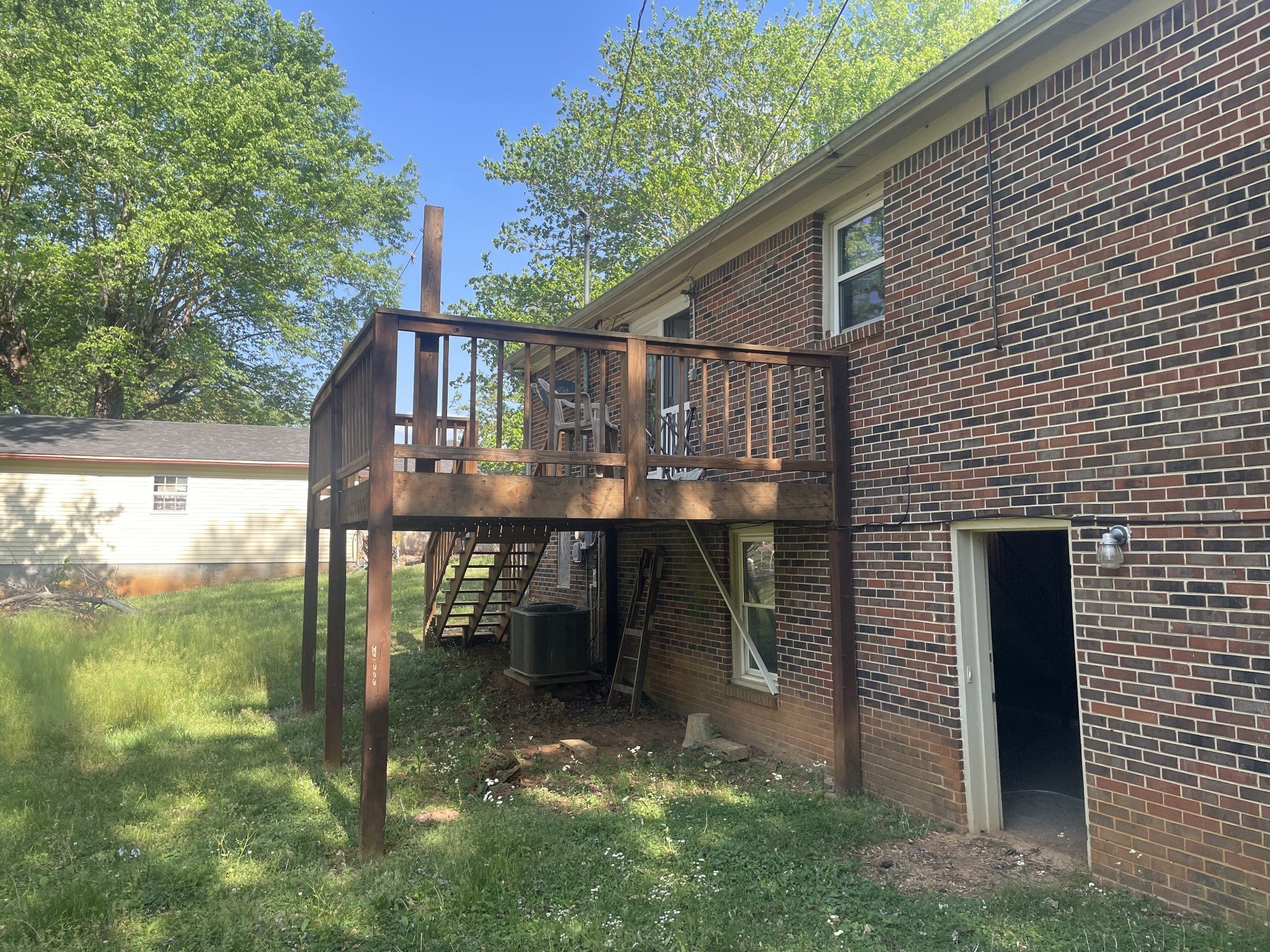 Beautiful brick home in a quiet neighborhood. Over 1,100 sqft of living space with a walk-out basement of 1000 sq ft that has plenty of room for a game room or more living space. Mature trees and serene outdoor space makes this home feel like home: cozy, quiet and peaceful. This home has been well maintained with newer windows and living room/kitchen opened up. Potential for rooms to be much larger with some work. Selling as-is.