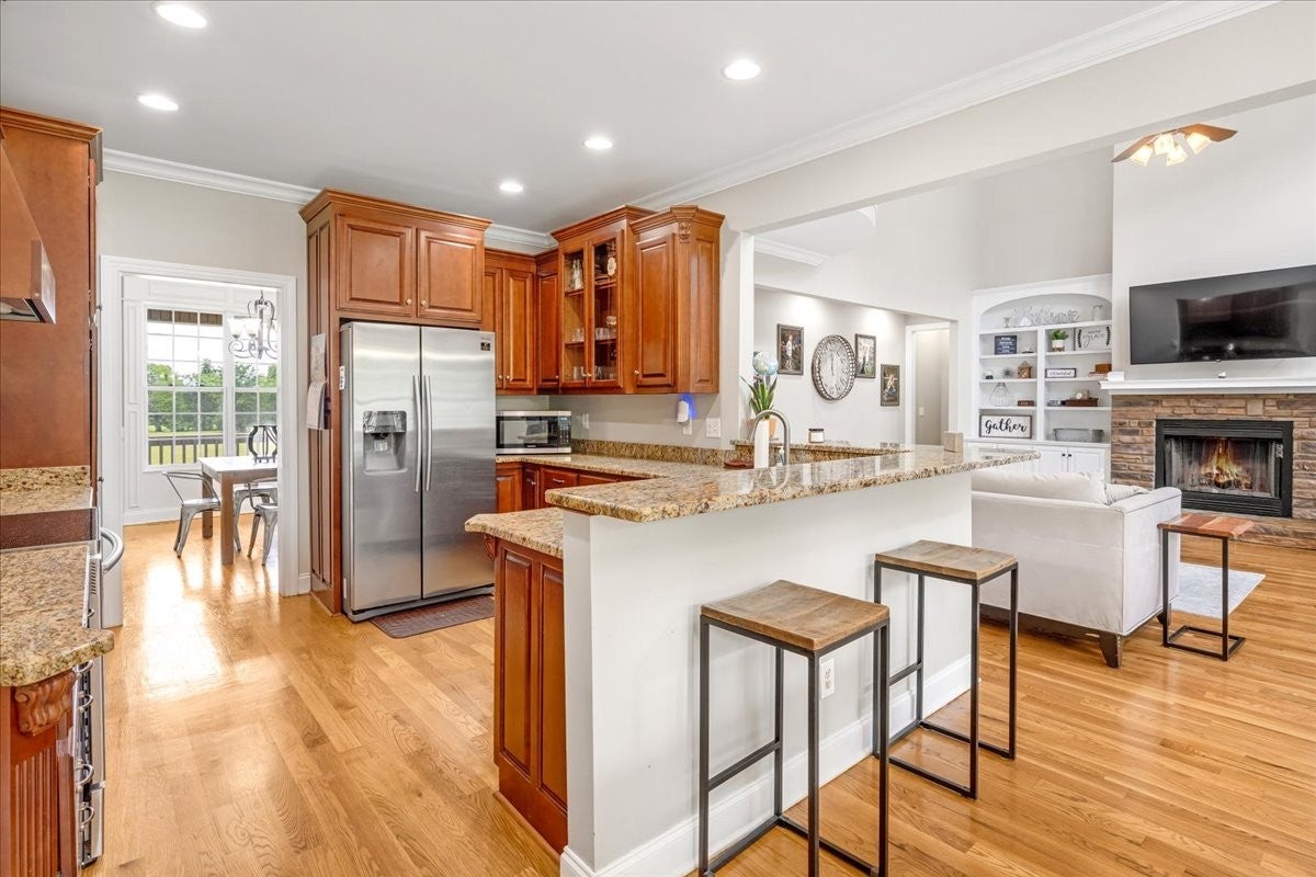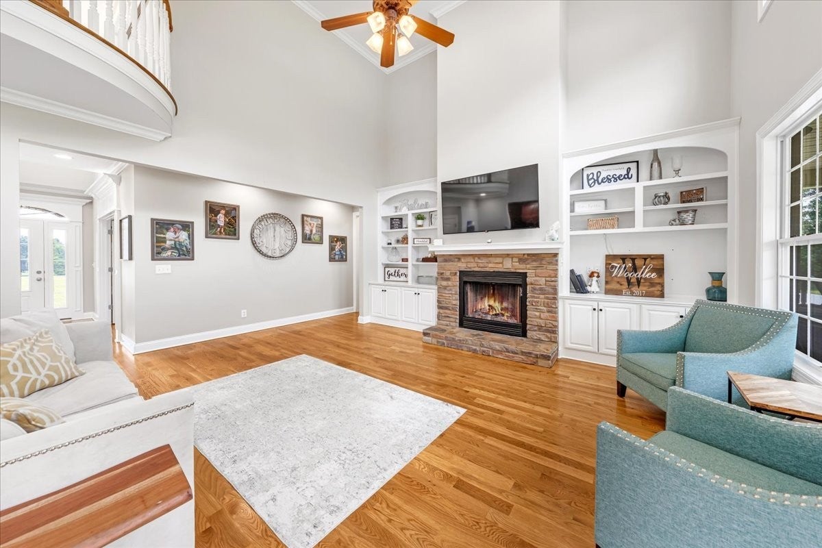 Beautifully crafted 4-bedroom, 3.5-bath custom home with a dedicated office, two-car attached garage, and 30x40 detached workshop, all situated on 6.67 peaceful acres in Rutherford County. This spacious property showcases true hardwood floors, granite countertops, and detailed trim work throughout. The main-level primary suite includes 2 walk-in closet and spa-like bath, while the upstairs offers a private guest suite with an attached full bathroom—ideal for visitors or multi-generational living. The open-concept layout features a sun-filled living room, formal dining area, bonus/flex space, and a large kitchen with ample cabinetry and backyard views. The dedicated office is perfect for remote work or homeschooling. Step outside to enjoy a fenced backyard, covered porches, and wide-open acreage with plenty of room to garden, explore, or expand. Located just minutes from Murfreesboro, Shelbyville, and I-24—and only 45 minutes to Nashville International Airport (BNA)—this move-in ready home blends modern comfort, functionality, and the freedom of country living in one.