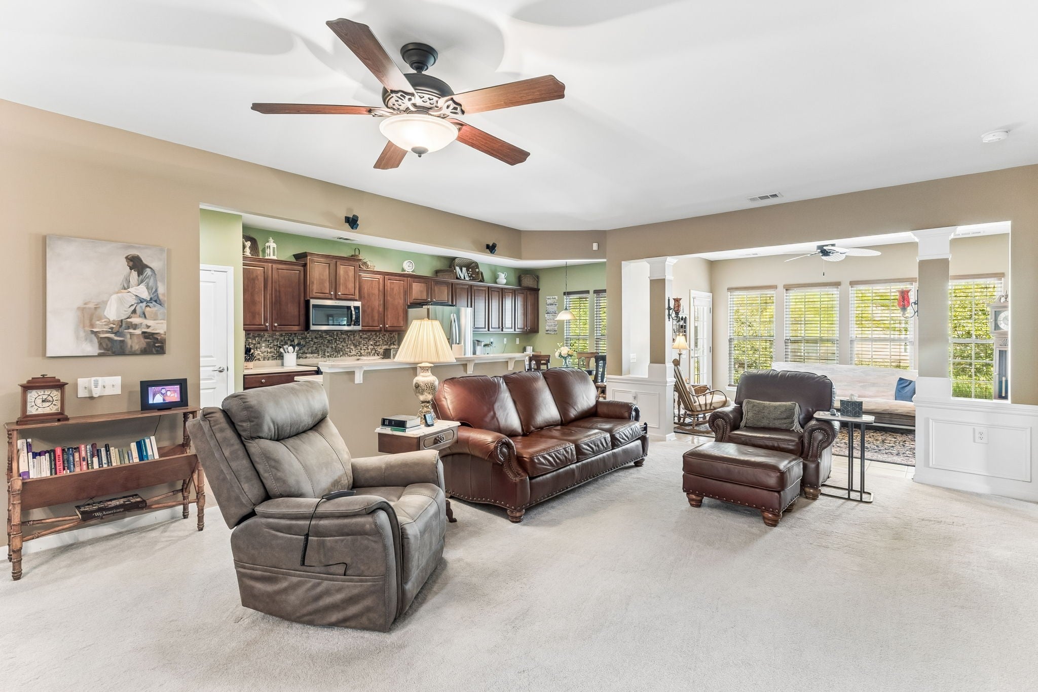 Welcome to resort-style living in the highly sought-after Del Webb Lake Providence 55+ gated community! Centered around a beautiful, stocked lake, this vibrant neighborhood offers an incredible array of amenities designed for an active and social lifestyle. Enjoy indoor and outdoor pools and hot tubs, a fully equipped fitness center, billiards, pickleball and basketball courts, bocce ball court, plus paddle boats and kayaks for fun on the water. Scenic walking trails wind throughout the community, perfect for daily strolls and connecting with neighbors. This beautifully designed Vernon Hills open-concept floor plan features 3 bedrooms and 2 full baths, offering both comfort and flexibility. The home includes a spacious dining and living room combination, a dedicated study, an eat-in kitchen, and a bright sunroom -ideal for relaxing or entertaining. The private primary suite is a true retreat, complete with an extra-large walk-in closet, separate vanities, a walk-in shower with built-in seat, and a luxurious garden tub. Recent upgrades provide peace of mind, including a new roof (2023), new water heater (2023), new A/C condenser (2017) and new gutters (2021). All front windows have 3M window tinting film applied. Enjoy low-maintenance living in a welcoming, amenity-rich community- this home truly has it all!