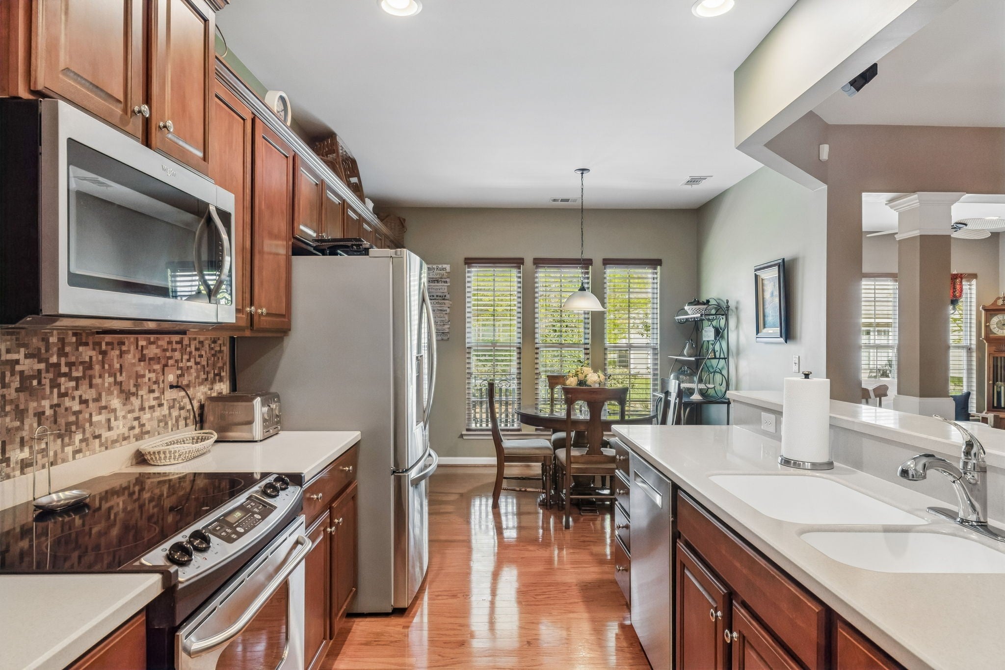 - Electric Oven, Dishwasher, Disposal, Microwave, Refrigerator, Stainless Steel Appliance(s)