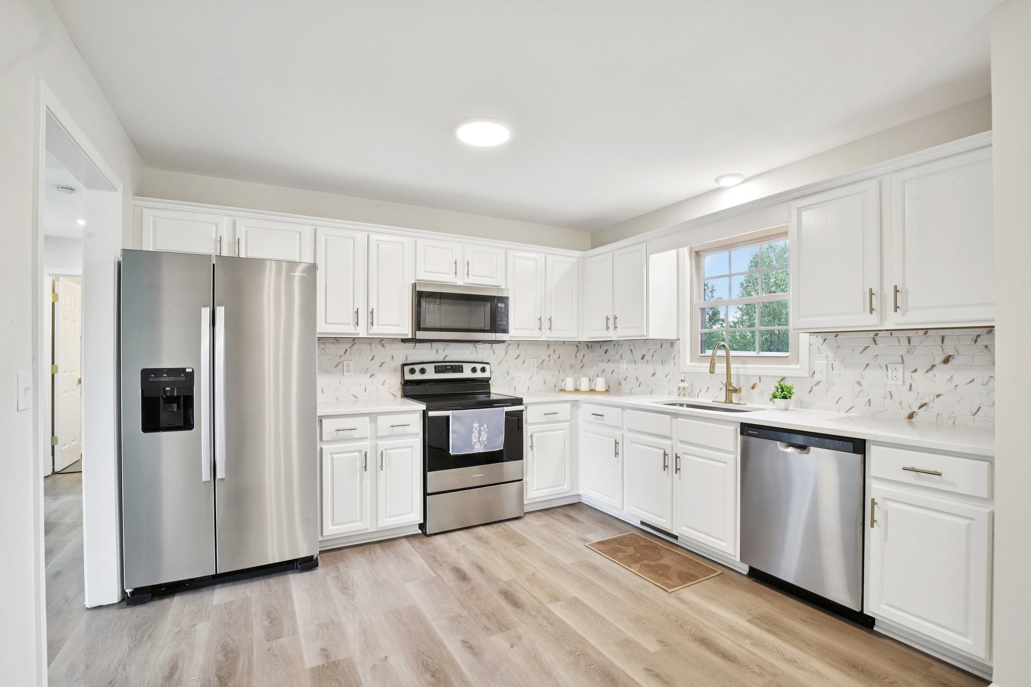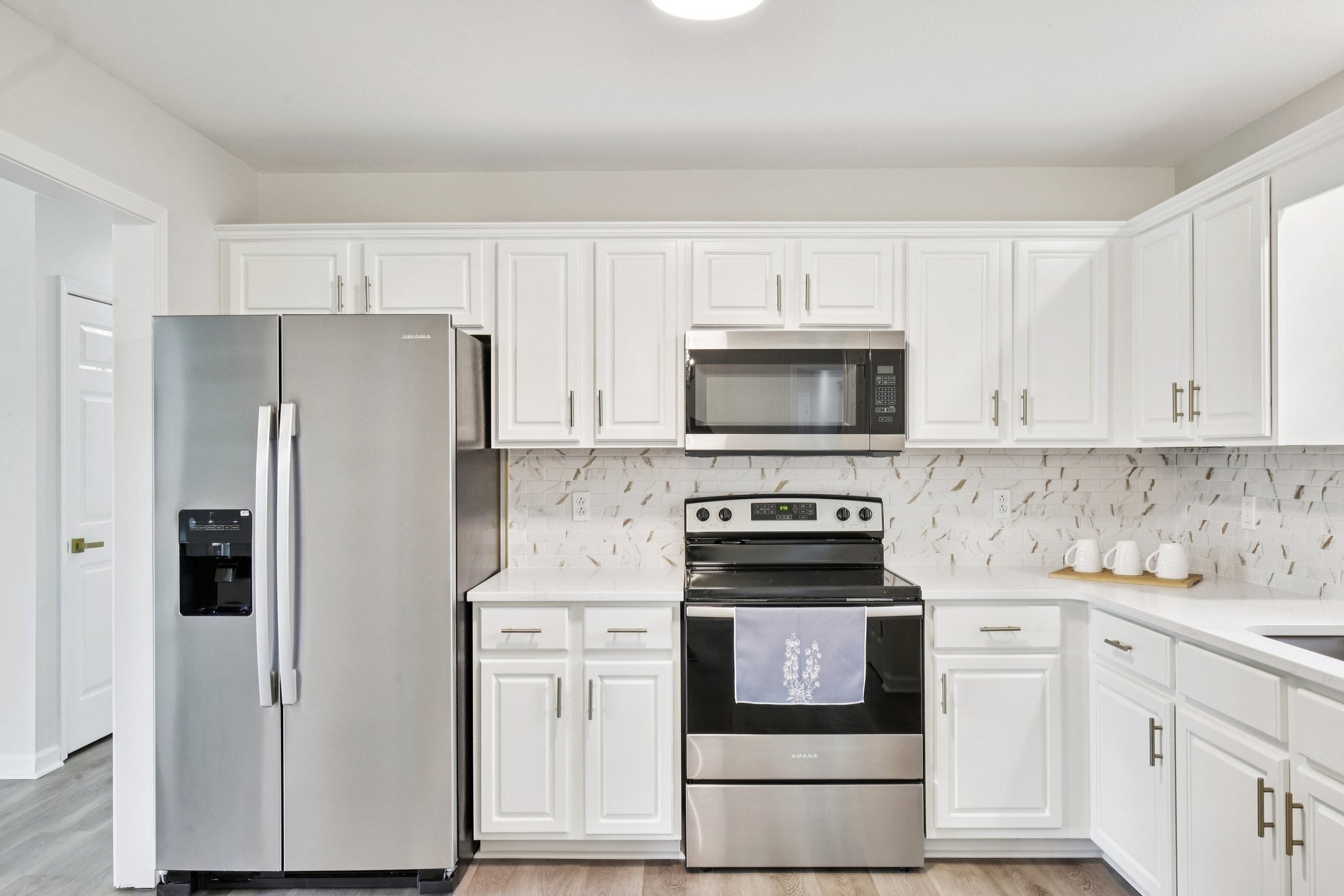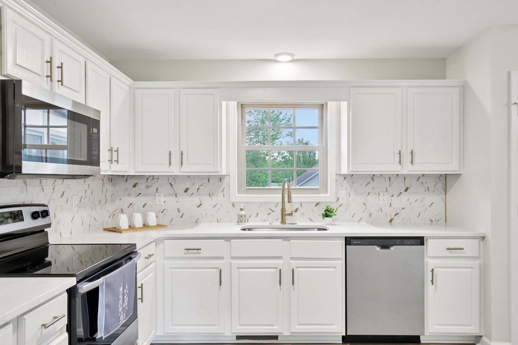 - Electric Range, Dishwasher, Microwave, Refrigerator
