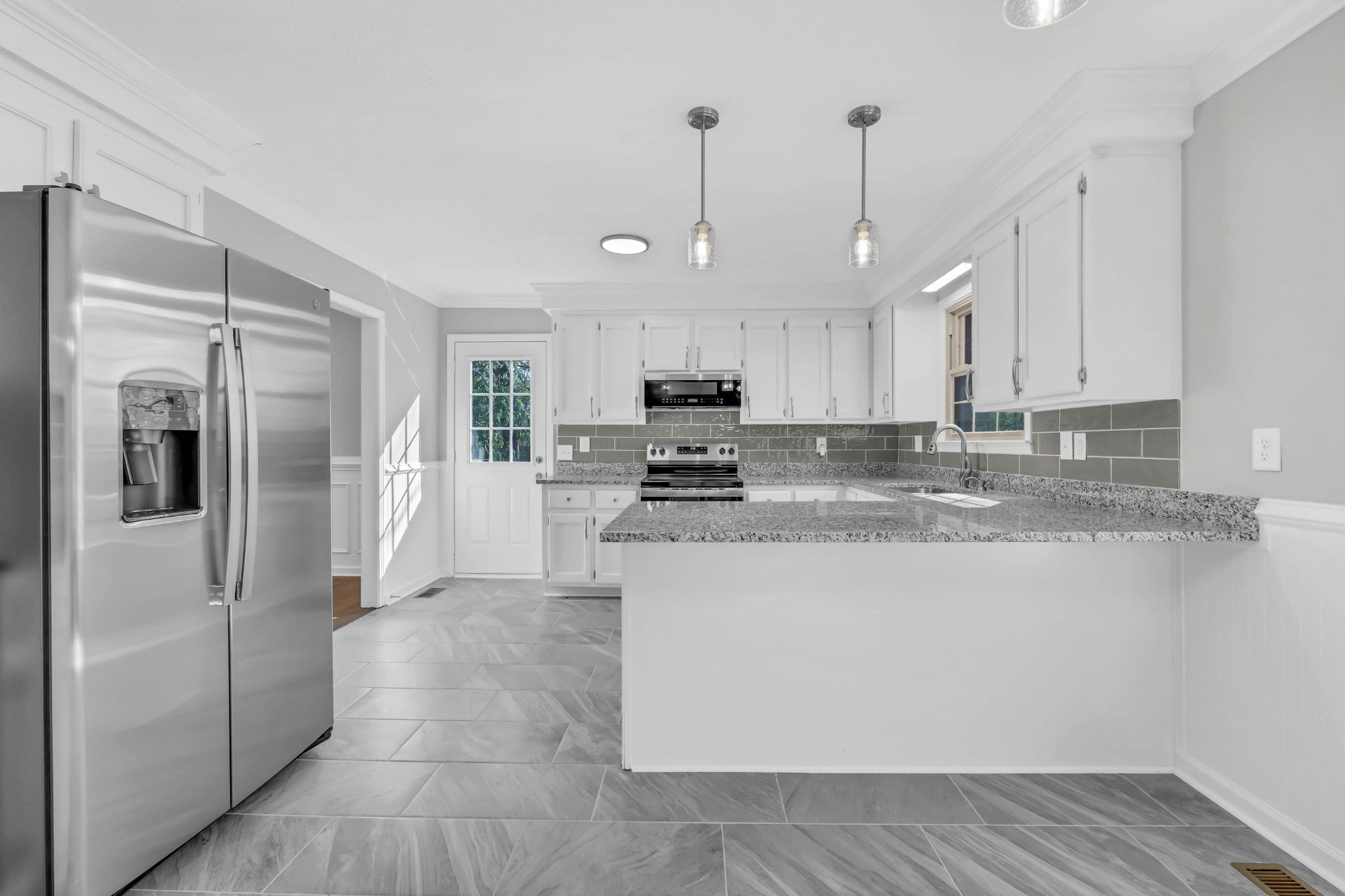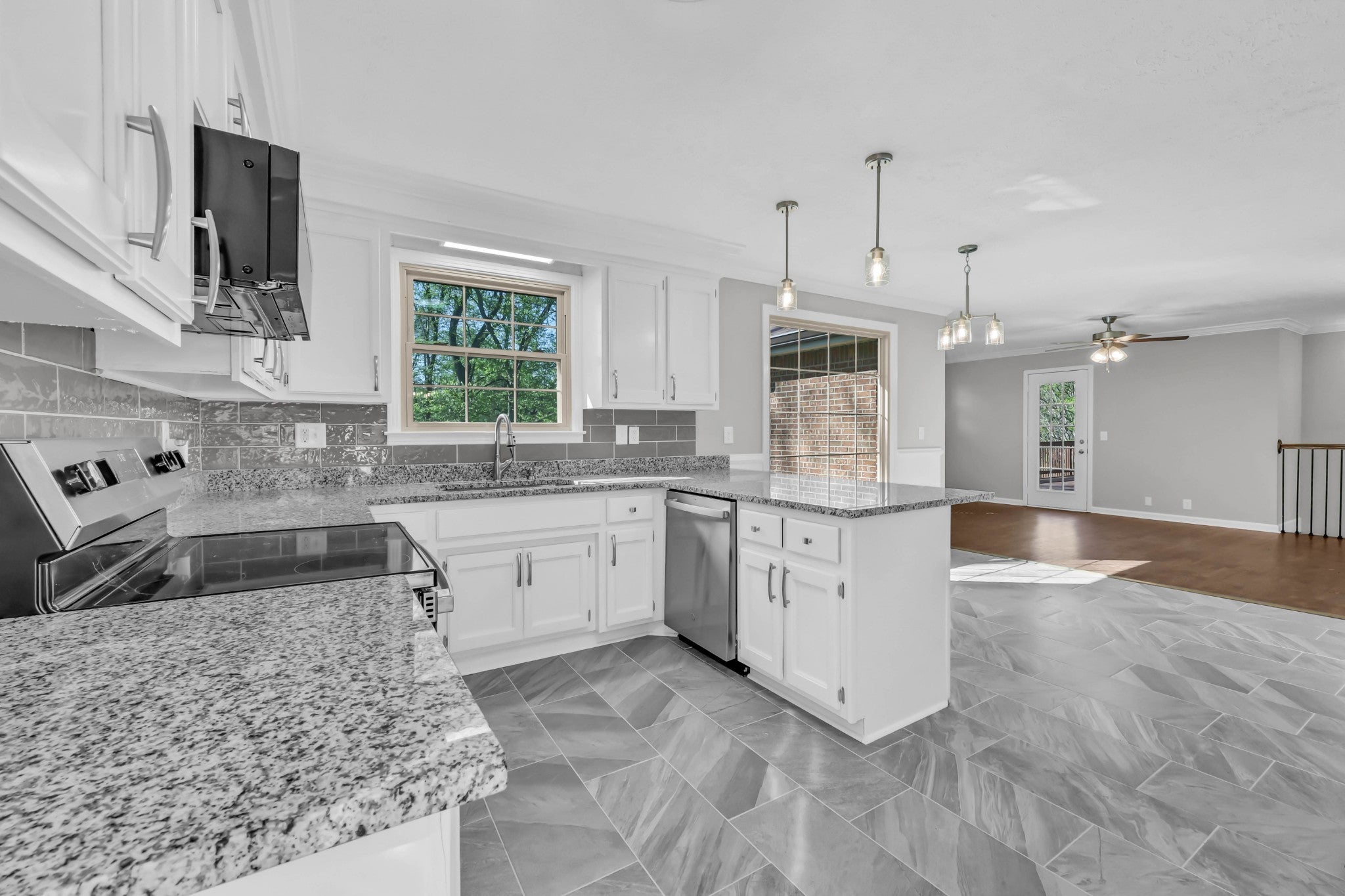 - Electric Oven, Electric Range, Dishwasher, Microwave, Refrigerator, Stainless Steel Appliance(s)