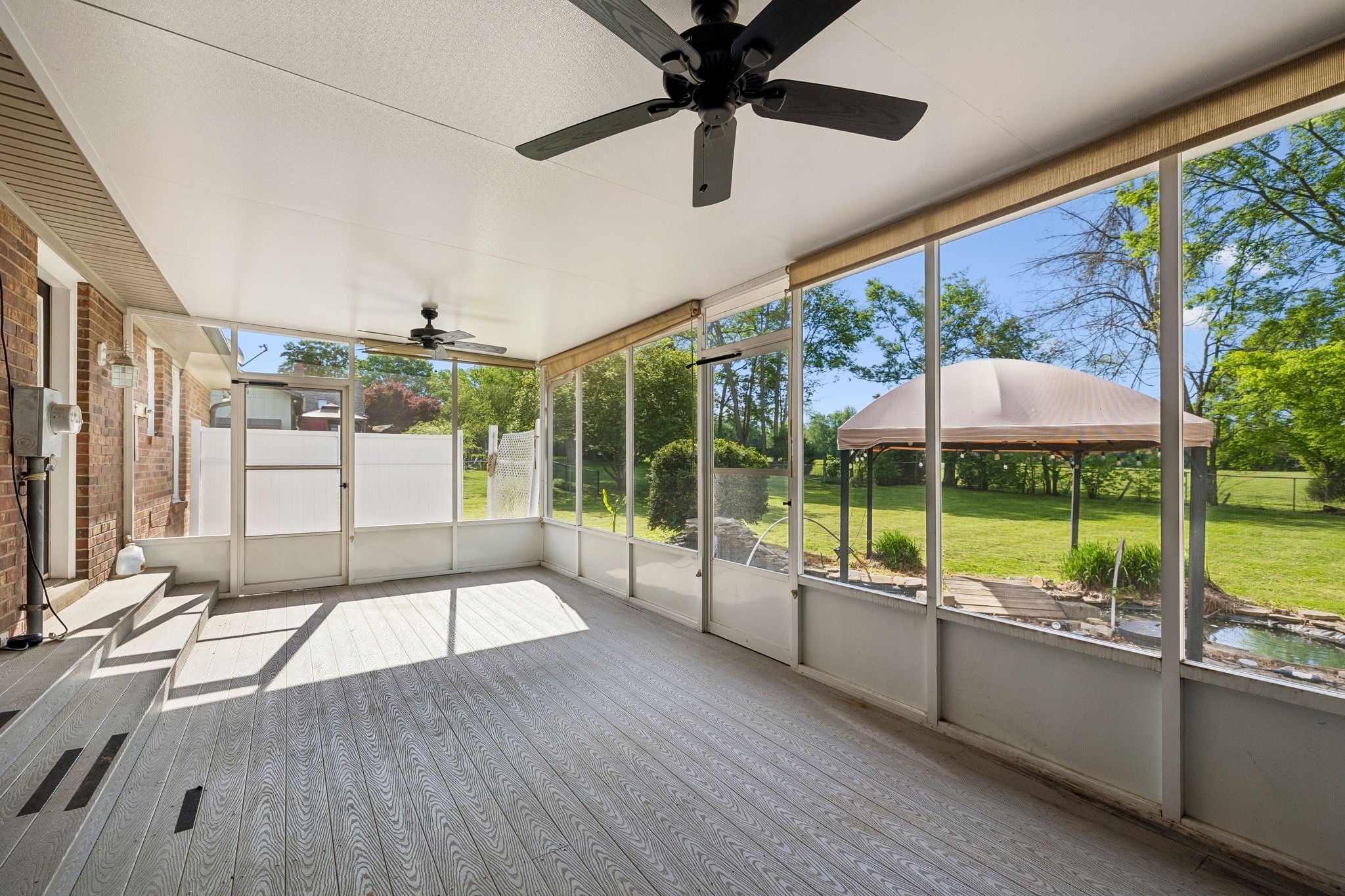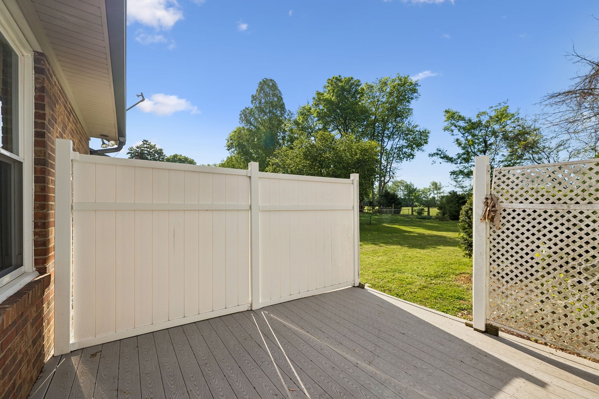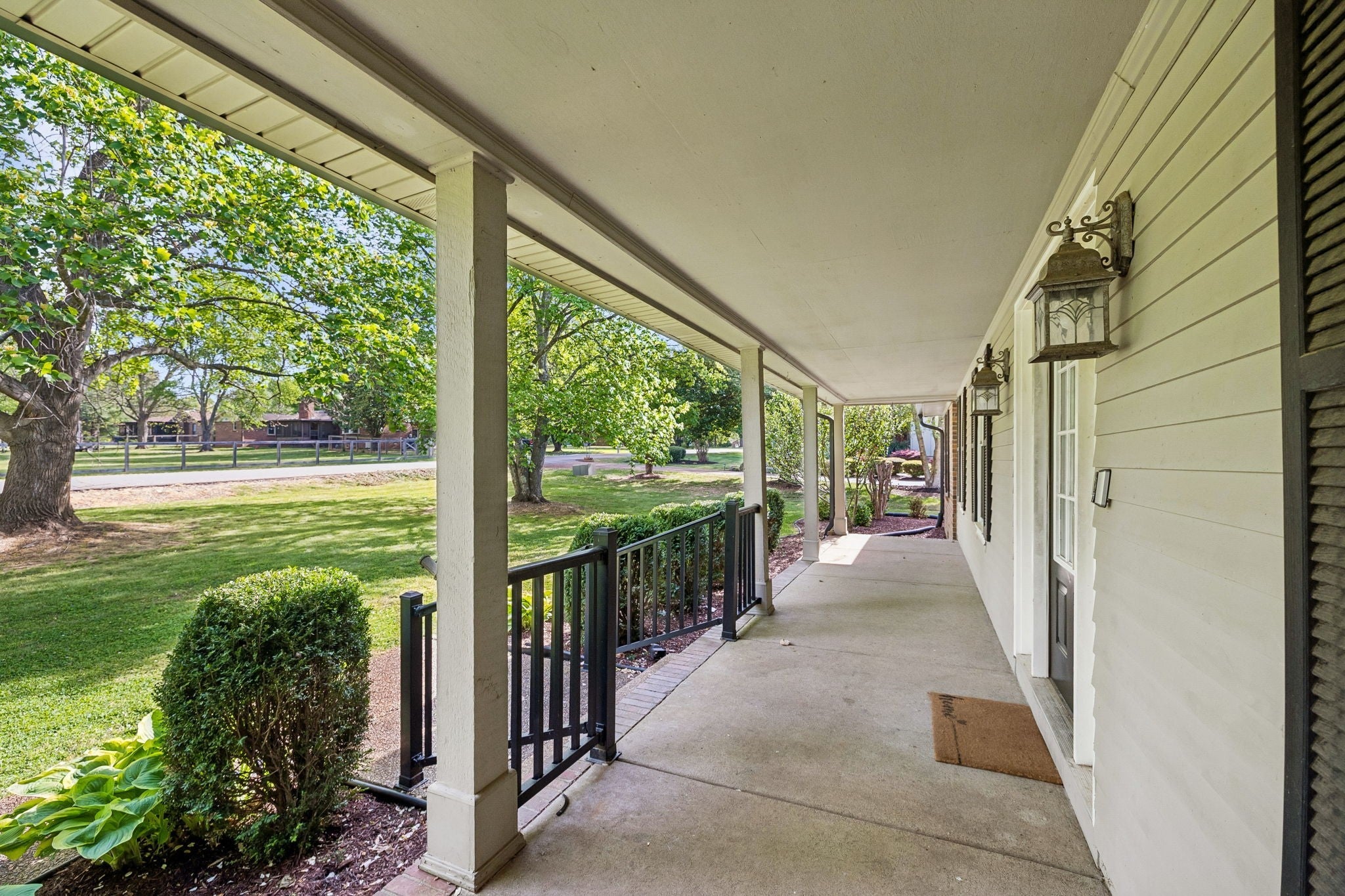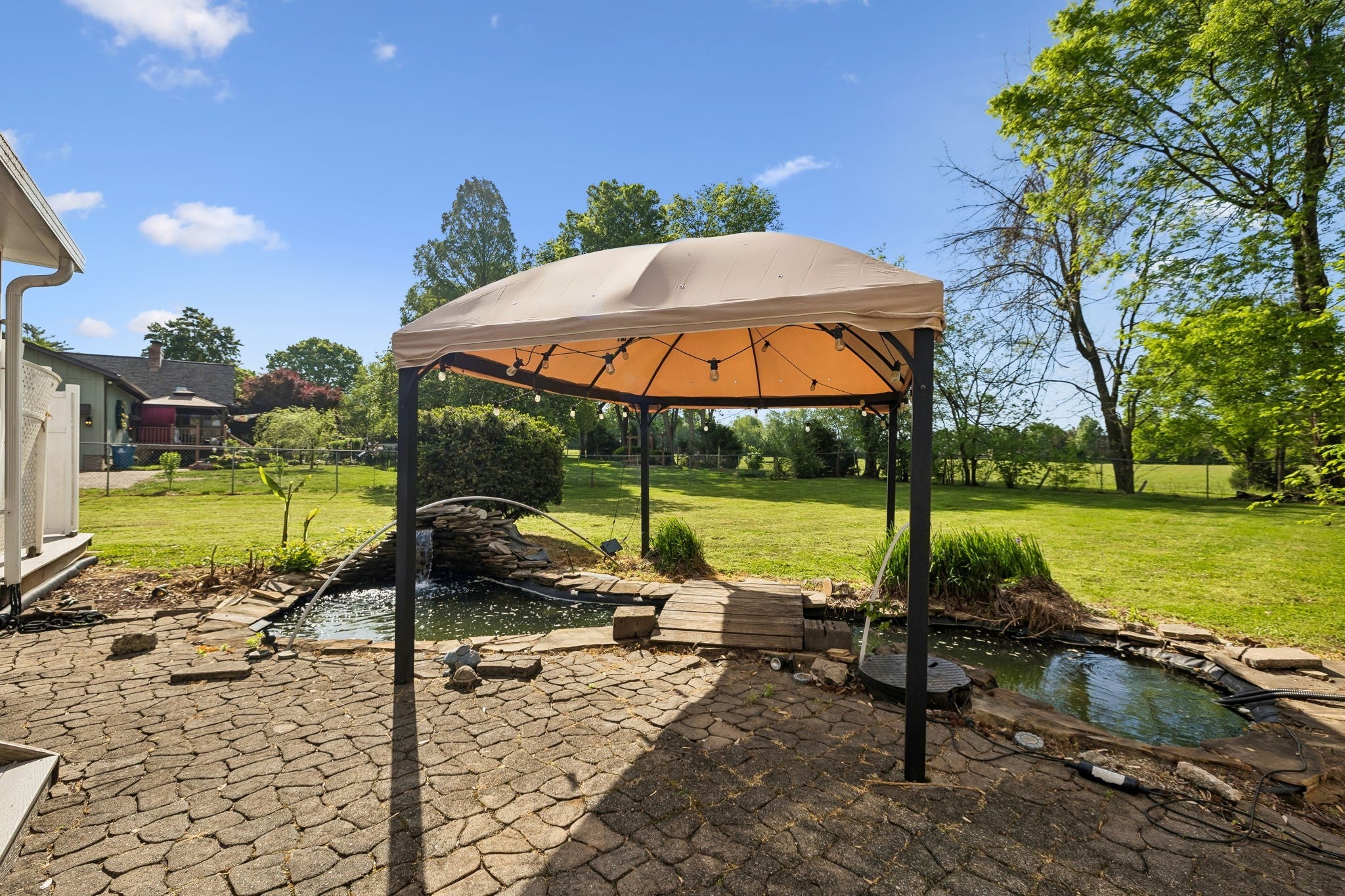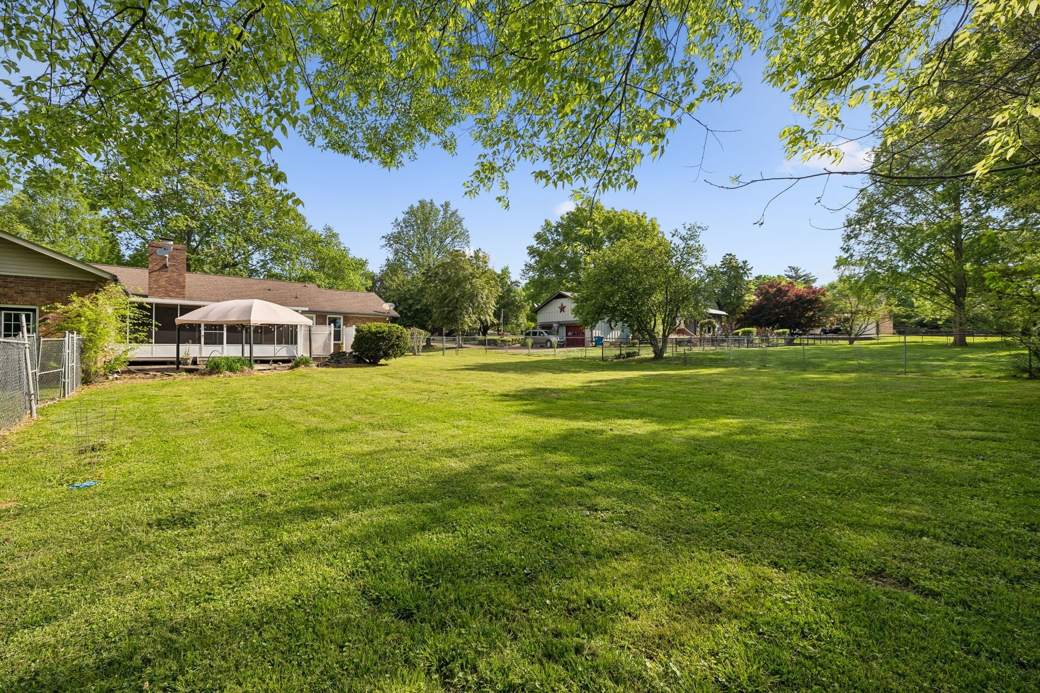 All-brick, one-level ranch situated on a large, level corner lot in a pristine neighborhood with underground utilities and no city taxes—yet just minutes from all the shopping, dining, and conveniences of Murfreesboro. The property backs up to larger acreage, offering added privacy and a peaceful setting. This 3 bedroom, 2 bath home features approximately 2,001 square feet with a 2-car garage, including a 21' x 8' workshop area. Inside, you’ll find a tiled entry foyer, spacious eat-in kitchen with abundant cabinetry and a sliding window above the sink, and a comfortable den with a brick fireplace and gas logs. A separate living room/dining room combination provides additional space for entertaining. Primary suite includes a walk-in shower, while the secondary bath features a jacuzzi-style tub and granite countertops. Hardwood flooring runs throughout most of the home, with tile in the utility room and bathrooms. Outdoor living is a standout with a covered front porch, a 24' x 12' screened-in porch with Trex decking, an additional 12' x 11' open deck, and a paver patio area on ground level. The backyard is beautifully maintained with chain-link fencing, a koi pond with waterfall, and mature landscaping. Additional features include an aggregate driveway, tankless water heater, whole-home HEPA inline duct filter, humidifier system, and new double-pane argon windows installed in 2021, along with leaf guard gutter protection.