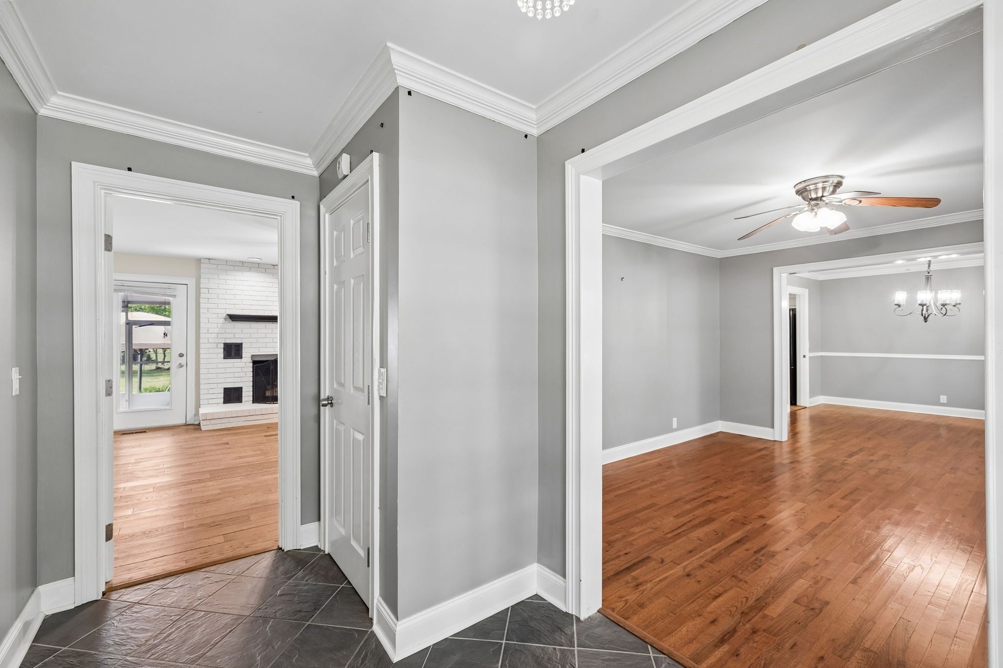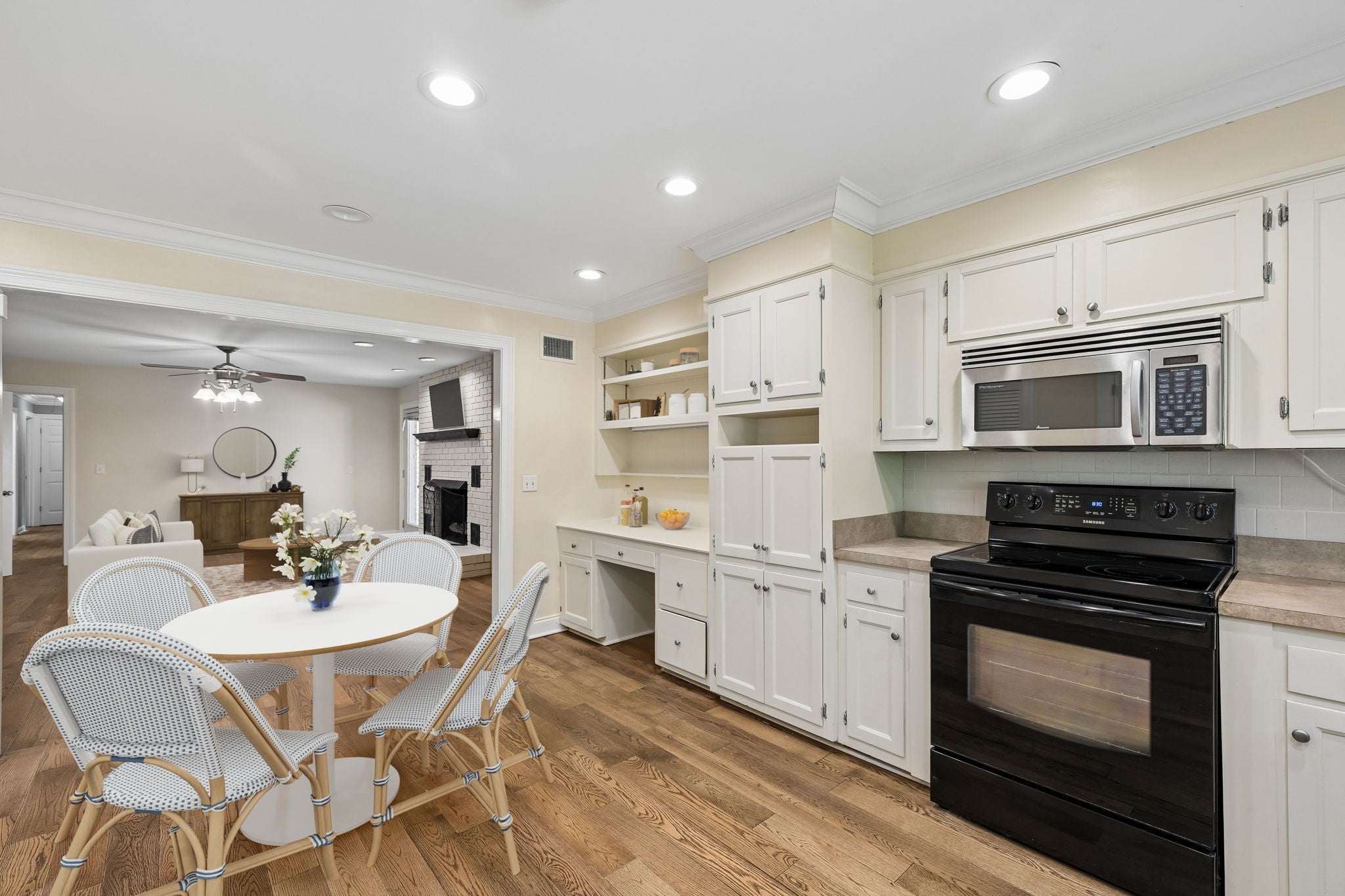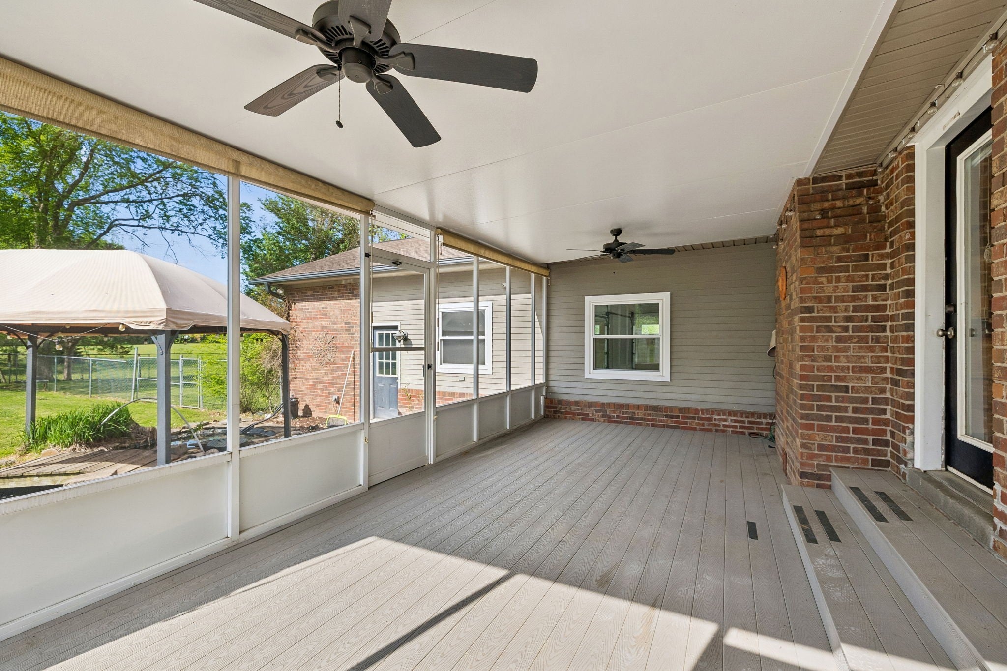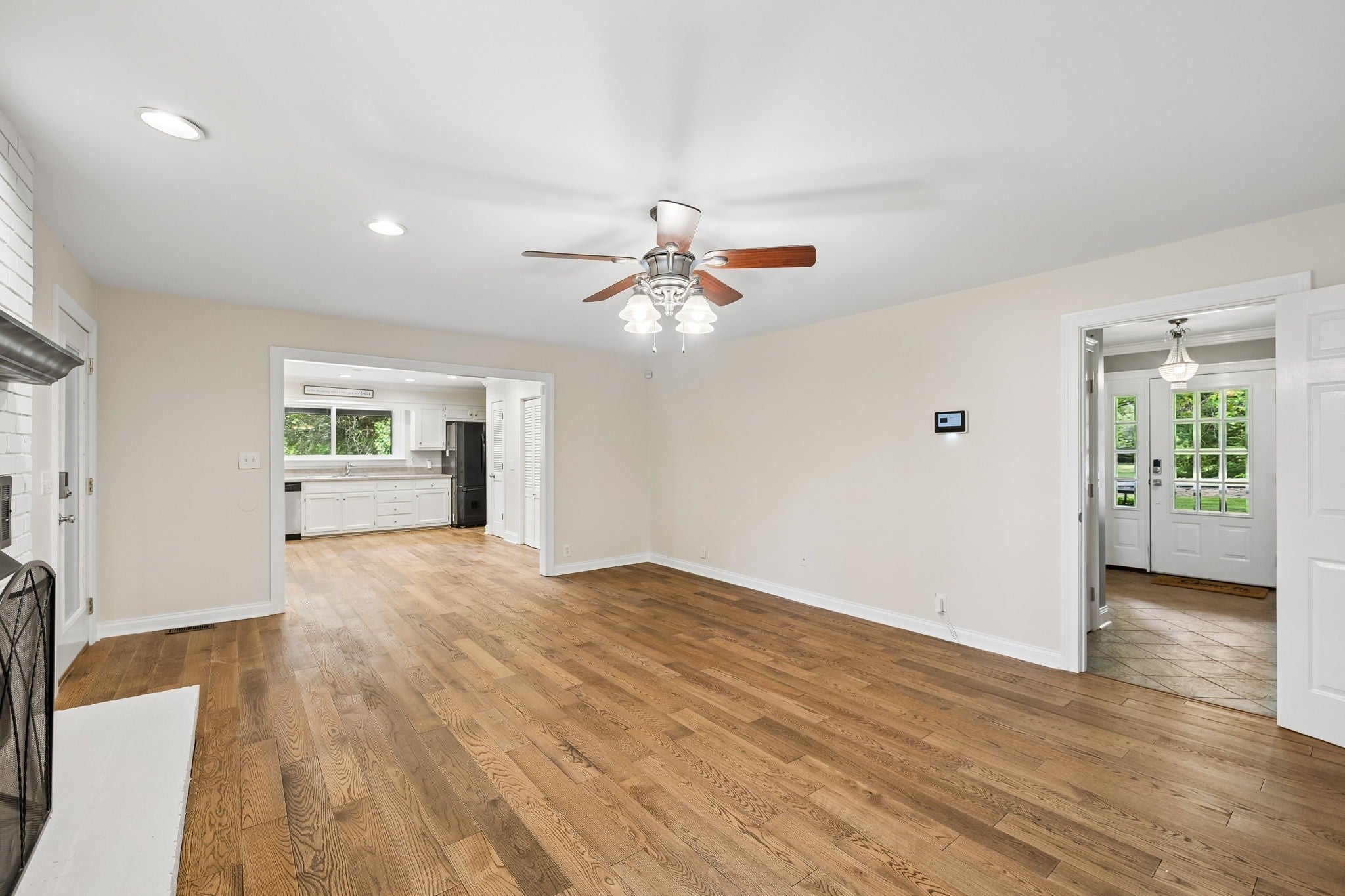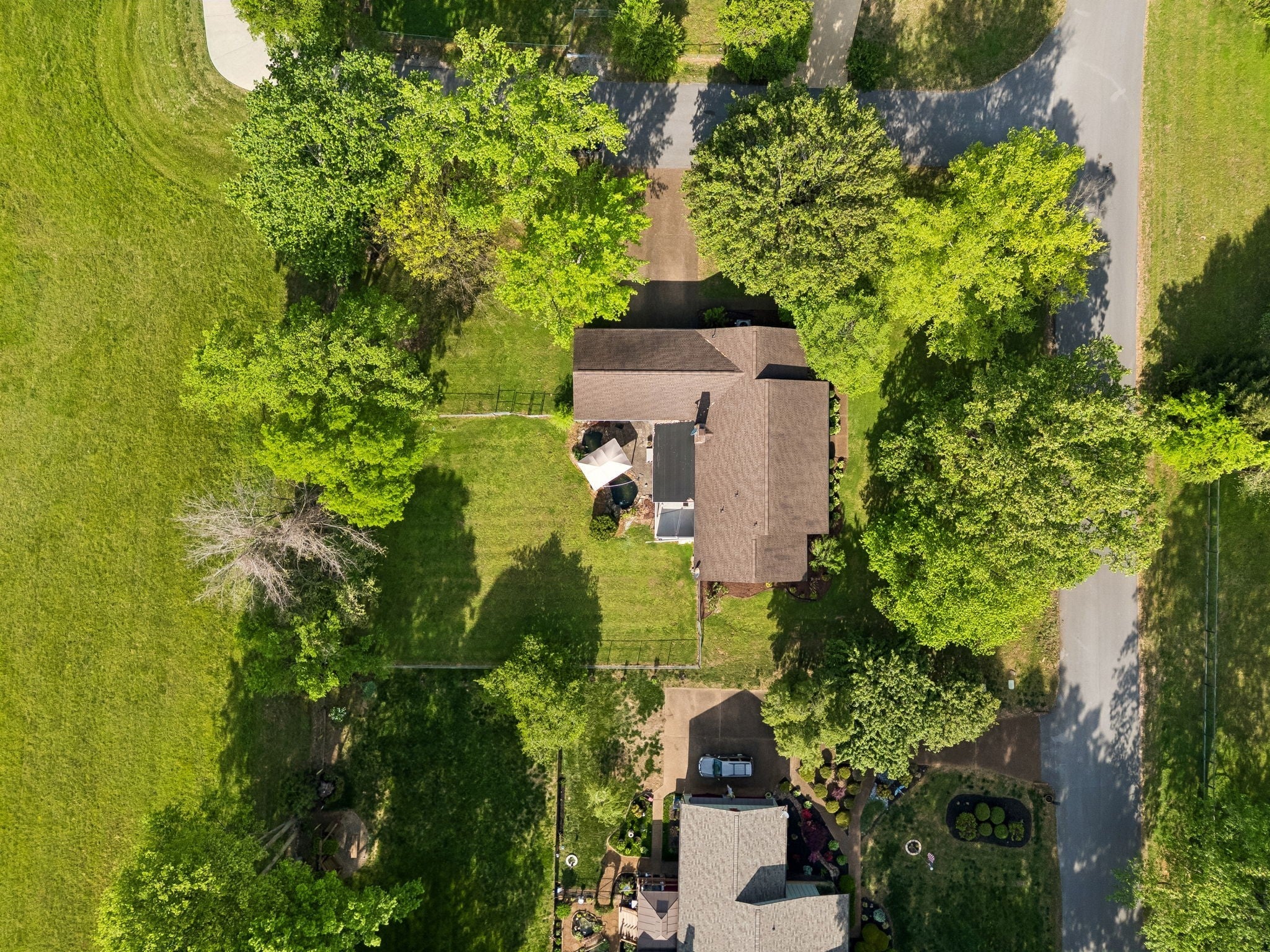 All-brick, one-level ranch situated on a large, level corner lot in a pristine neighborhood with underground utilities and no city taxes—yet just minutes from all the shopping, dining, and conveniences of Murfreesboro. The property backs up to larger acreage, offering added privacy and a peaceful setting. This 3 bedroom, 2 bath home features approximately 2,001 square feet with a 2-car garage, including a 21' x 8' workshop area. Inside, you’ll find a tiled entry foyer, spacious eat-in kitchen with abundant cabinetry and a sliding window above the sink, and a comfortable den with a brick fireplace and gas logs. A separate living room/dining room combination provides additional space for entertaining. Primary suite includes a walk-in shower, while the secondary bath features a jacuzzi-style tub and granite countertops. Hardwood flooring runs throughout most of the home, with tile in the utility room and bathrooms. Outdoor living is a standout with a covered front porch, a 24' x 12' screened-in porch with Trex decking, an additional 12' x 11' open deck, and a paver patio area on ground level. The backyard is beautifully maintained with chain-link fencing, a koi pond with waterfall, and mature landscaping. Additional features include an aggregate driveway, tankless water heater, whole-home HEPA inline duct filter, humidifier system, and new double-pane argon windows installed in 2021, along with leaf guard gutter protection.
