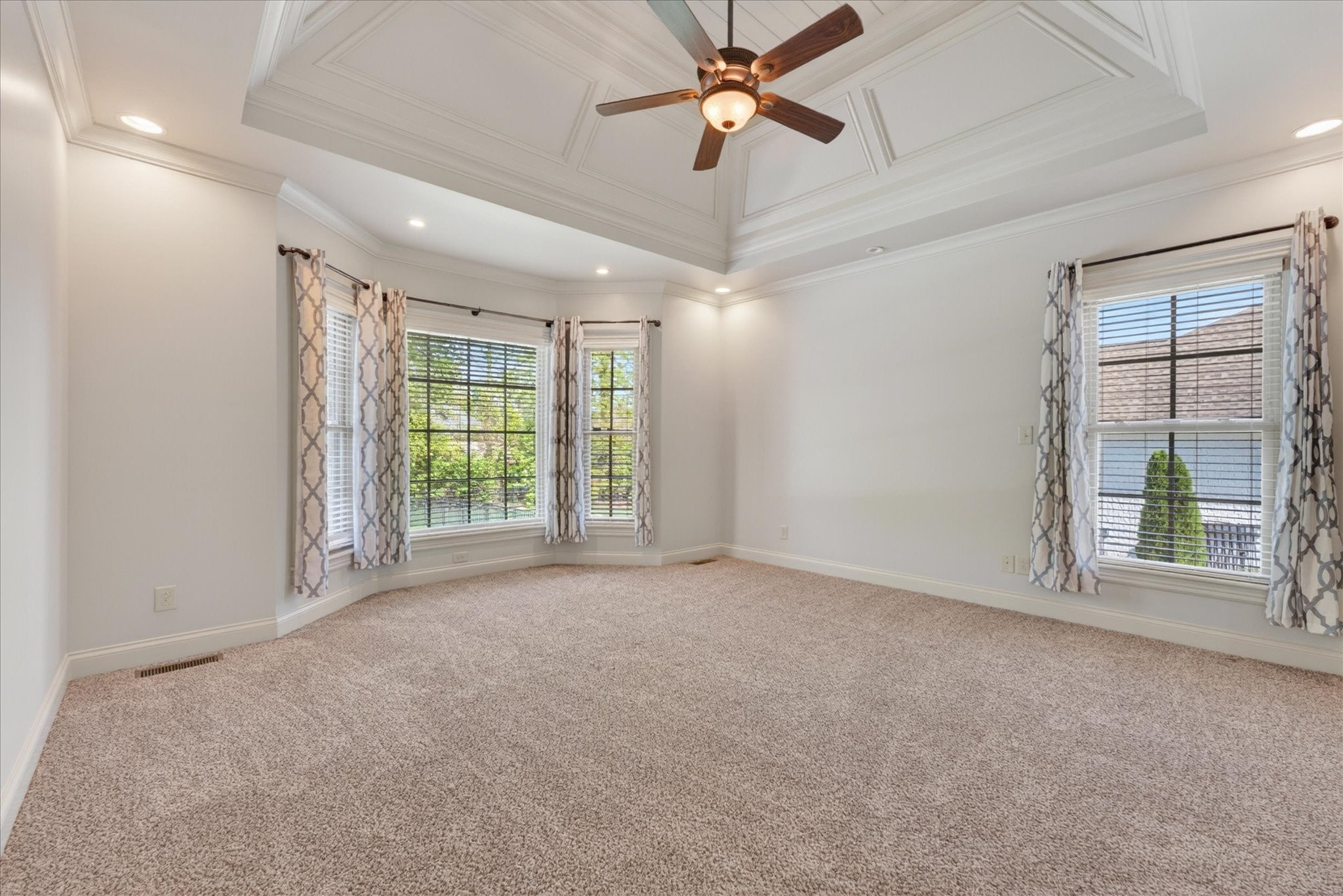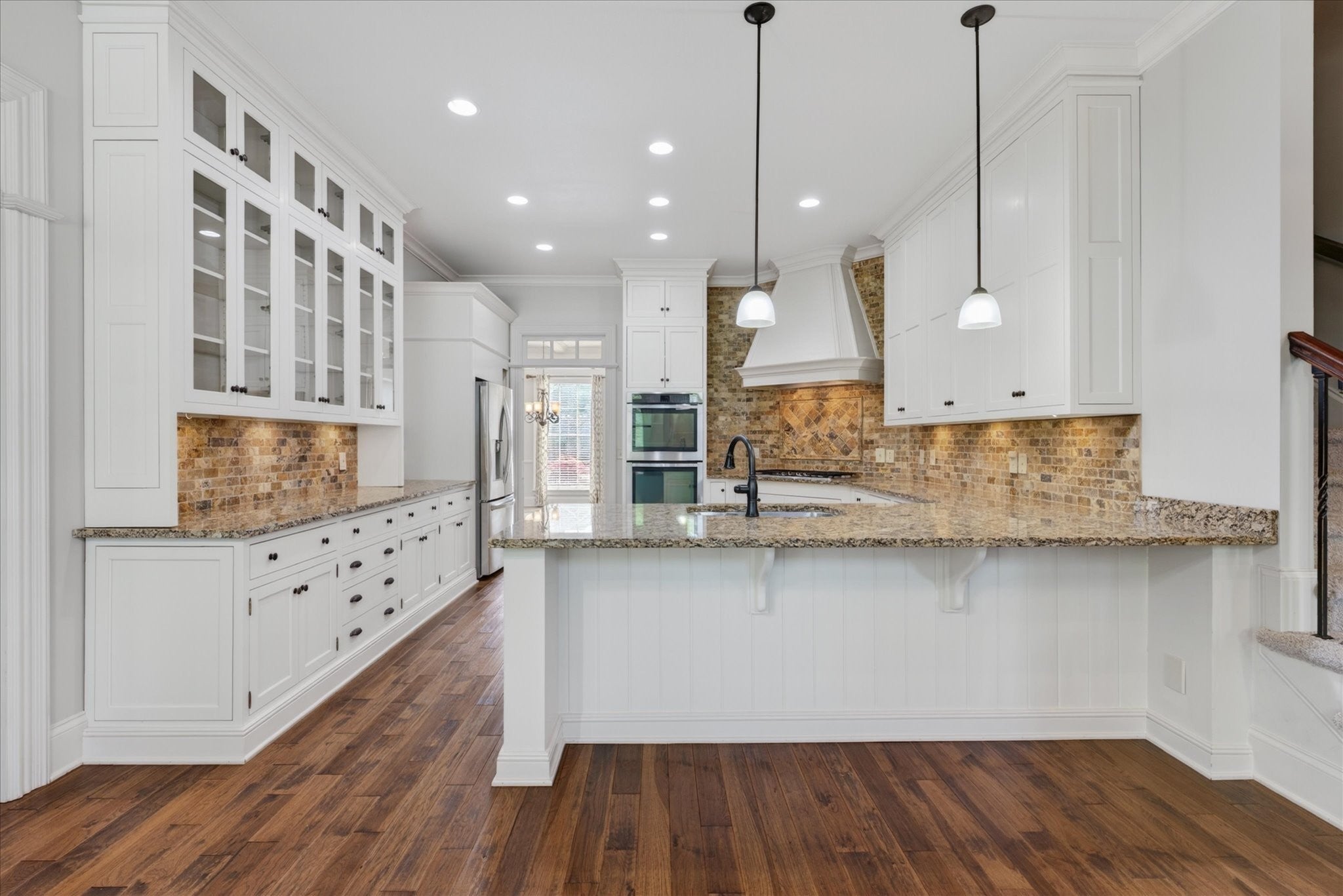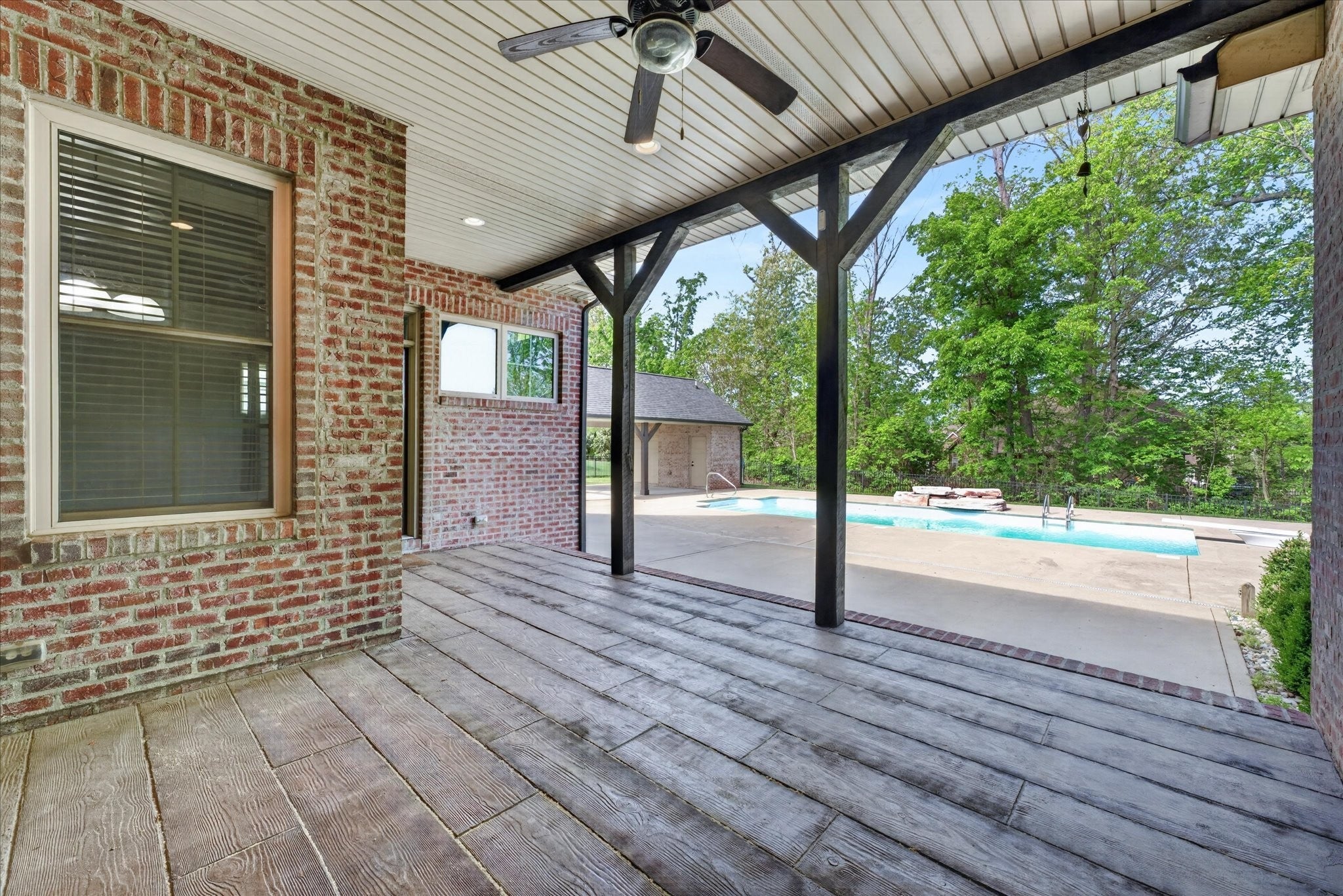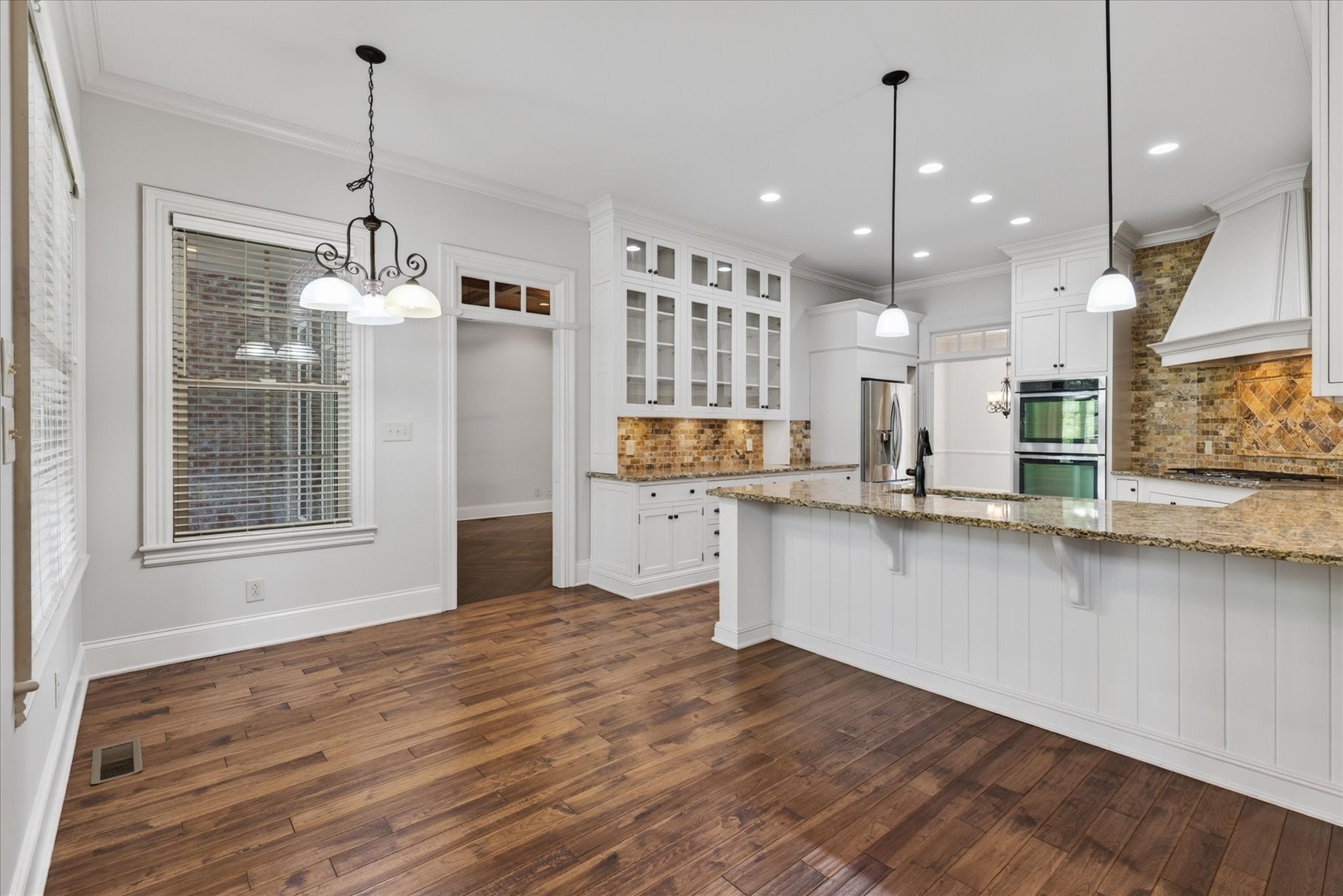 Stunning four bedroom, four and a half bath home in a prime location just minutes from all the conveniences of Madison Street! This beautifully maintained home features a three car garage, fresh paint, and all new carpet throughout. You’re welcomed by a beautifully tiled entryway that leads into a formal living room with a coffered ceiling and gorgeous herringbone hardwood floors. The heart of the home includes new hardwood floors in the kitchen and family room, where you’ll find a show stopping space featuring a plank ceiling and a floor to ceiling gas fireplace with stone and shiplap, complete with a remote. The large eat in kitchen offers granite countertops, stainless steel appliances including a double oven, and plenty of cabinet space. The primary suite is a true retreat with a tray shiplap ceiling, a spacious en suite featuring a double vanity, corner tub, walk in tiled shower, and an oversized walk in closet. All guest bedrooms are generously sized, and the second level includes a versatile bonus room with a door, closet, and full bath, perfect for a fifth bedroom, as well as two additional office spaces. The outdoor space is just as impressive, with a covered patio, beautifully maintained in ground fiberglass pool, and a pool house with covered cabana, half bath, and large storage area. The hot tub conveys, and the fully fenced backyard makes this the perfect space for relaxing or entertaining!