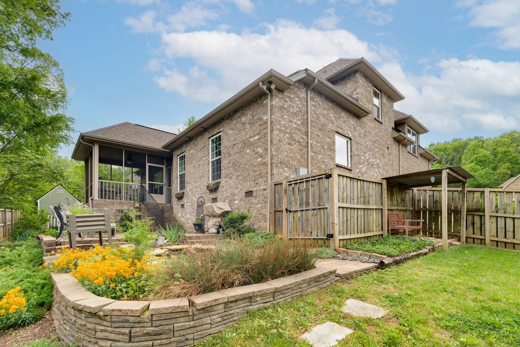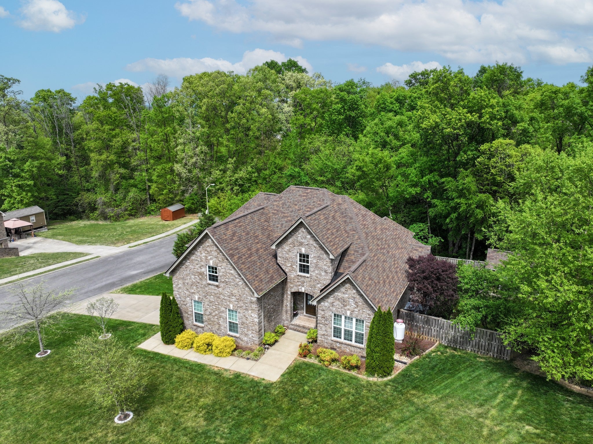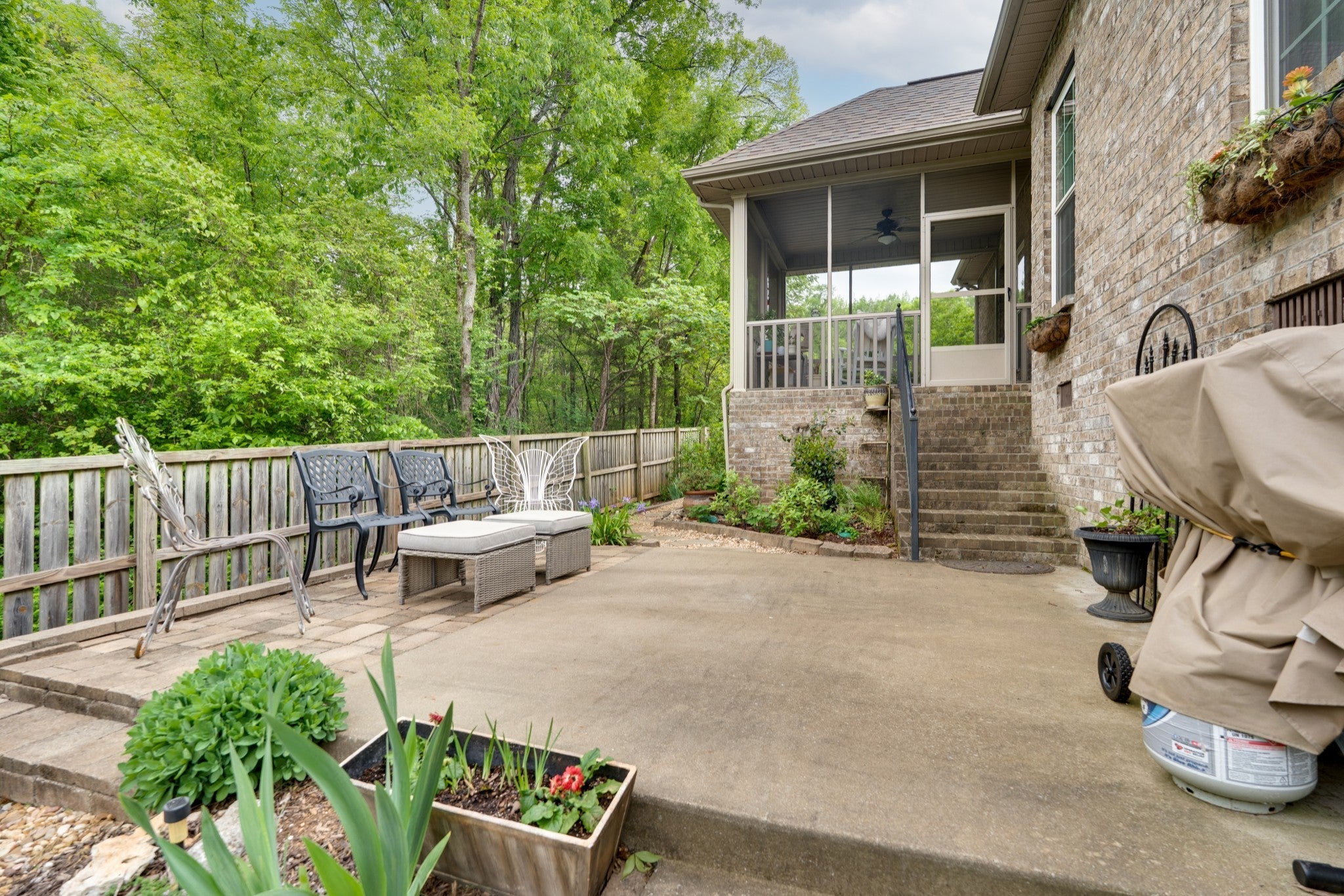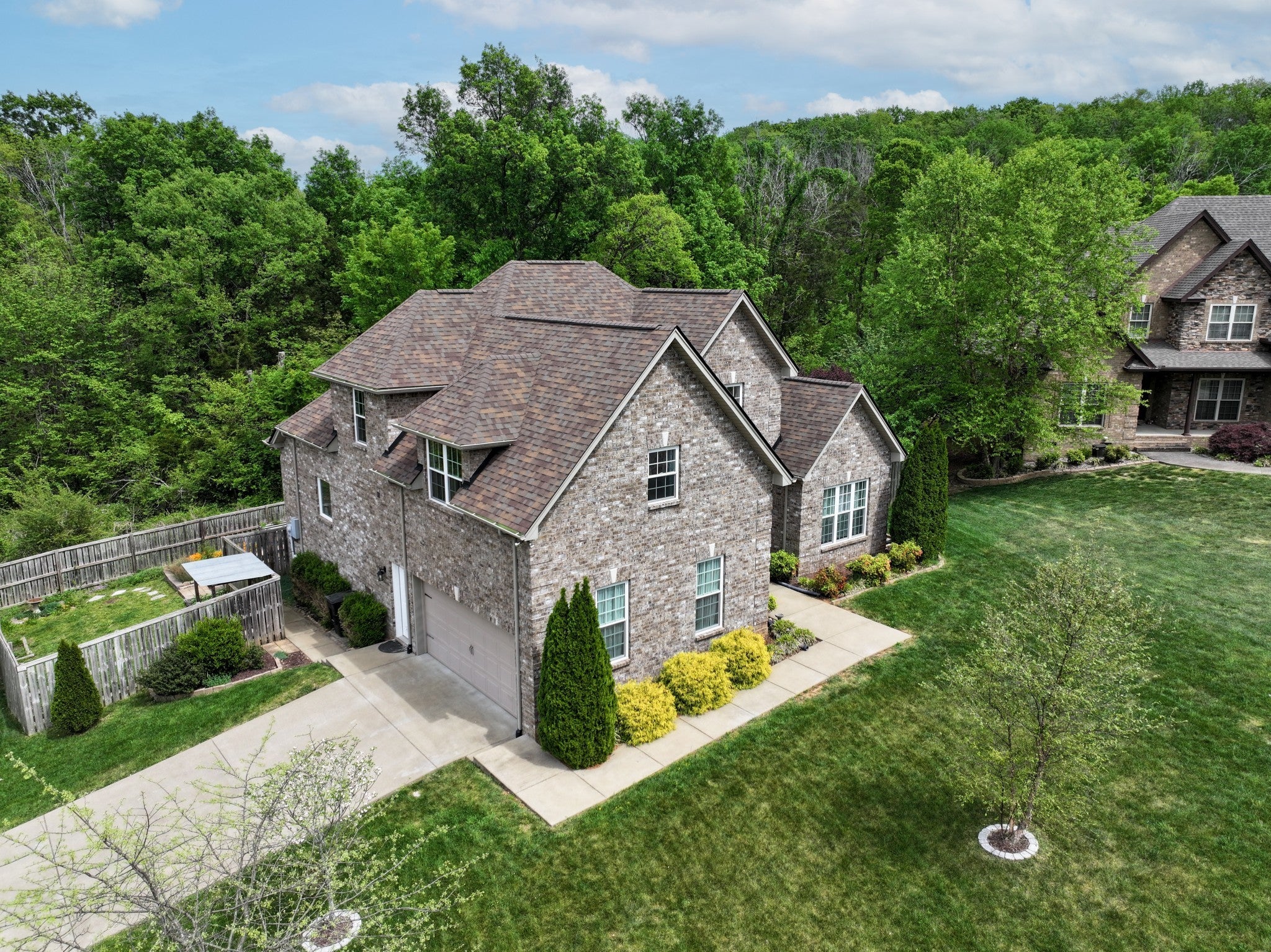 Beautifully positioned on a corner lot in a quiet cul-de-sac within the desirable Chestnut Hill neighborhood, this home backs up to a serene 16-acre tree-lined property, offering both privacy and picturesque views. Step outside to your own private garden oasis, perfectly enjoyed from the screened-in back porch, with expansive patio space ideal for entertaining or relaxing gatherings. Inside, the open-concept floor plan is warm and inviting, featuring a cozy fireplace—perfect for unwinding with a good book. The main-level primary suite offers convenience and comfort, complete with an en suite bath featuring a large soaking tub and oversized shower. The kitchen is designed for both function and style, boasting abundant counter space, a large pantry, additional under-stair storage, and new high-end Forno gas range, refrigerator, and range hood—ideal for everyday living and entertaining alike. Upstairs, you’ll find two spacious bedrooms along with a generous bonus/flex space currently being used as a fourth bedroom. The upstairs bathroom has been recently updated with a beautifully tiled, floor-to-ceiling oversized shower. Additional highlights include a one-year-old roof and a prime location just minutes from shopping, dining, and I-24 for an easy commute. This home combines comfort, space, and charm—don’t miss your opportunity to make it yours!