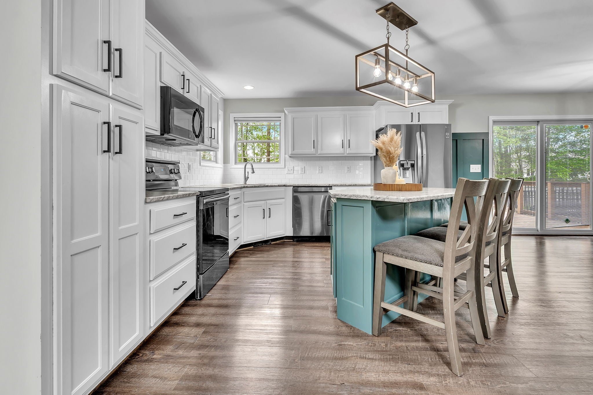 - Built-In Electric Oven, Dishwasher, Disposal, Ice Maker, Microwave, Refrigerator, Stainless Steel Appliance(s)