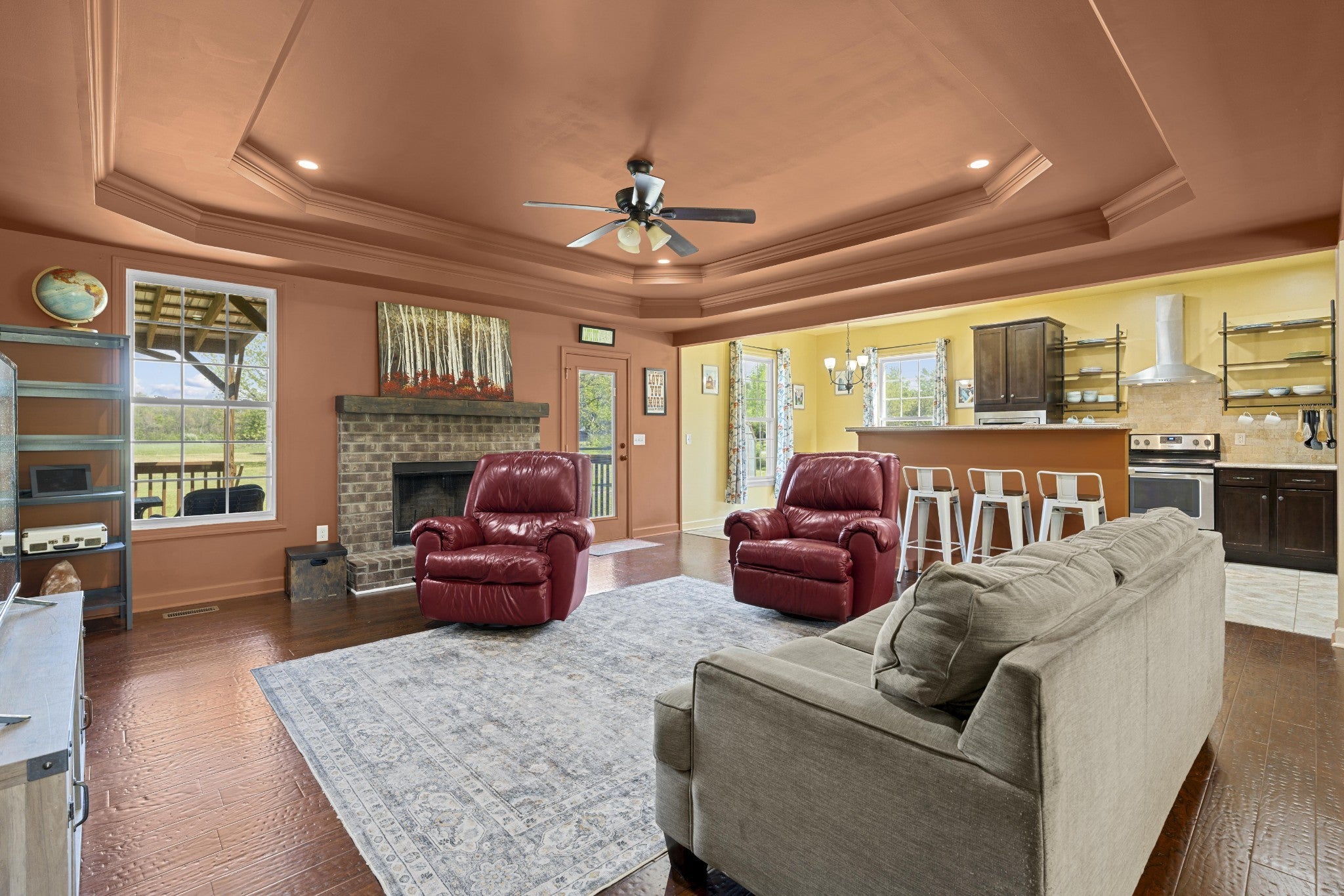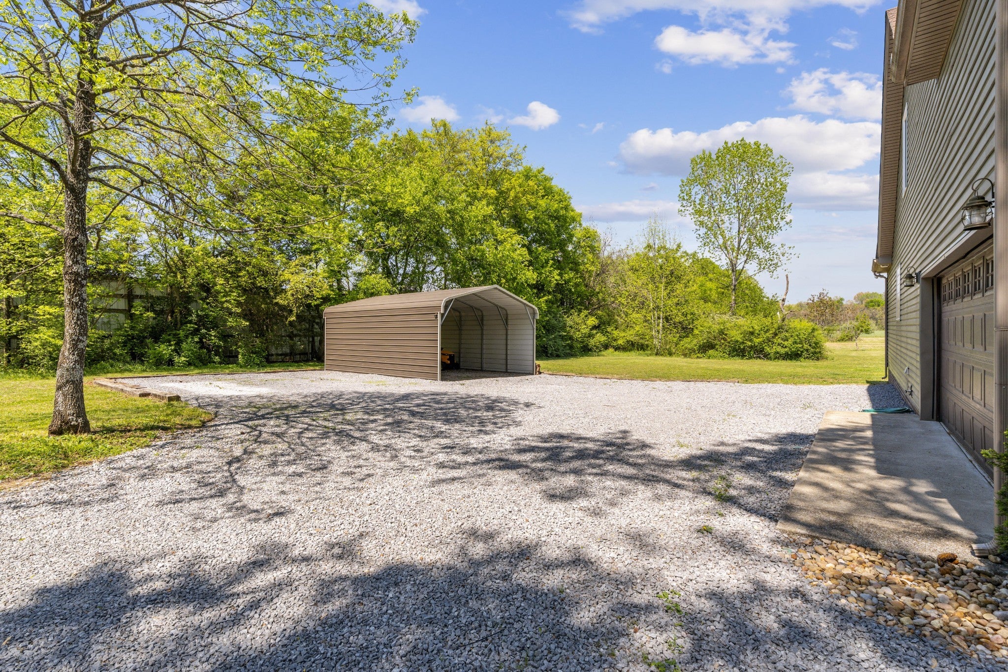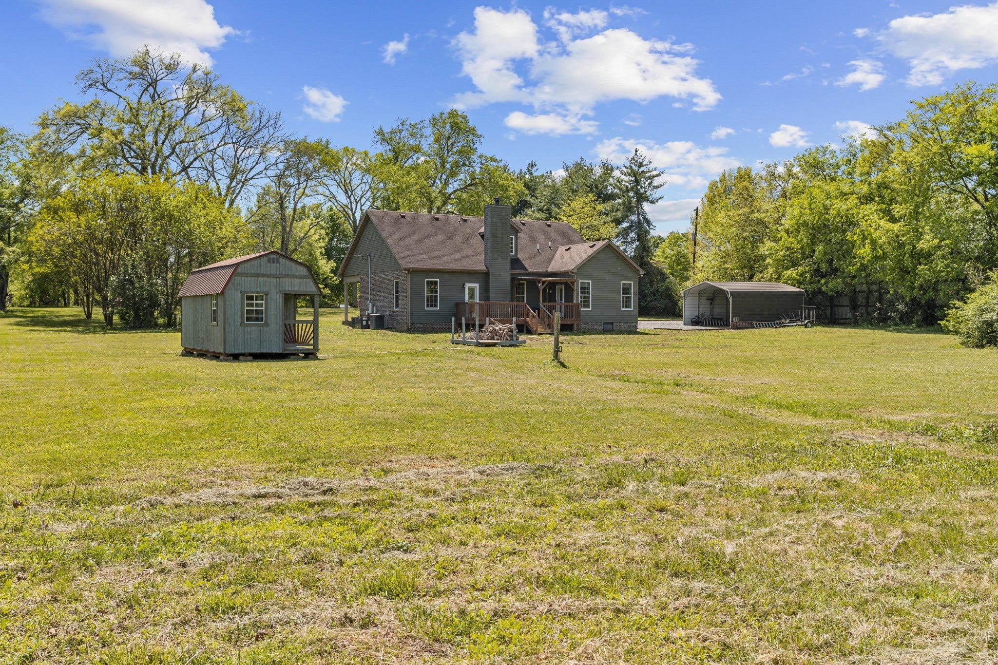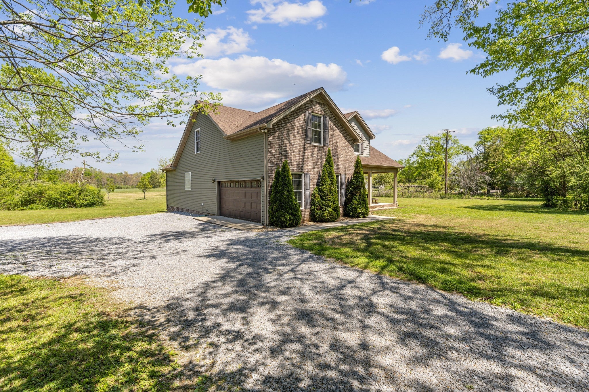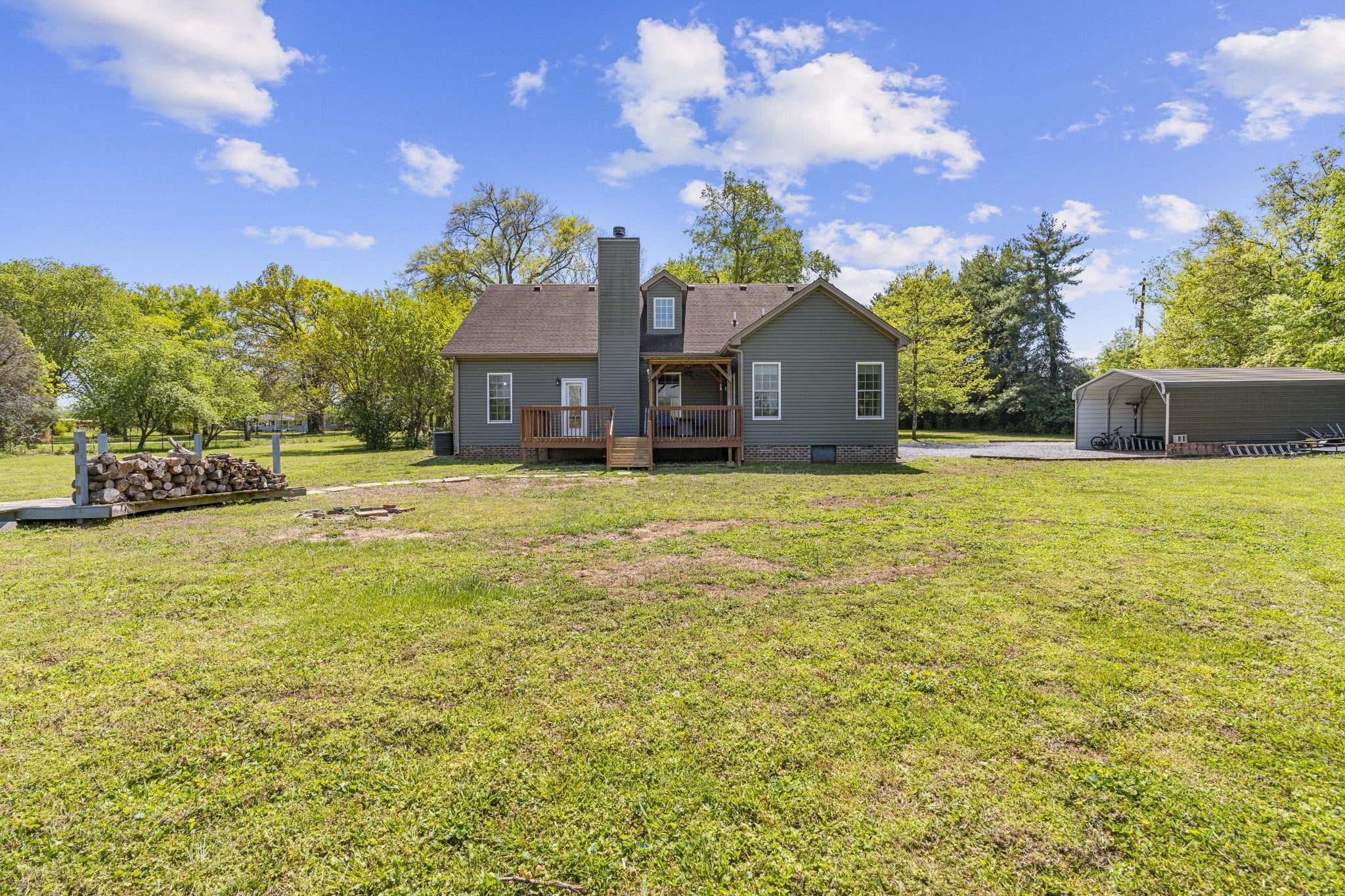 First time ever offered to the market, this one-owner home sits on over 5 private acres in the heart of La Vergne, a rare opportunity where space, privacy, and convenience rarely meet. Built in 2016, this 4-bedroom, 2.5-bath home features an open-concept layout with hardwood floors flowing through the main living areas, anchored by a wood-burning fireplace. The kitchen is designed for both everyday living and entertaining, offering stainless steel appliances, vent hood, tile backsplash, pantry, eat-in area, and a separate formal dining space. The primary suite is located on the main level and includes a double vanity, soaking tub, and walk-in shower with dual shower heads. Upstairs offers three additional bedrooms, a full bath, and a versatile bonus room. Enjoy the outdoors from the covered front porch or back deck overlooking mature trees and open space. The property also includes a large gravel parking area and carport, ideal for multiple vehicles, equipment, or recreational use. Opportunities like this are rare, over 5 acres in La Vergne with a newer build, privacy, and room to grow.