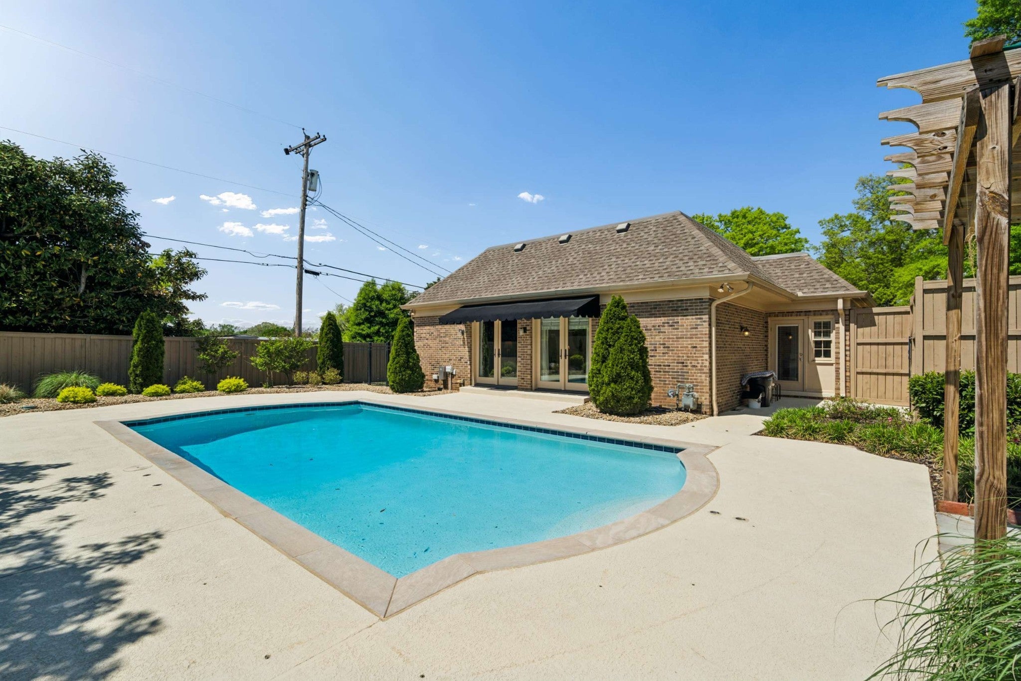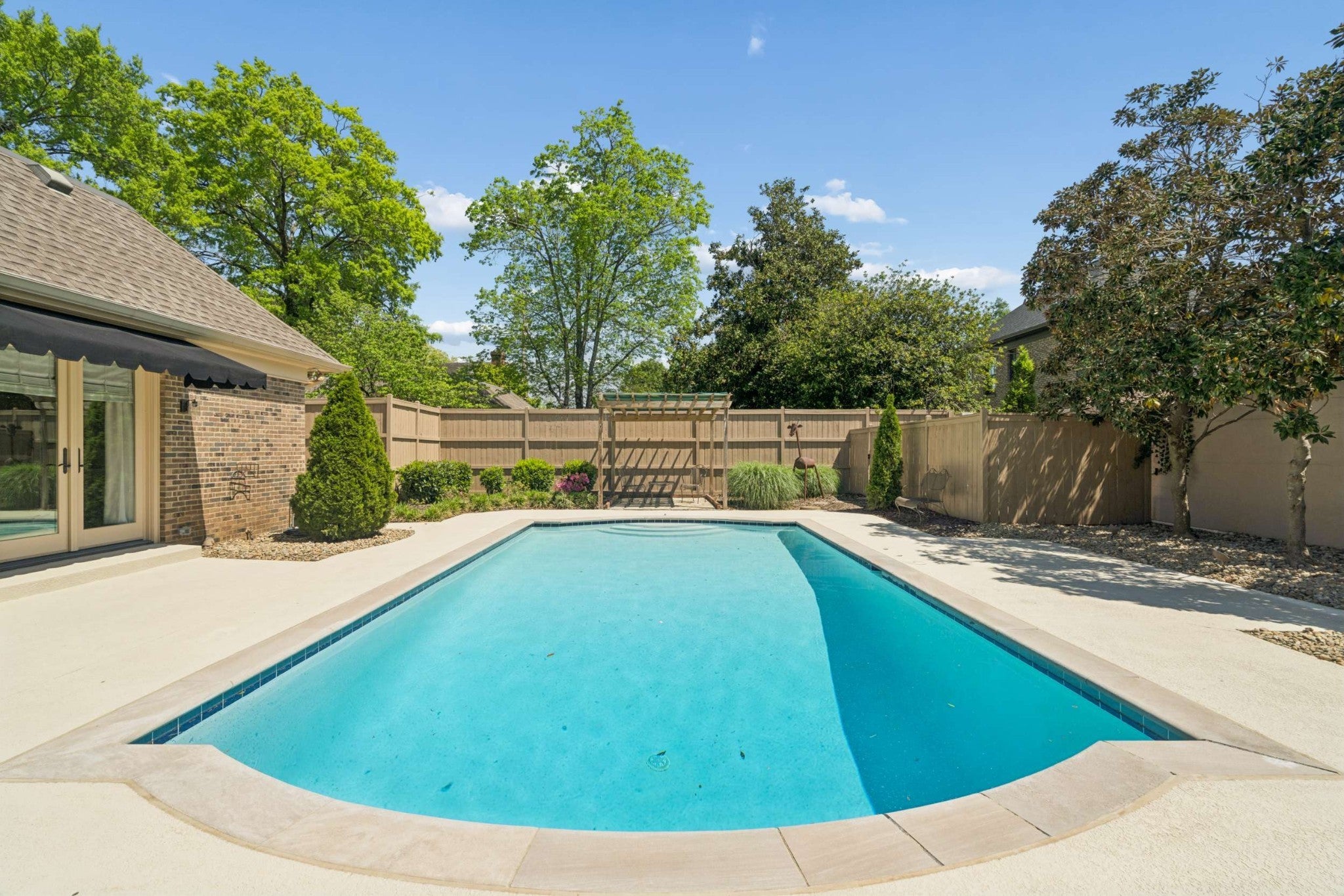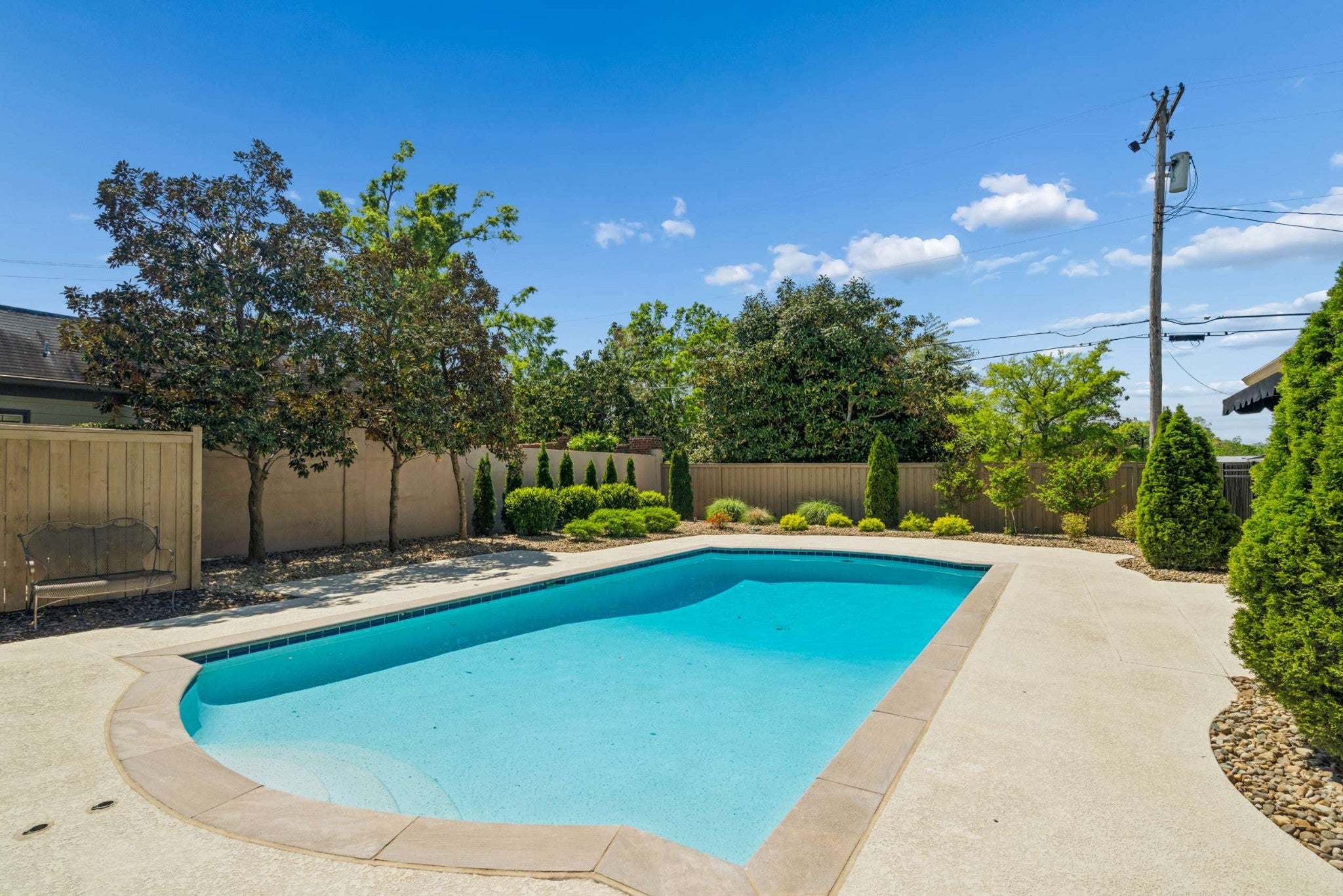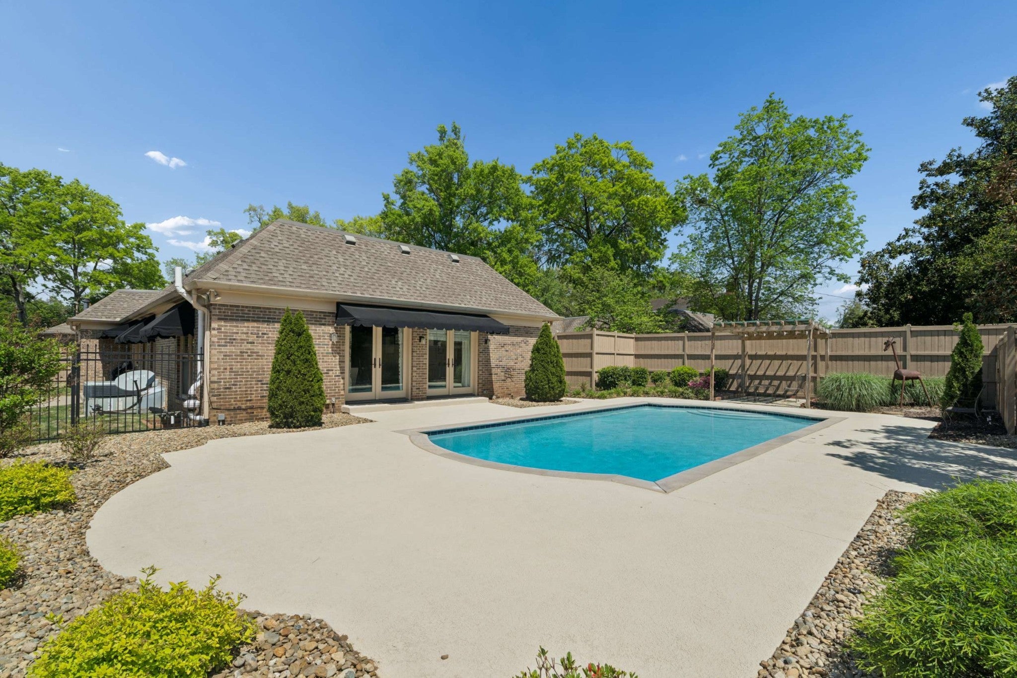 Easy ONE LEVEL living* What a beautiful home! Freshly painted Great room with skylights & fireplace* Splash into your own saltwater POOL* New pool cover in 2025* Check out the privacy fenced YARD! Irrigation* Large main bedroom + updated bathroom* Separate shower, soaking tub, double vanity + skylight & door to the pool* TWO CAR ATTACHED GARAGE* Sidewalks to the Mall, Hill Center, the Y, Whole Foods & Krogers! Well-equipped granite kitchen includes LG 5-eye gas stove~Fall of 2025, Whirlpool dishwasher, & Whirlpool refrigerator~2026* Tankless water heater~Spring 2026* Generator~ 2026* New roof~ 2020* 2 steps into this home*