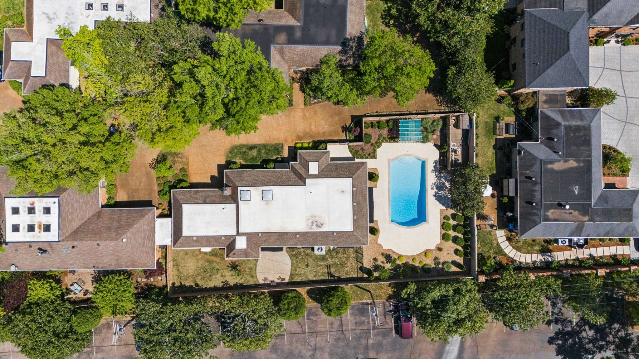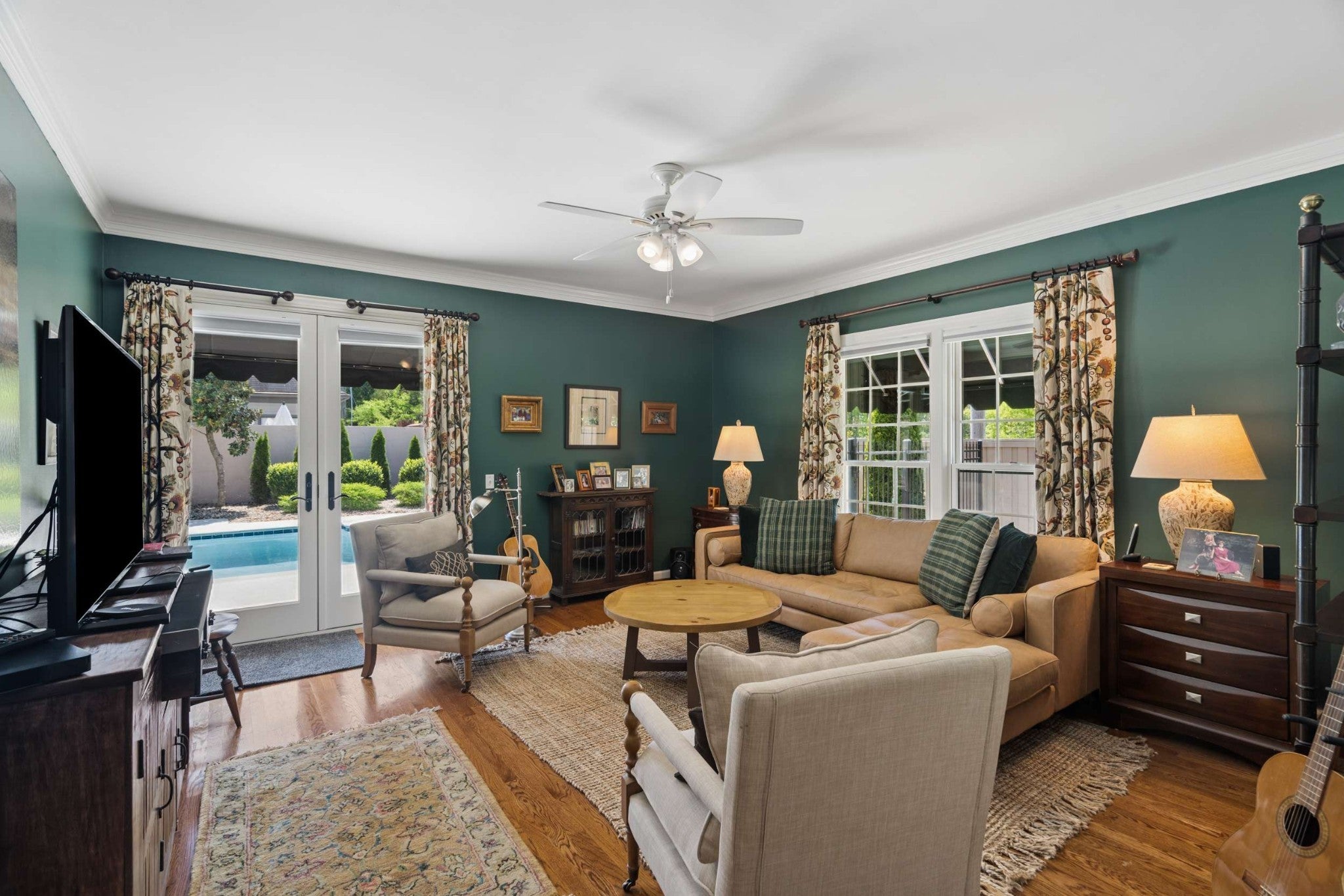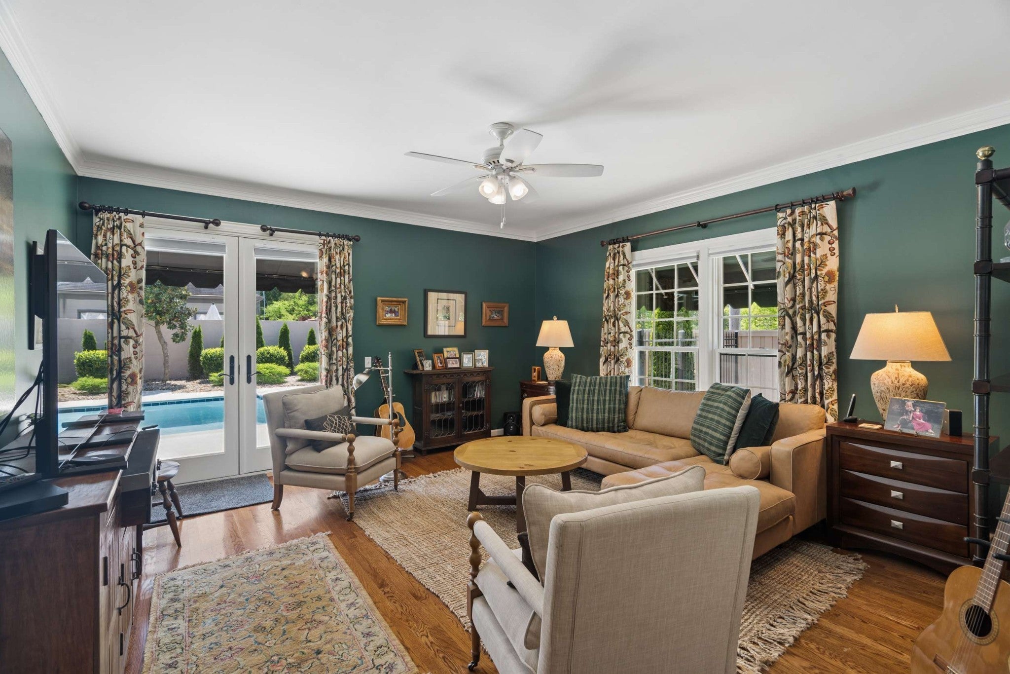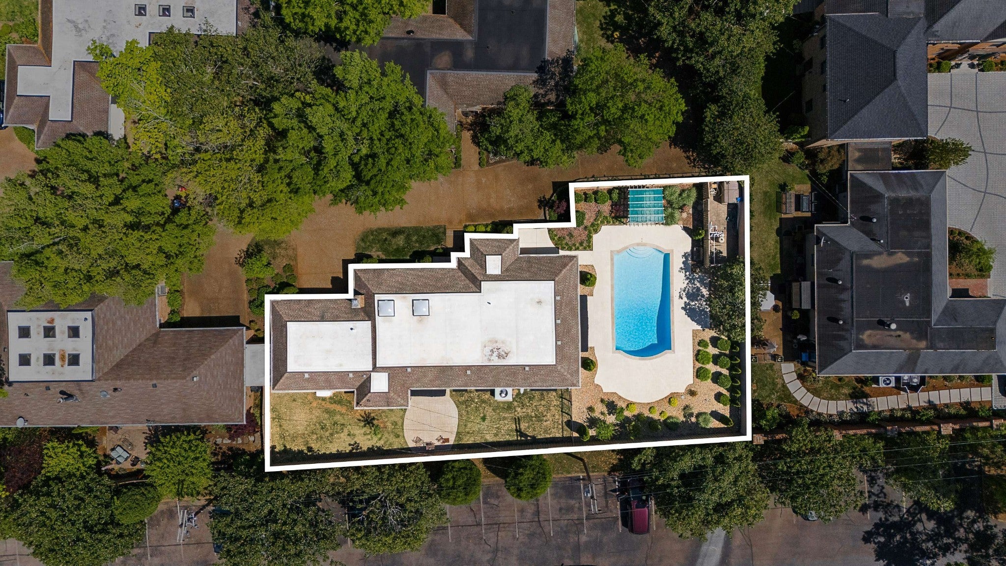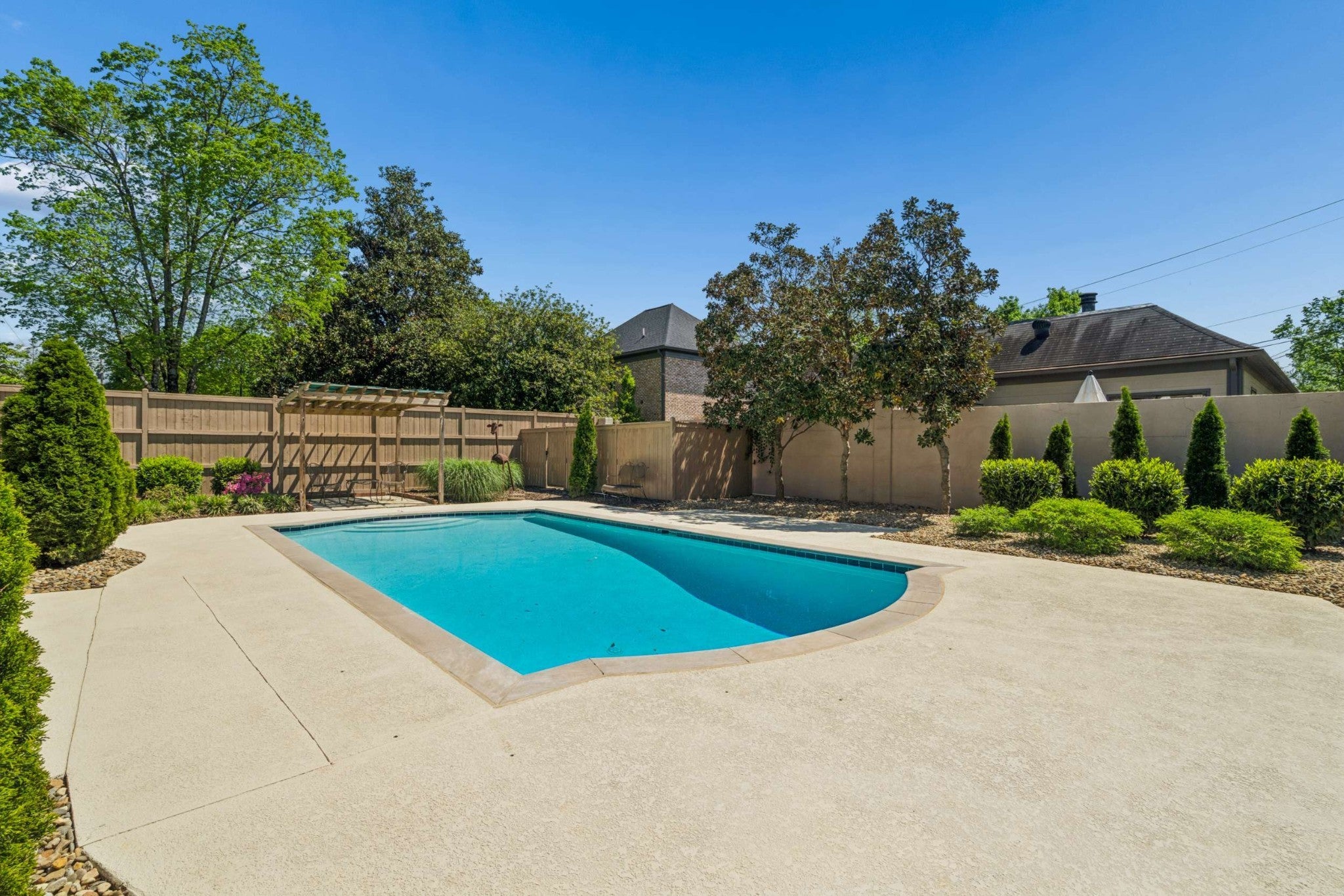 Easy ONE LEVEL living* What a beautiful home! Freshly painted Great room with skylights & fireplace* Splash into your own saltwater POOL* New pool cover in 2025* Check out the privacy fenced YARD! Irrigation* Large main bedroom + updated bathroom* Separate shower, soaking tub, double vanity + skylight & door to the pool* TWO CAR ATTACHED GARAGE* Sidewalks to the Mall, Hill Center, the Y, Whole Foods & Krogers! Well-equipped granite kitchen includes LG 5-eye gas stove~Fall of 2025, Whirlpool dishwasher, & Whirlpool refrigerator~2026* Tankless water heater~Spring 2026* Generator~ 2026* New roof~ 2020* 2 steps into this home*