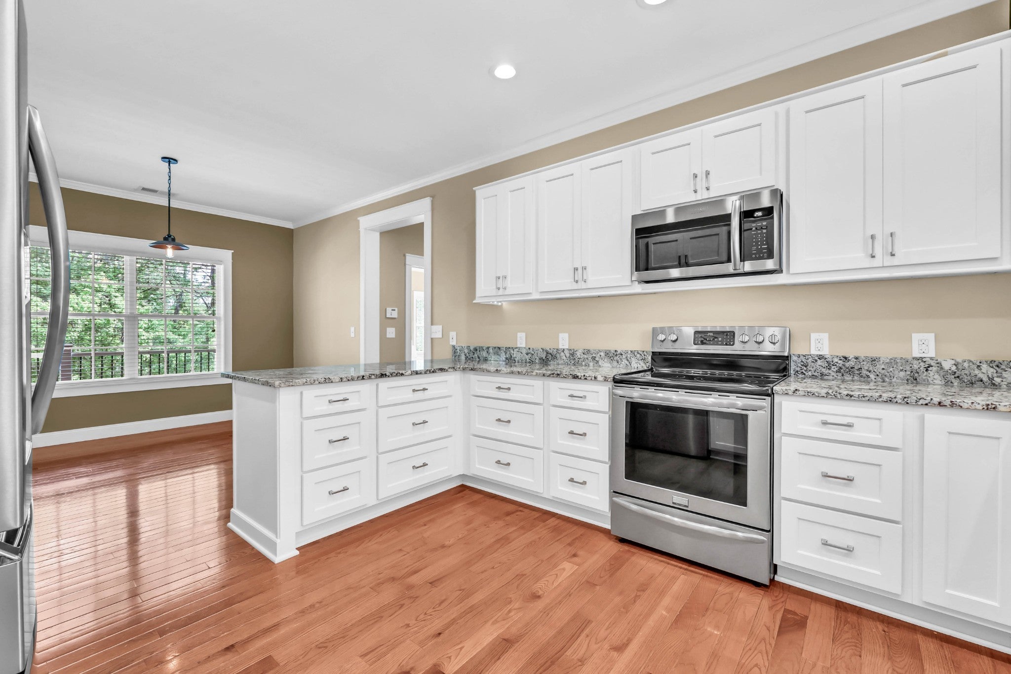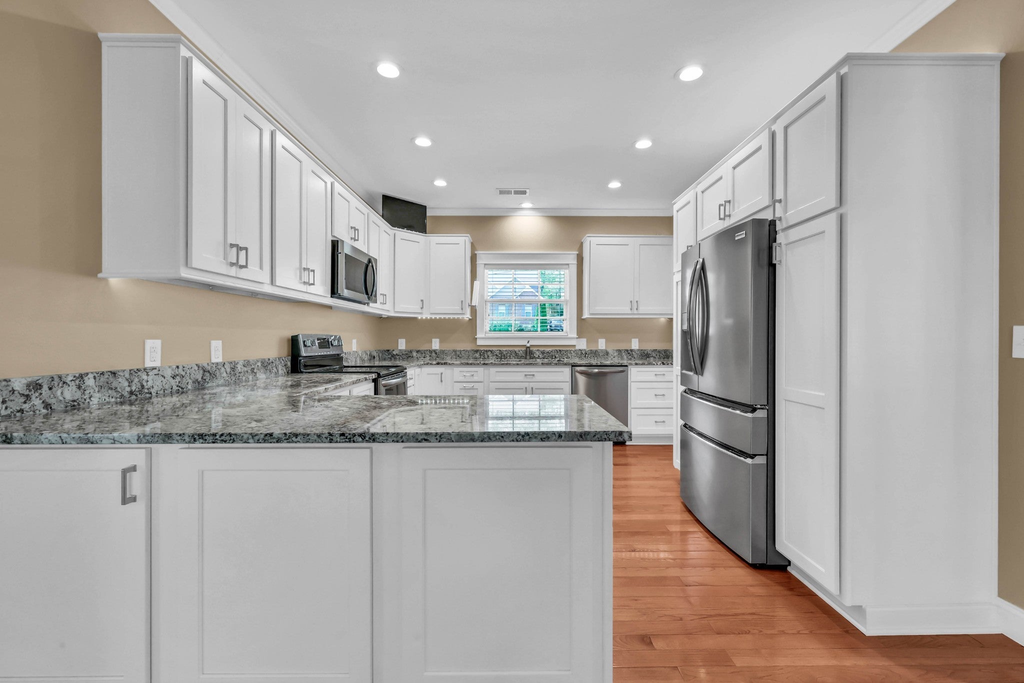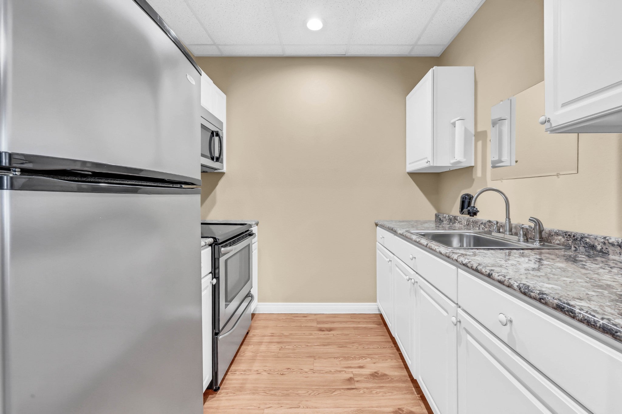 - Electric Range, Dishwasher, Microwave, Refrigerator, Stainless Steel Appliance(s)