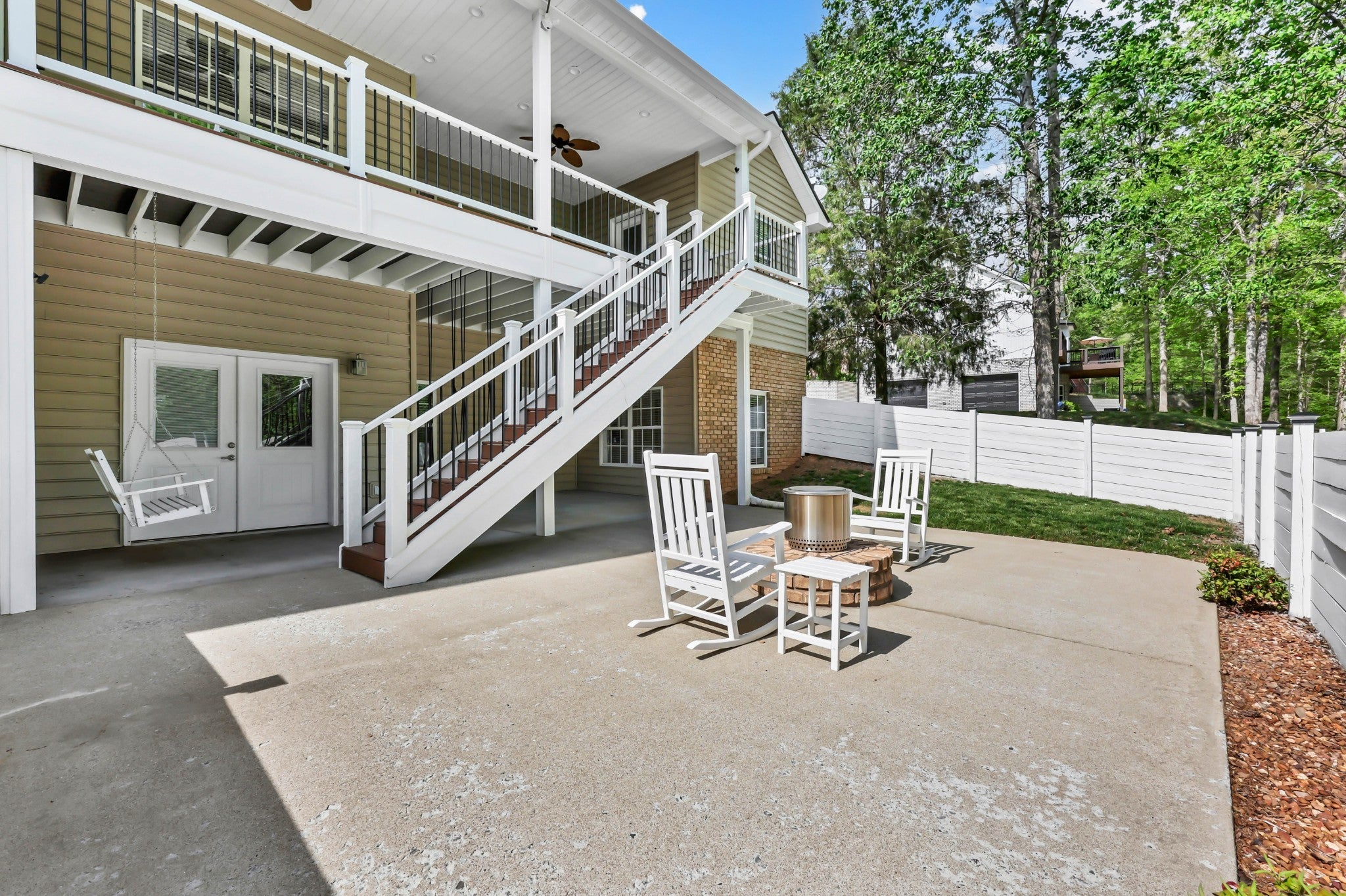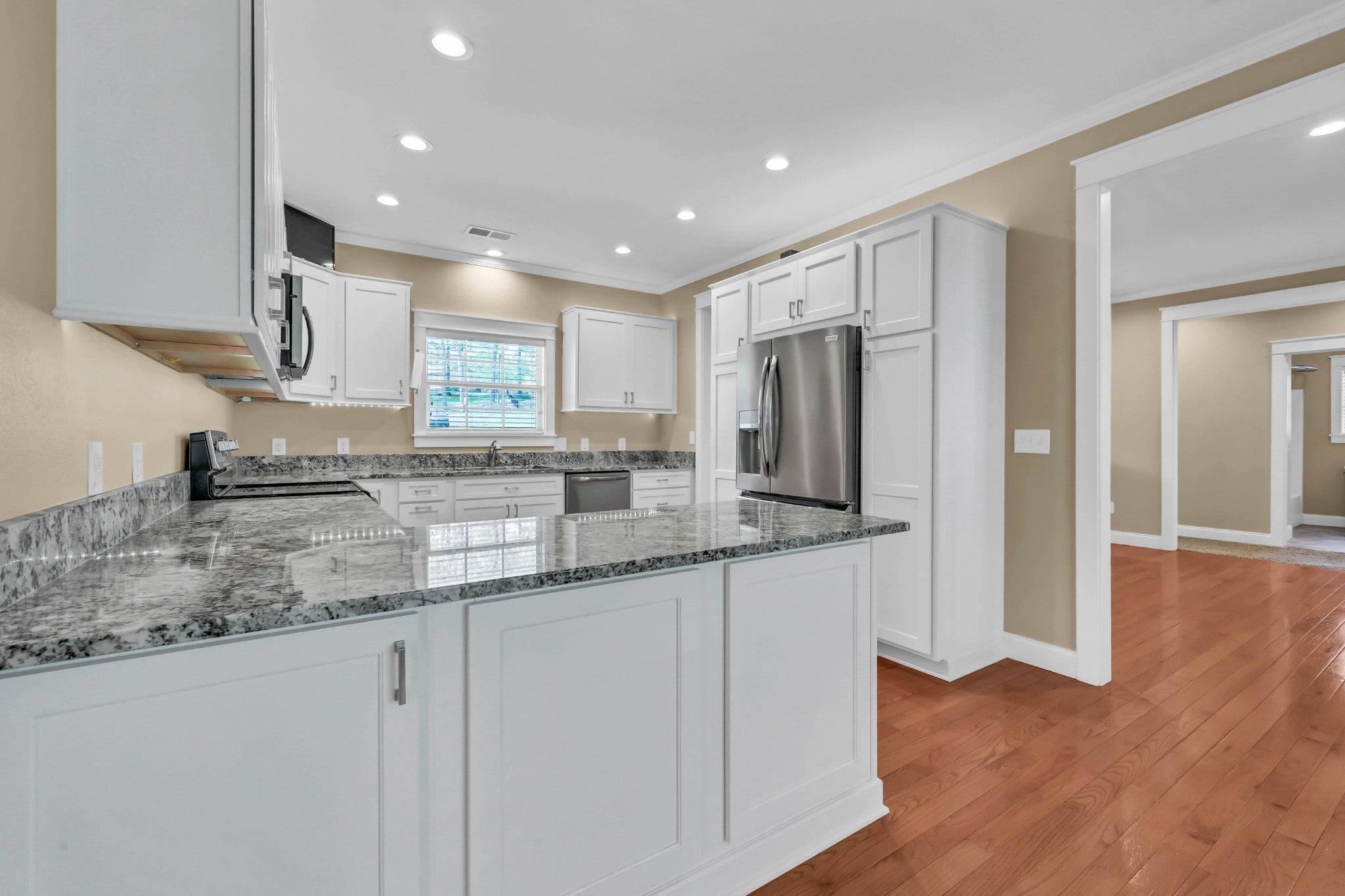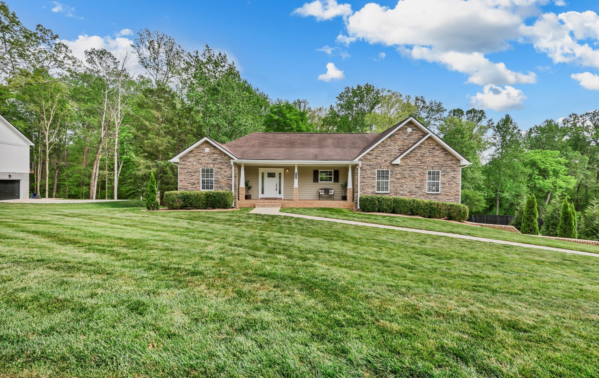 Tucked into the heart of Sango with no city taxes, this one brings space, function, and upgrades together in all the right ways. Hardwood flooring runs throughout the main living areas, complemented by a bright kitchen with stylish features including granite countertops, stainless steel appliances, white cabinetry, and abundant counter space for everyday living and entertaining alike. The primary suite offers a true retreat with a spacious layout, oversized walk-in closet, and a thoughtfully-designed bath complete with a soaking tub, tiled walk-in shower with bench, and dual vanities—including a dedicated seated prep area for added comfort and convenience. Secondary bedrooms offer comfortable space and flexibility, with one featuring custom built-in shelving. Downstairs, the finished basement expands your living space with a large den/bonus room, wet bar, full-size refrigerator, and 5.1 Dolby surround setup (TV remains), creating the perfect space for hosting or relaxing. A full mother-in-law suite adds incredible flexibility with its own living area and kitchen setup including range, microwave, and refrigerator, along with a 26x5 storm shelter/safe room. Outdoor living is just as impressive with a covered Trex deck, covered patio below, open patio with built-in firepit, and a partially fenced yard on a generous 3/4 acre lot. Additional features include a 3-car garage with epoxy floors, built-in shelving and storage that remain, a garage sink, and a recycling water heater for added efficiency. This is the kind of home that truly checks every box—space, versatility, and thoughtful upgrades in one of Sango’s most desirable locations.