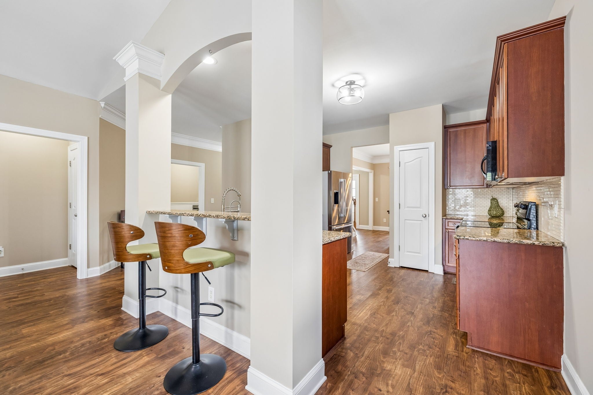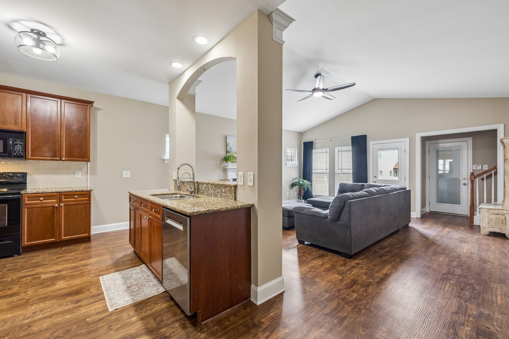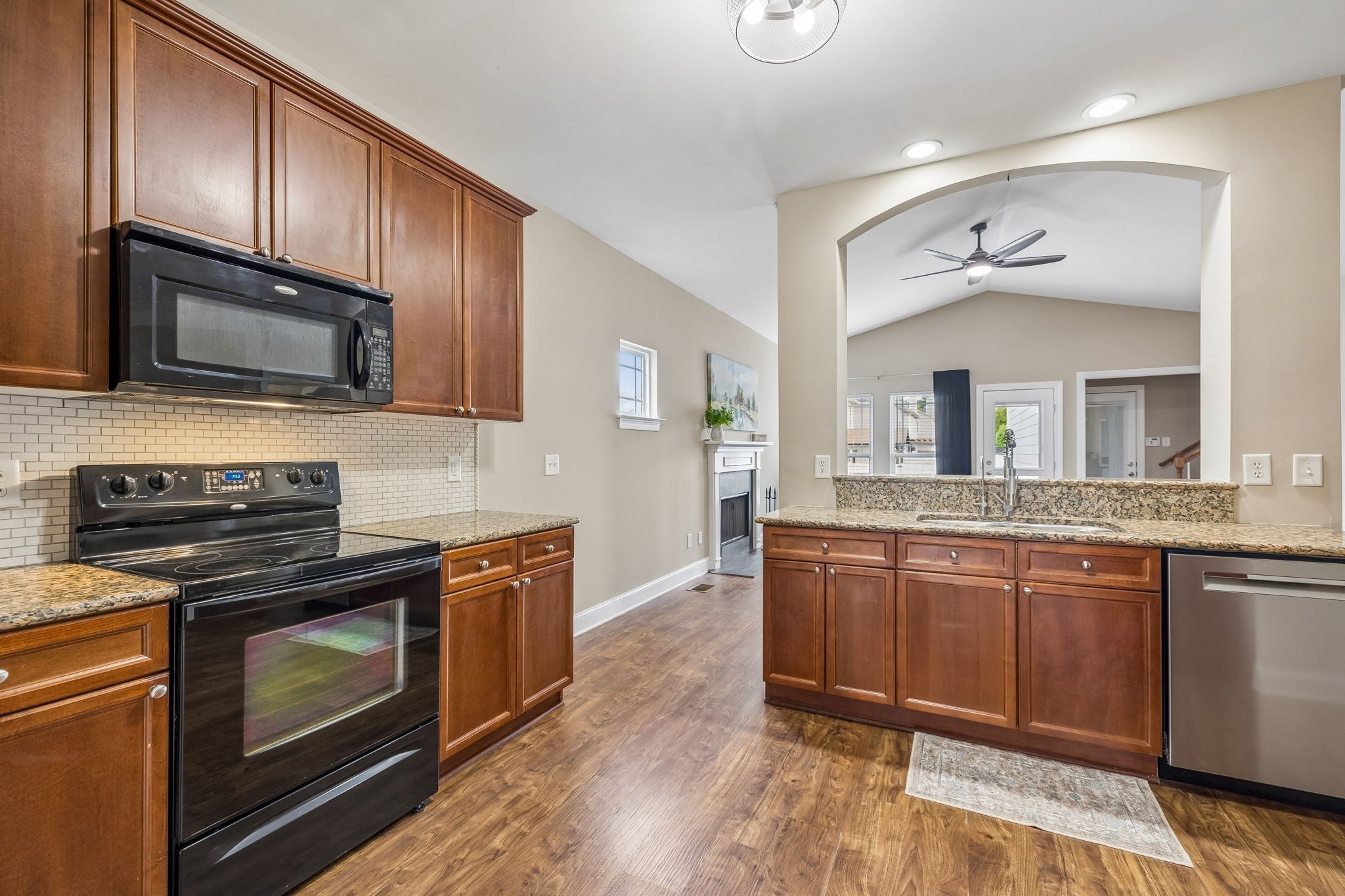 - Electric Range, Dishwasher, Disposal, Microwave