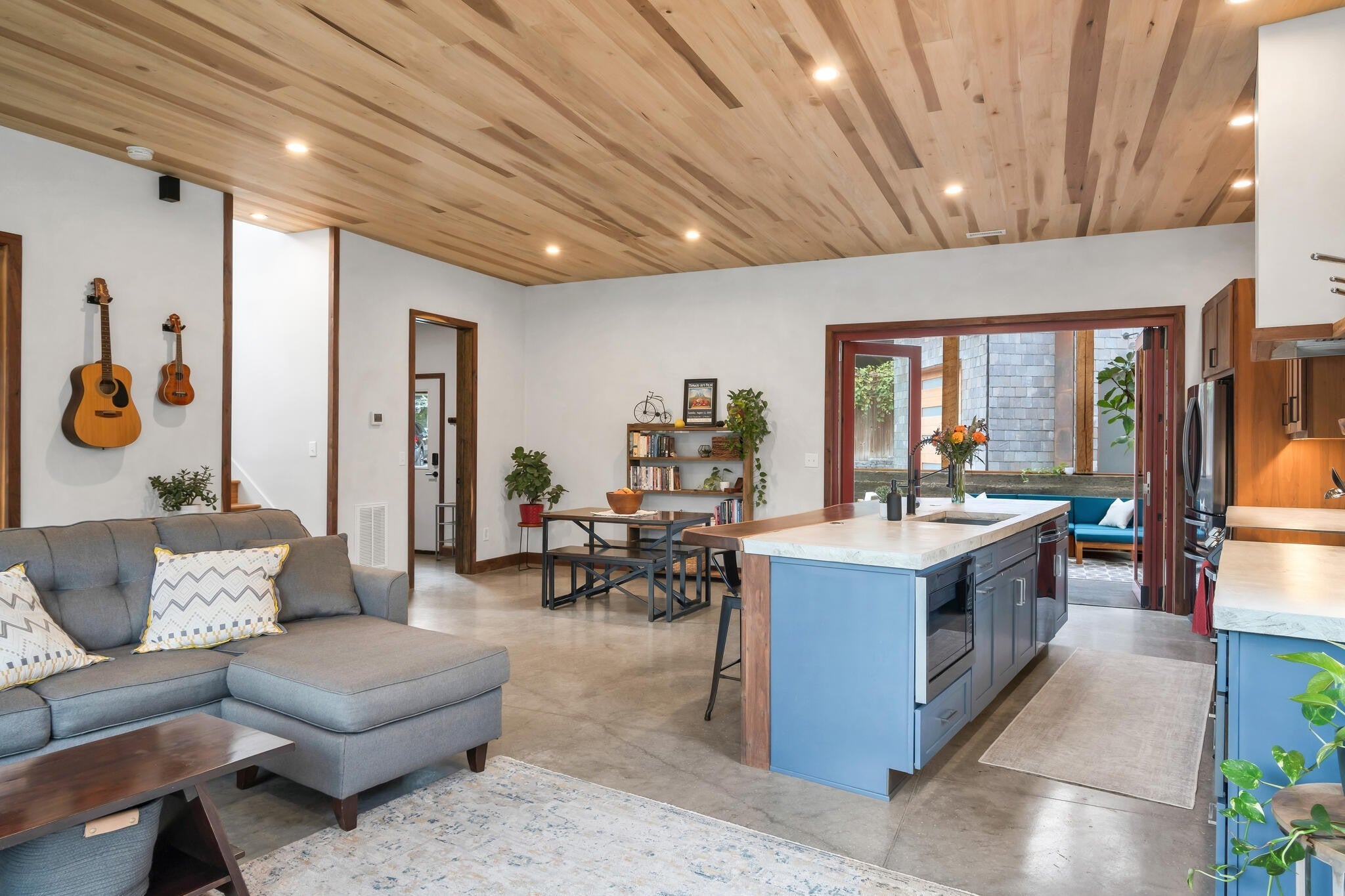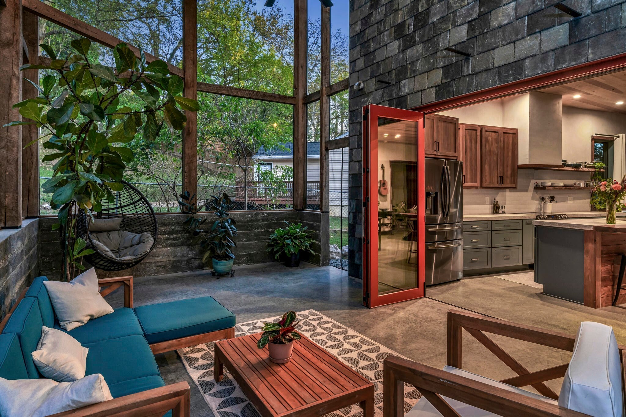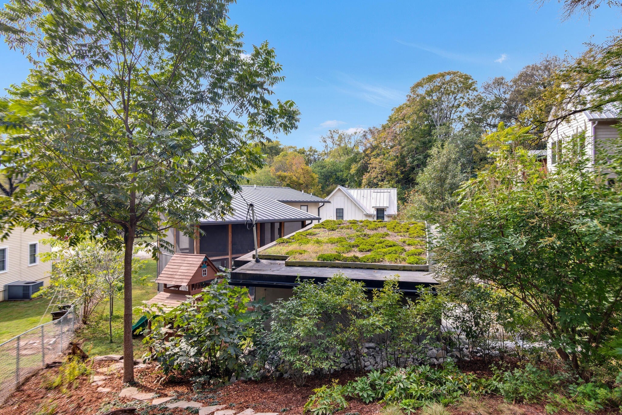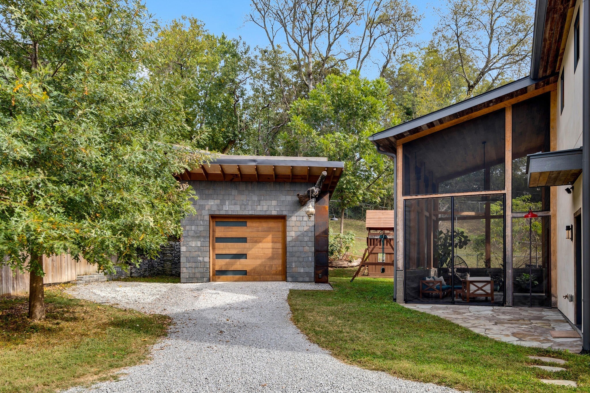 Ryan Nichols with Green Home, has been building exemplary, eco-friendly homes in Middle TN for the past few decades. Now his family is pursuing the next chapter of their life outside of Middle TN and his personal home is up for sale. Tucked into a quiet East Nashville cul-de-sac, this expertly designed, high-performance home blurs the line between indoors and out, anchored by a stunning double-height screened porch that becomes the heart of daily life. With the accordion glass doors open, the living space expands. Drenched in timber, slate, daylight and birdsong, it is perfect for morning coffee, evening reading, or hosting friends under ambient light and a soft breeze. Inside, warm natural materials and handcrafted details create a grounded, creative atmosphere. Custom walnut cabinetry, a live-edge bar, American clay plaster walls, and tuned lighting offer a tactile richness you immediately feel. The kitchen is built for both cooking and connection, featuring an induction range, generous prep space, and seamless flow into gathering areas. Upstairs, the serene primary suite captures soft morning light, complemented by a spa-like bath and organized walk-in closet. Two additional bedrooms and a full bath provide flexibility for family, guests, or a dedicated home office. Designed for sustainability and simplicity, the home incorporates passive solar principles, low/zero-VOC finishes, an efficient heat pump HVAC and water heater, and durable, low-maintenance materials. Native landscaping invites birds and seasonal wildlife, fostering a daily connection to nature. A detached, wired, plumbed, and insulated garage is DADU-eligible under BL2025-1007. Priority zoned for Lockeland Elementary and set within a close-knit, design-forward pocket of East Nashville—just moments from Shelby Park, the greenway, and local favorites—this home offers a rare balance of vibrancy and calm, enhanced by thoughtful acoustics. This is a home for those who agree “less, but better”.