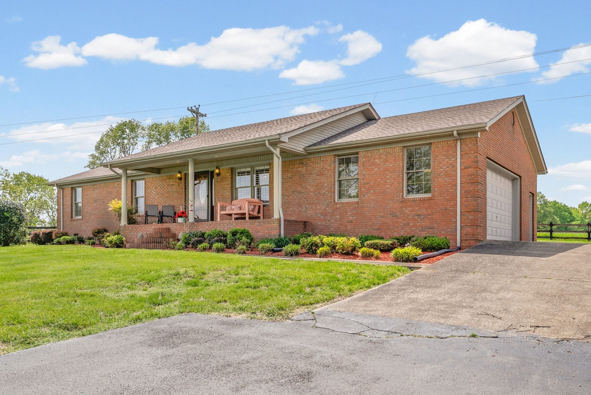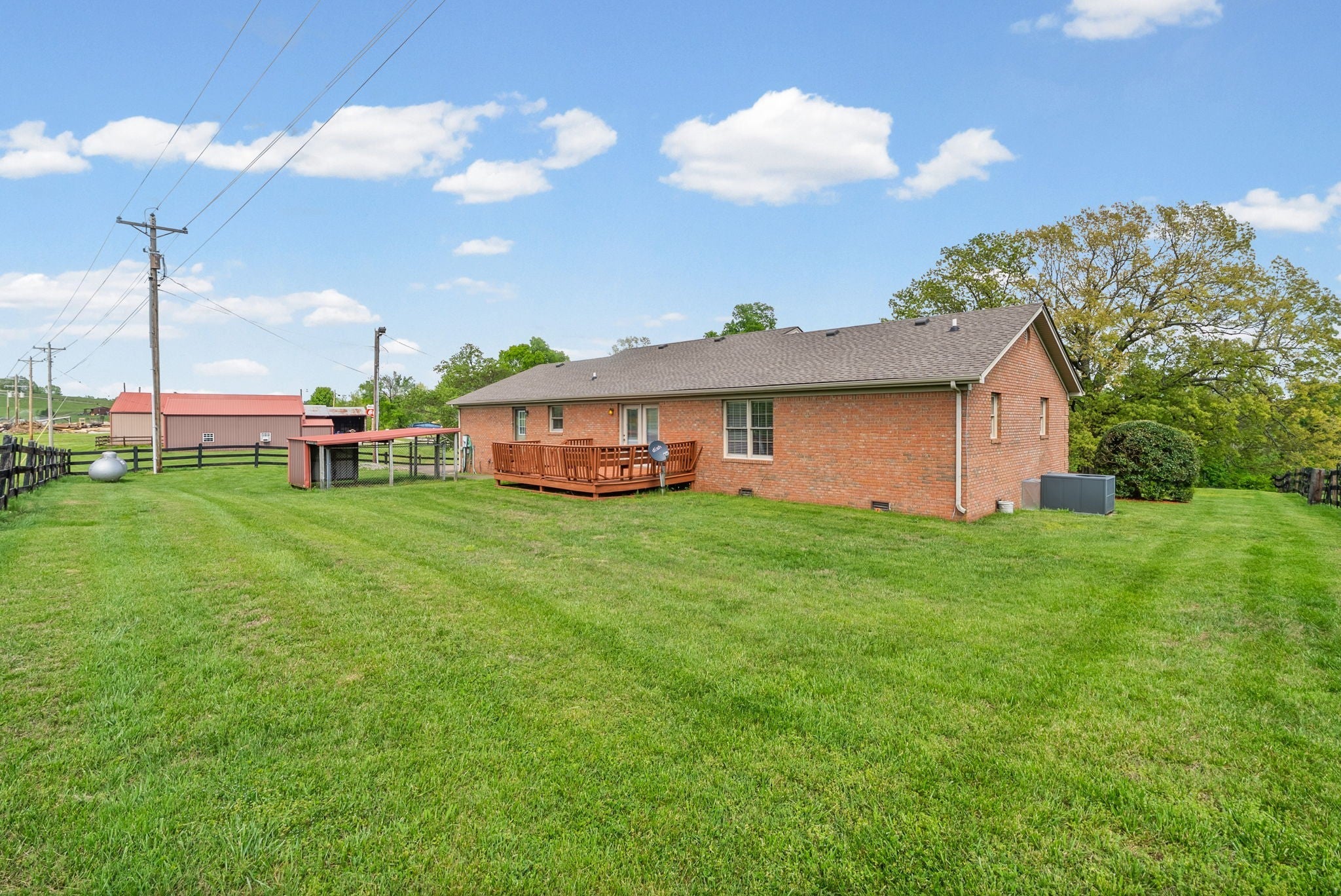 Experience country living at its finest on this beautiful 28‑acre farm featuring a well‑maintained 3 bed 2 bath 1,590 sq ft all‑brick home built in 1996. The property offers exceptional functionality for farming, horses, equipment storage, or homesteading. HVAC- 5 years old, water heater- 8 years old, roof-3 years old The home features an open floorplan, bar overlooking the living room, fireplace, dedicated laundry area, attached 2‑car garage, rear deck, and a covered dog pen. A 20×30 detached garage is fully finished and insulated—perfect for a workshop or additional storage. The paved driveway and updated landscaping add to the home’s curb appeal. The main tract includes 24 acres of pasture with three full gates, ideal for livestock or hay. Across the road, an additional 4‑acre partially fenced parcel includes horse fencing, a gated entrance, and a standing tobacco barn. Farm structures include a 50×60 multipurpose barn, a 4‑stall horse barn with tack room, a covered lean‑to for supplies, and a separate equipment lean‑to for tractors or implements. This property offers everything needed for a working farm or private retreat. A must‑see property with endless potential.