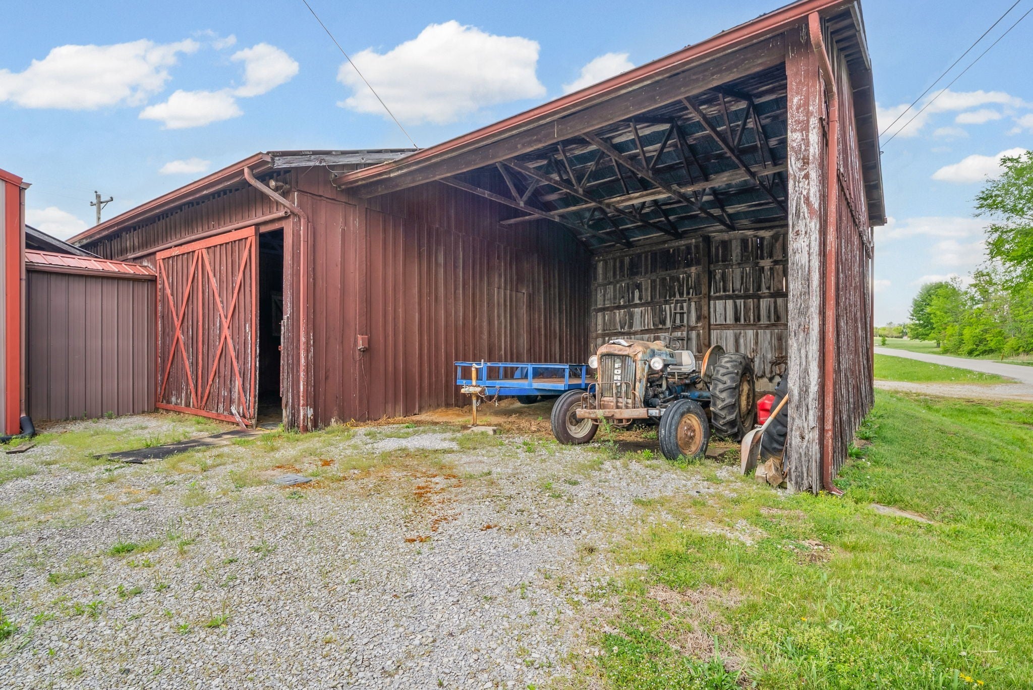 Experience country living at its finest on this beautiful 28‑acre farm featuring a well‑maintained 1,590 sq ft all‑brick home built in 1996. The property offers exceptional functionality for farming, horses, equipment storage, or homesteading. The home features an open floorplan, bar overlooking the living room, fireplace, dedicated laundry area, attached 2‑car garage, rear deck, and a covered dog pen. A 20×30 detached garage is fully finished and insulated—perfect for a workshop or additional storage. The paved driveway and updated landscaping add to the home’s curb appeal. The main tract includes 24 acres of pasture with three full gates, ideal for livestock or hay. Across the road, an additional 4‑acre fenced parcel includes horse fencing, a gated entrance, and a standing tobacco barn. Farm structures include a 50×60 multipurpose barn, a 4‑stall horse barn with tack room, a covered lean‑to for supplies, and a separate equipment lean‑to for tractors or implements. This property offers everything needed for a working farm or private retreat. HVAC- 5 years old, water heater- 8 years Roof-3 years A must‑see property with endless potential.