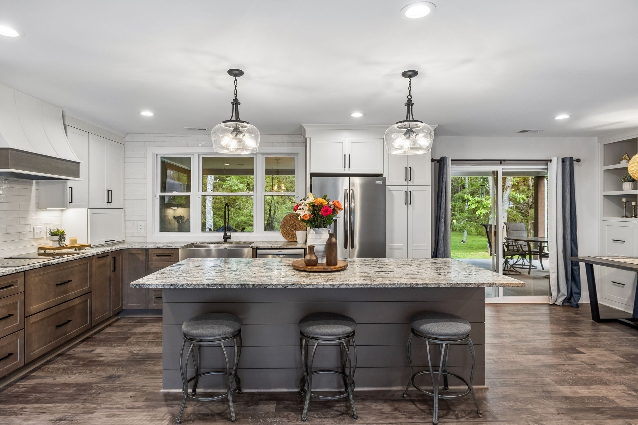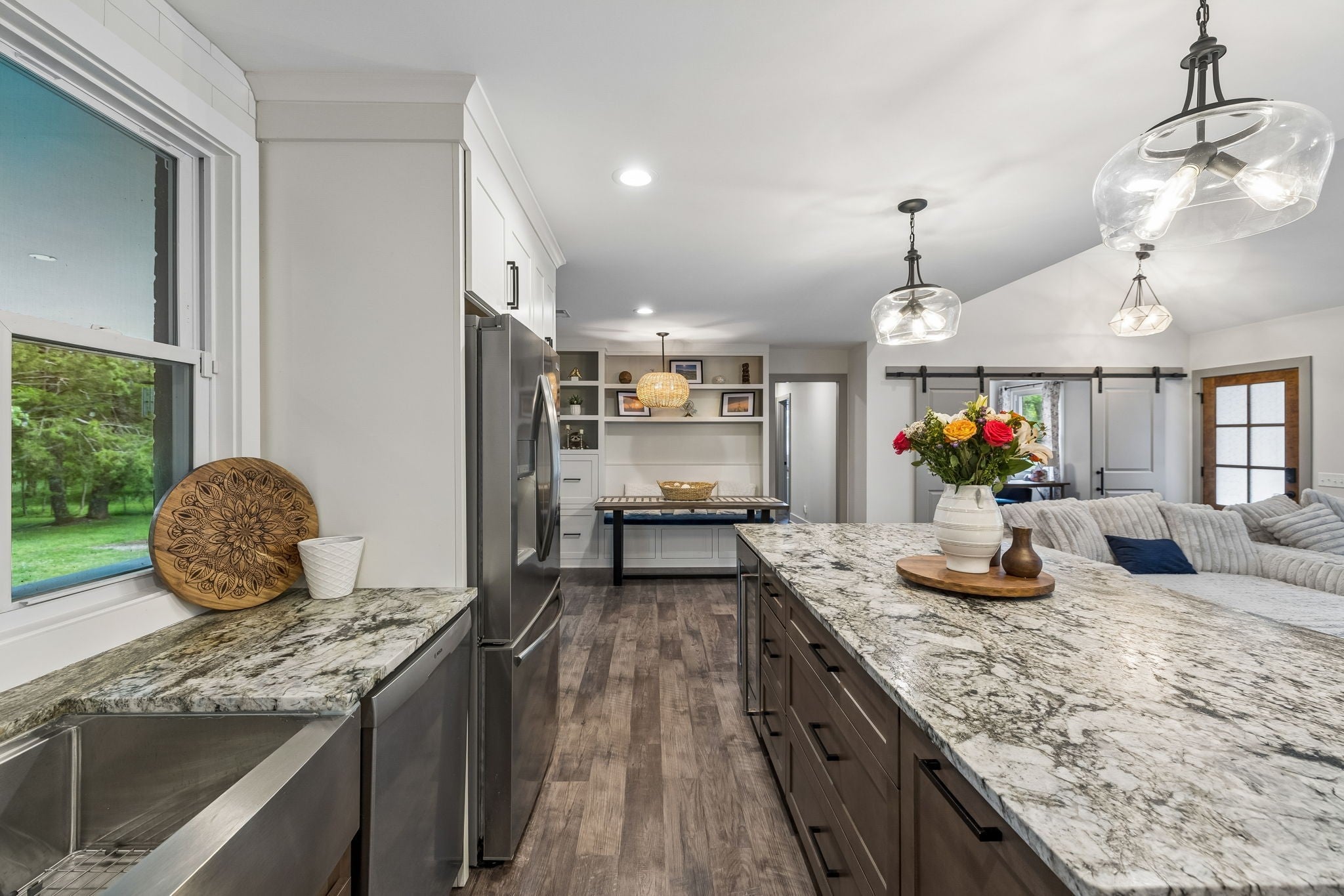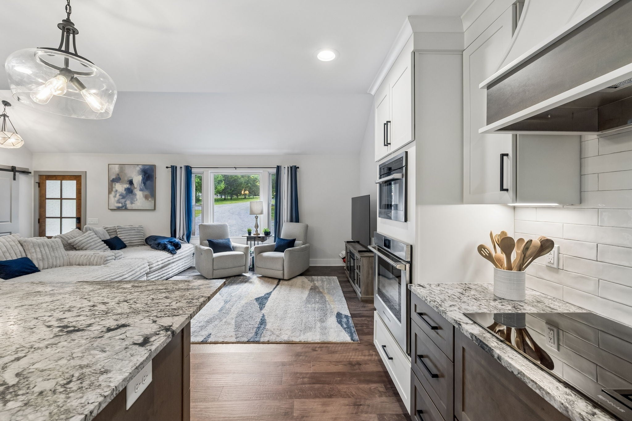 Builder’s personal home—completely reimagined and expanded—this one is in a league of its own. Taken down to the studs and doubled in size, this stunning renovation sits on a private 1.79-acre tree-lined lot in Mt. Juliet, offering the perfect blend of luxury, function, and space. Step inside to find beautiful luxury flooring throughout, fresh designer paint, and an open-concept layout that seamlessly connects the living room, dining area, and gourmet kitchen—ideal for entertaining. The kitchen is a true showpiece, featuring custom cabinetry, sleek granite countertops, a peg system for organization, custom vent hood, deep stainless farmhouse sink, wine fridge, built-in oven and range, built-in pantry, and thoughtfully designed finishes at every turn. The dining area also features custom built-ins for added style and functionality. All living is conveniently on one level, including a spacious primary suite complete with a soaking tub, custom tile shower, and heated tile floors—your own private retreat. The home is loaded with storage and custom built-ins throughout. 3 Bedrooms with office or 4 Bedroom. Enjoy peaceful views from the expansive covered porch that stretches across the entire back of the home, or relax by the fire pit in your private backyard oasis. Additional features include a full Generac generator system, built-in tornado shelter, and a setting that sits off the road for ultimate privacy. This is not just a home—it’s a showstopper. Don’t miss your opportunity to own something truly special.