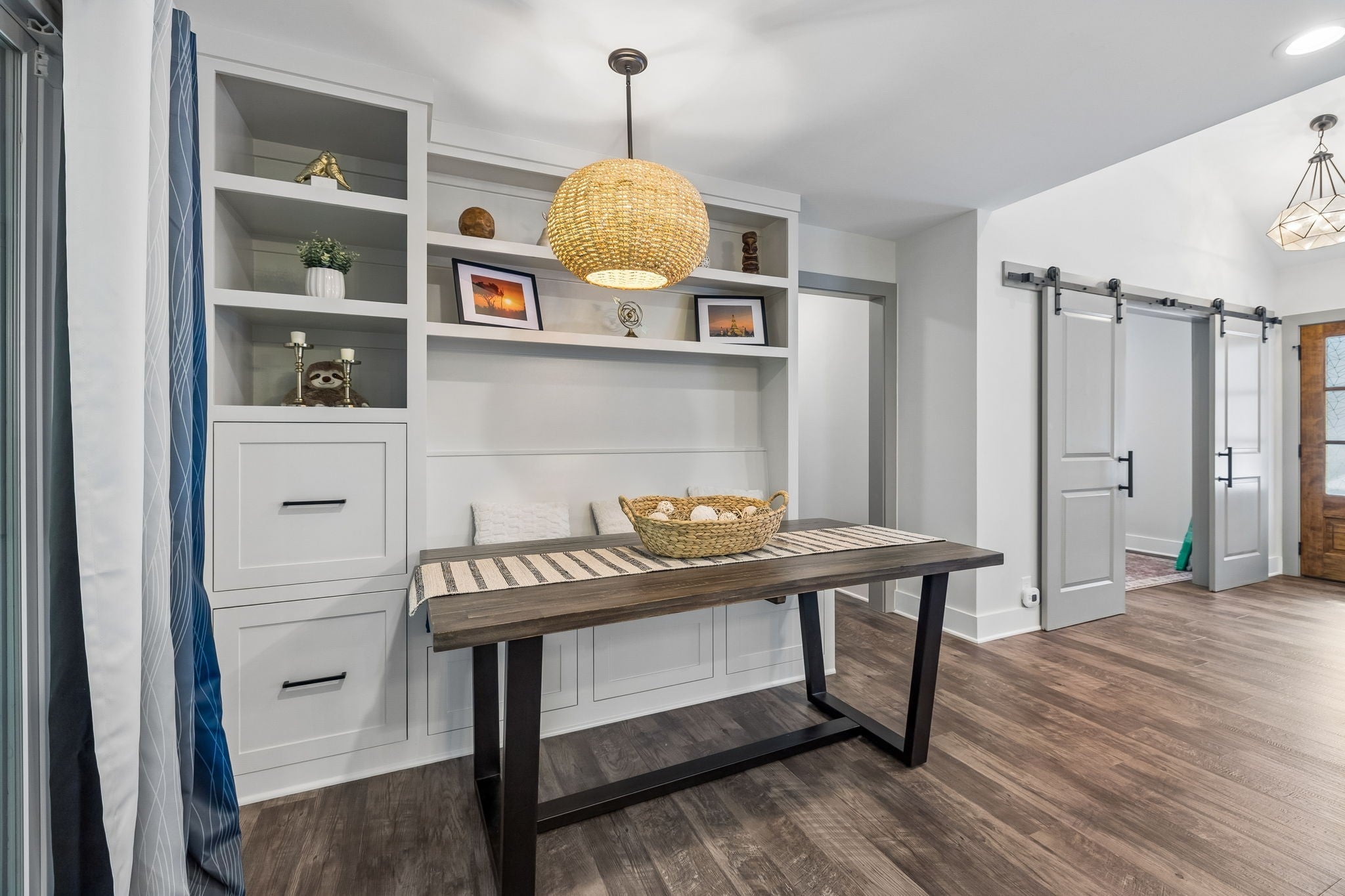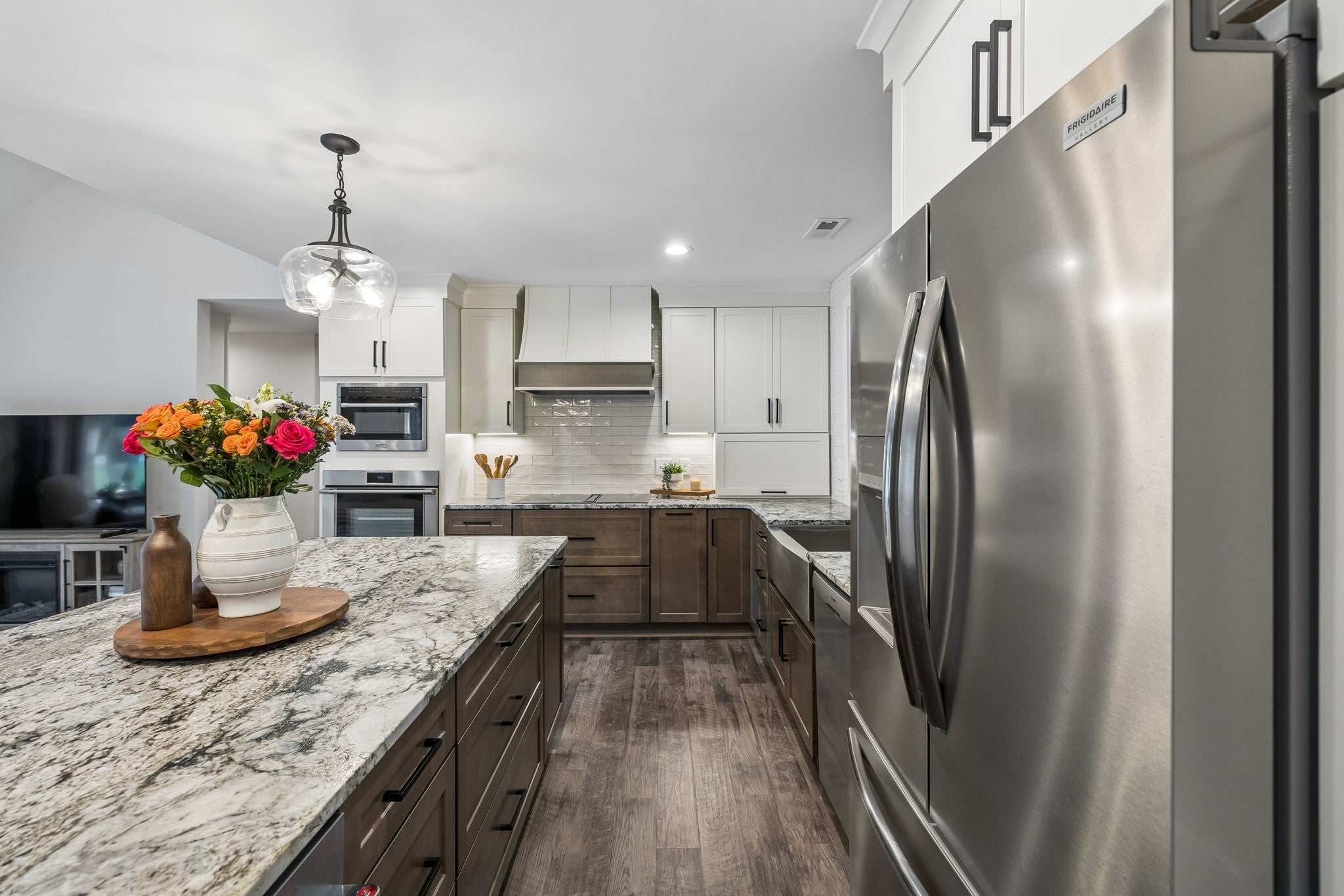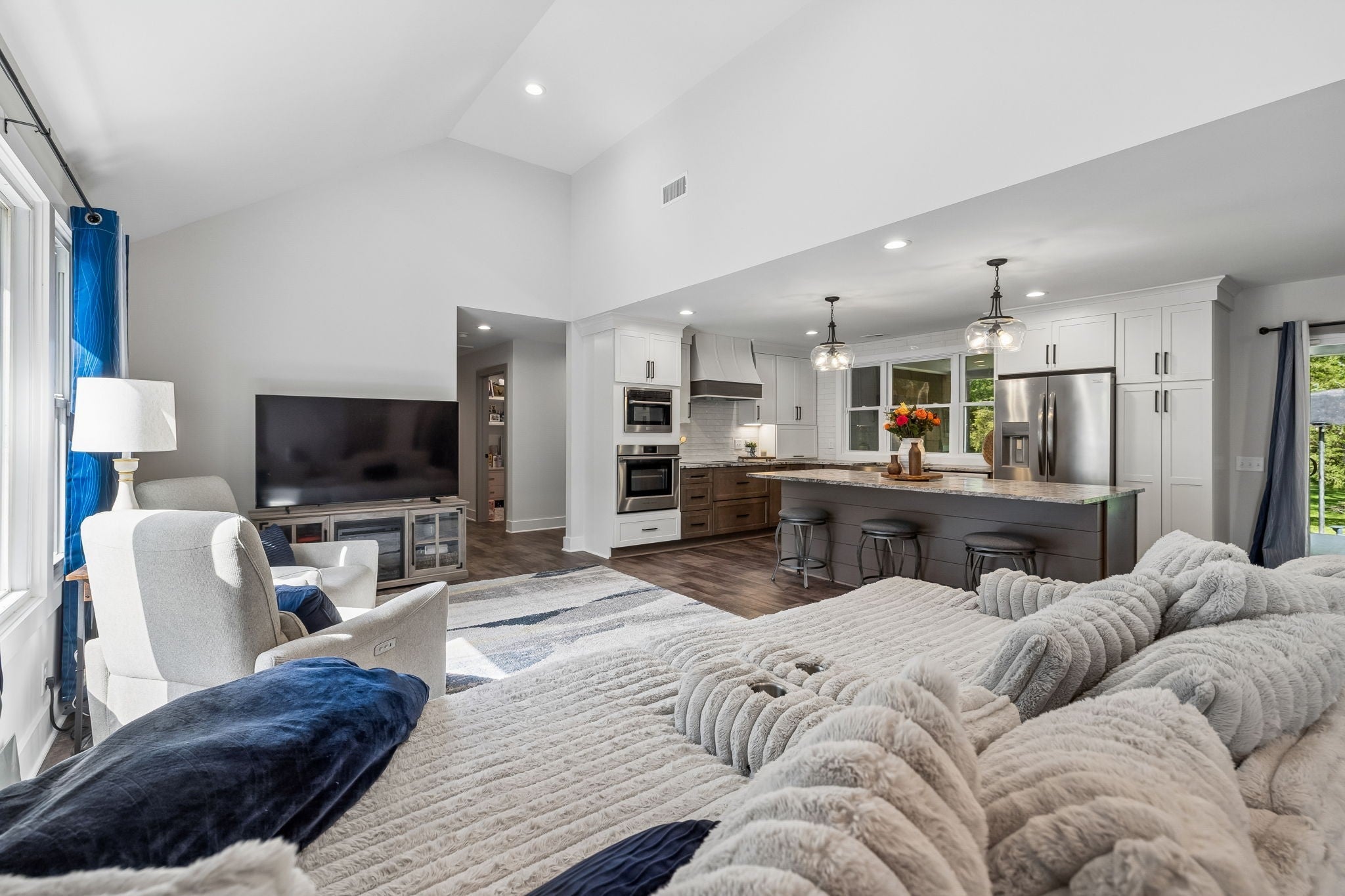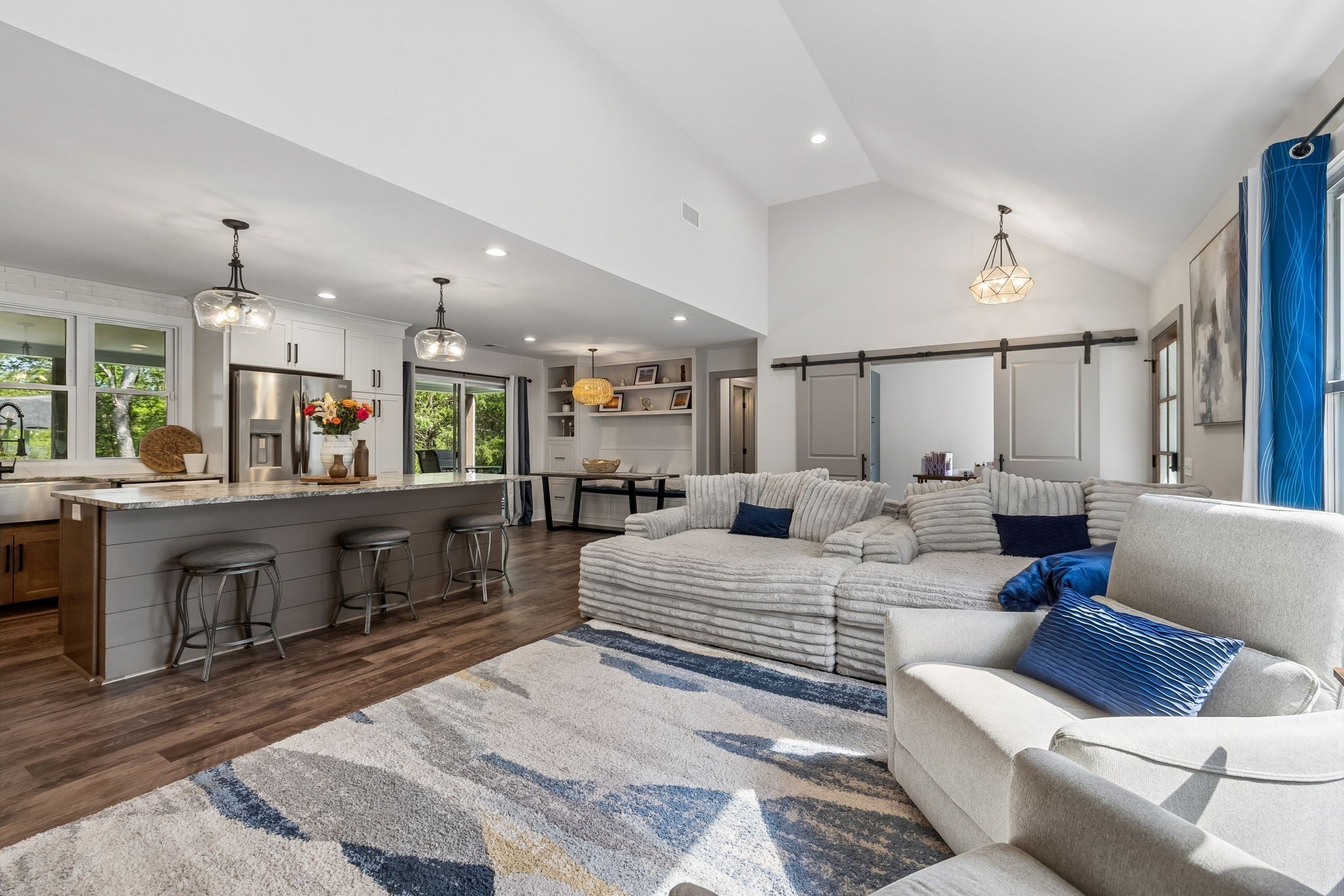 Builder’s personal home—completely reimagined and expanded—this one is in a league of its own. Taken down to the studs and doubled in size, this stunning renovation sits on a private 1.79-acre tree-lined lot in Mt. Juliet, offering the perfect blend of luxury, function, and space. Step inside to find beautiful luxury flooring throughout, fresh designer paint, and an open-concept layout that seamlessly connects the living room, dining area, and gourmet kitchen—ideal for entertaining. The kitchen is a true showpiece, featuring custom cabinetry, sleek granite countertops, a peg system for organization, custom vent hood, deep stainless farmhouse sink, wine fridge, built-in oven and range, built-in pantry, and thoughtfully designed finishes at every turn. The dining area also features custom built-ins for added style and functionality. All living is conveniently on one level, including a spacious primary suite complete with a soaking tub, custom tile shower, and heated tile floors—your own private retreat. The home is loaded with storage and custom built-ins throughout. 3 Bedrooms with office or 4 Bedroom. Enjoy peaceful views from the expansive covered porch that stretches across the entire back of the home, or relax by the fire pit in your private backyard oasis. Additional features include a full Generac generator system, built-in tornado shelter, and a setting that sits off the road for ultimate privacy. This is not just a home—it’s a showstopper. Don’t miss your opportunity to own something truly special.