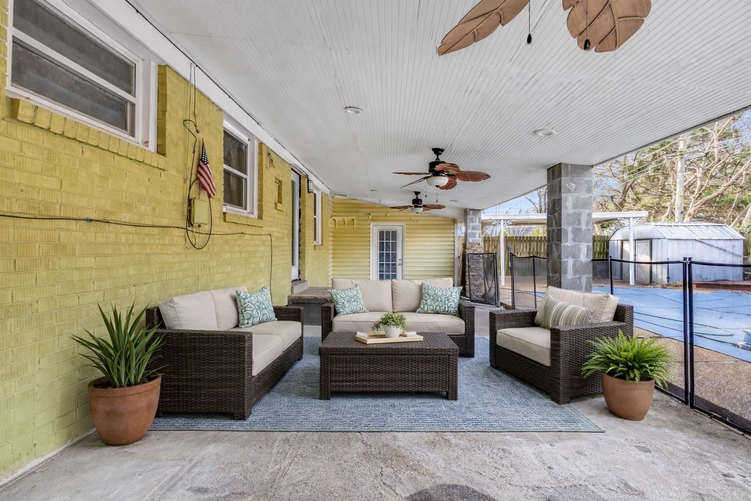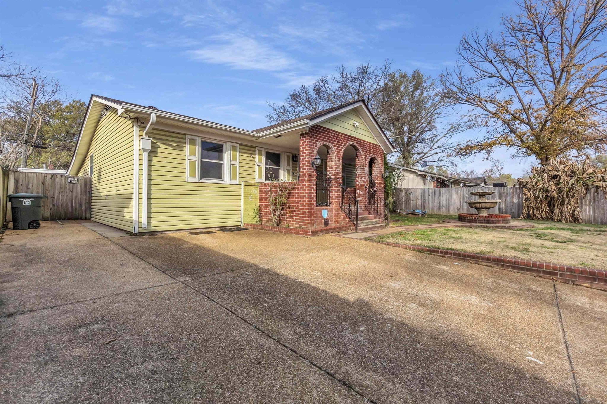 Welcome to market this charming home located in the sought after colonial acres community. Recently updated home offers 1310 square feet of open living space. Spacious layout includes living room complete with a wet bar perfect for entertaining. Kitchen with a granite countertops, high quality cabinets, stainless steel appliances, and a large breakfast bar with additional storage. 3 spacious bedrooms with fresh paint and brand-new carpets, and 1 1/2 modern bathrooms. Separate laundry room + attached and detached storage spaces. Step outside to a covered patio overlooking the in-ground pool with a newer diving board and liner. A charming pergola for additional shaded relaxation. Covered front porch and brick/iron fence adds even more curb appeal. This home is move-in ready and offers style and comfort with outdoor amenities. ***Photo of the pool uncovered was taken in 2022 ***Virtually staged Call today to schedule a tour.