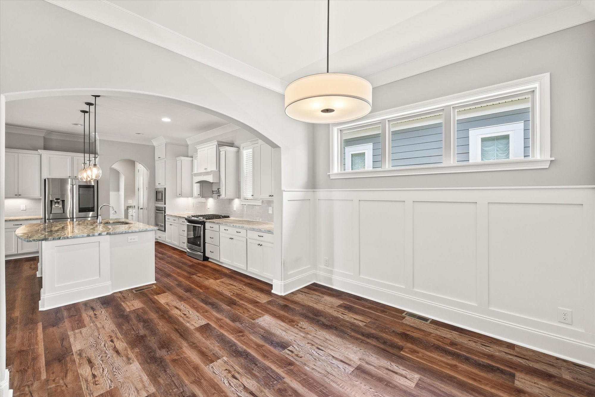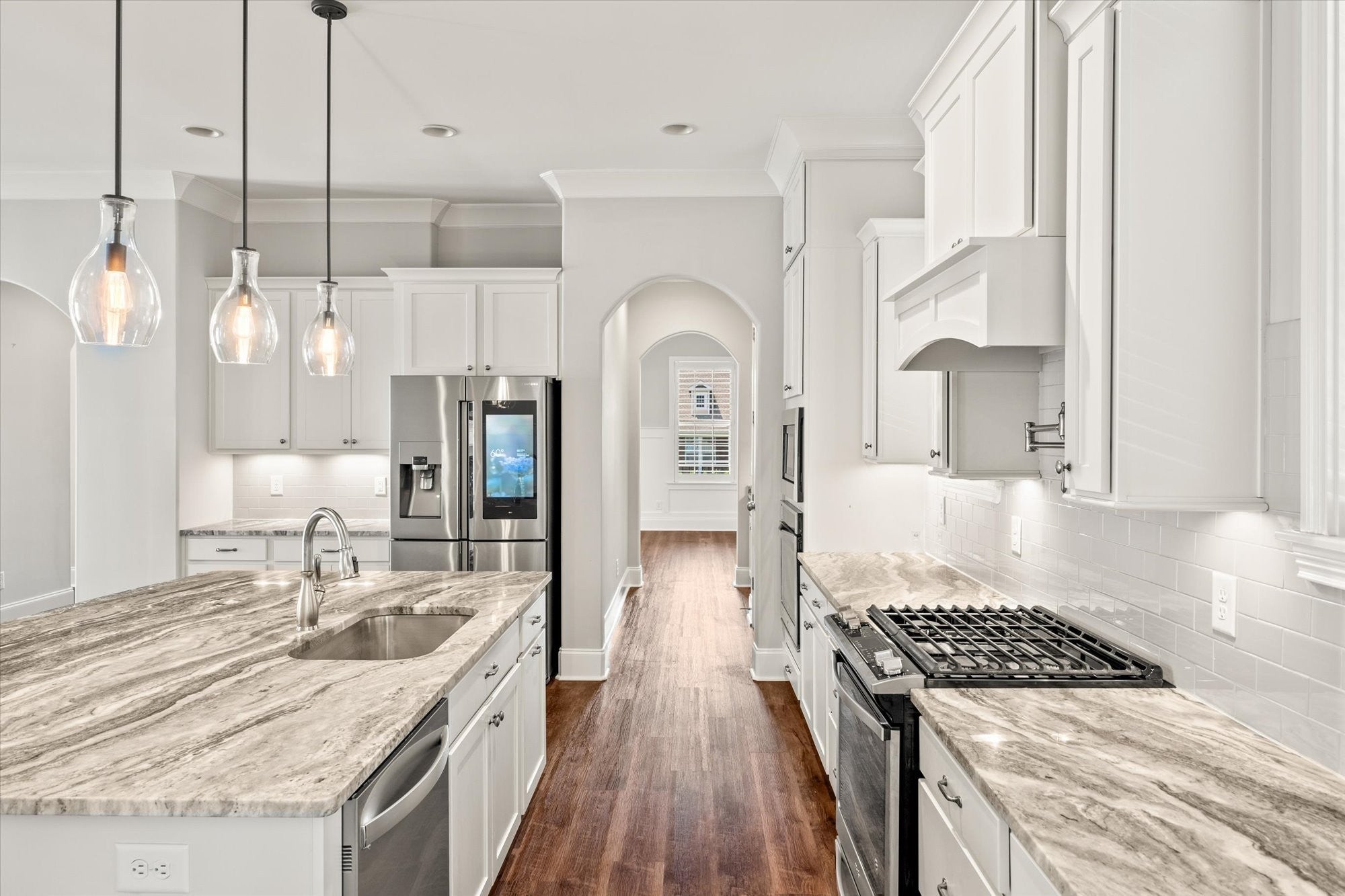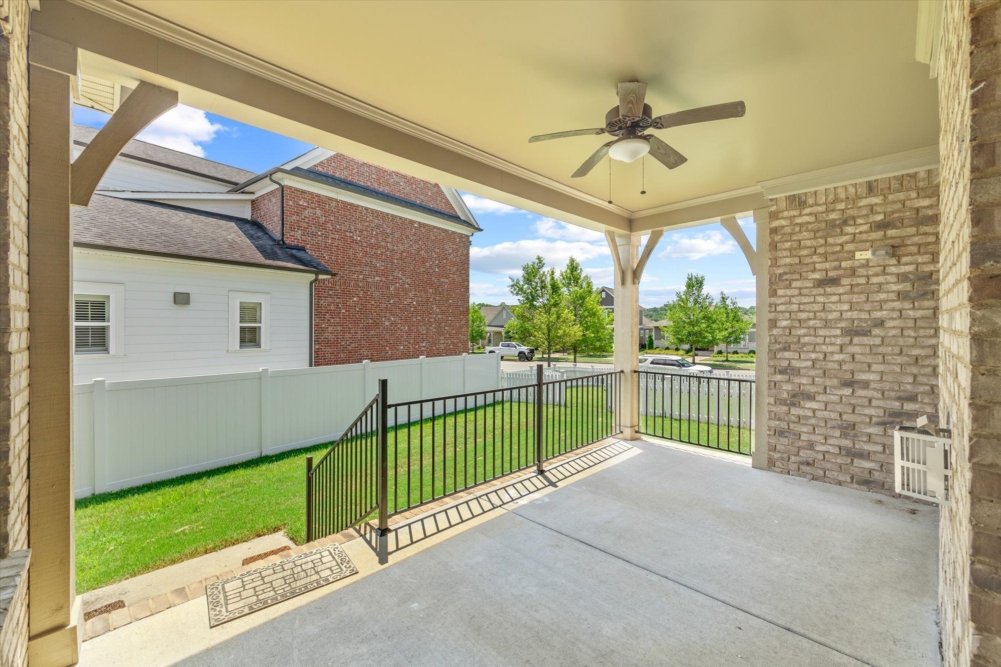 Welcome to your Custom-Built Celebration dream home! Nestled in the heart of Durham Farms, this exceptional residence is one of the rare 100% brick homes in the community, offering timeless curb appeal and lasting value. Step inside to discover gleaming new luxury vinyl floors and soaring 10-foot ceilings that create a spacious, open-concept flow throughout the main level. The open concept living area flows effortlessly into a cozy yet elegant living room, anchored by a gas fireplace, perfect for relaxing evenings and family gatherings. At the heart of the home lies a kitchen worthy of its own spotlight. The gourmet kitchen is a true showstopper, featuring: Floor-to-ceiling cabinetry, double oven, 5-burner gas range with hood and pot filler. A stunning granite island stretches wide, offering seating for five, a striking centerpiece where meals, laughter, and memories are made. The stylish butler’s pantry with granite countertop, perfect for prep work, staging meals, or tucking away small appliances for a clutter-free kitchen experience, seamlessly leads into a spacious dining room flooded with natural light from oversized windows with plantation shutters, ideal for both intimate dinners and festive gatherings. Whether you’re hosting dinner parties or casual game nights, the flow and function of this space are unmatched. Step outside to your covered patio, ideal for hosting game-day parties or enjoying a quiet sunset with your favorite drink. Upstairs offers a spacious area with two bedrooms, two full bathrooms, a flexible bonus room, and a large storage area. Don’t miss the hidden door in one of the bedrooms that leads to a secret storage space, a delightful surprise for those who appreciate clever craftsmanship. This home delivers the perfect blend of luxury, warmth, and smart design. Don’t miss the chance to call it yours.